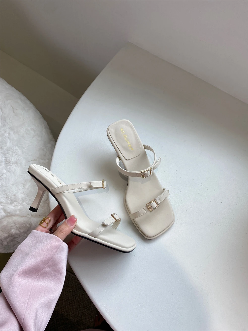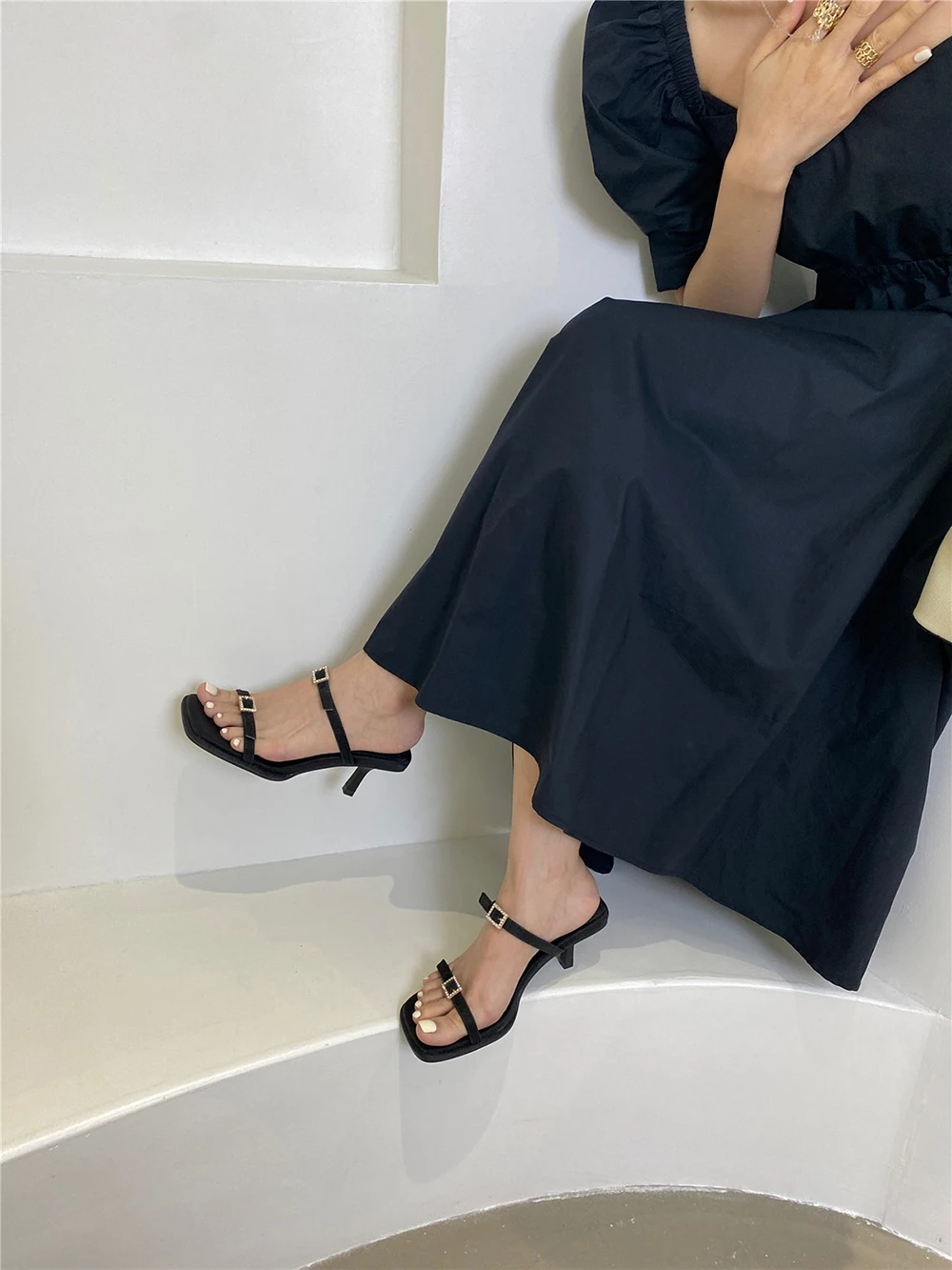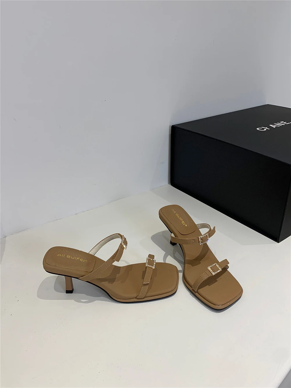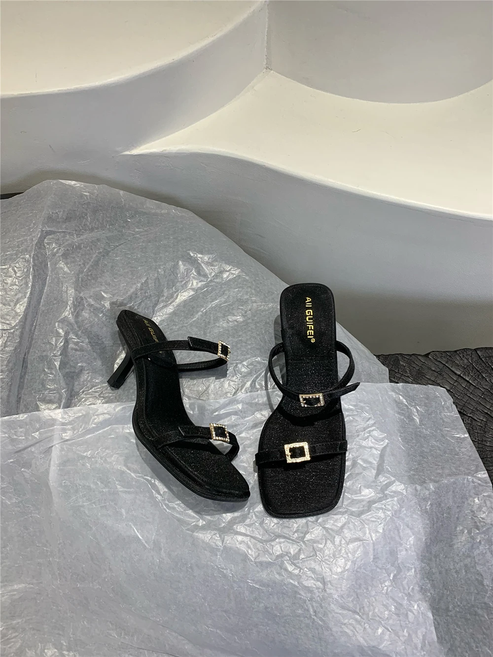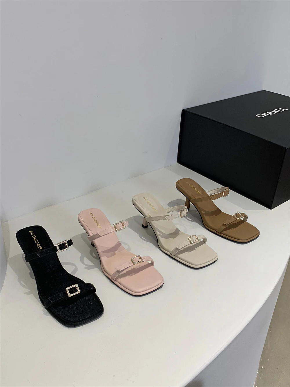 LBSFY - Fashion Women Sandals Open Toe Belt Buckle Summer Thin High Heels Party Wedding Slides Slippers Dress Shoes Woman Size 35-40