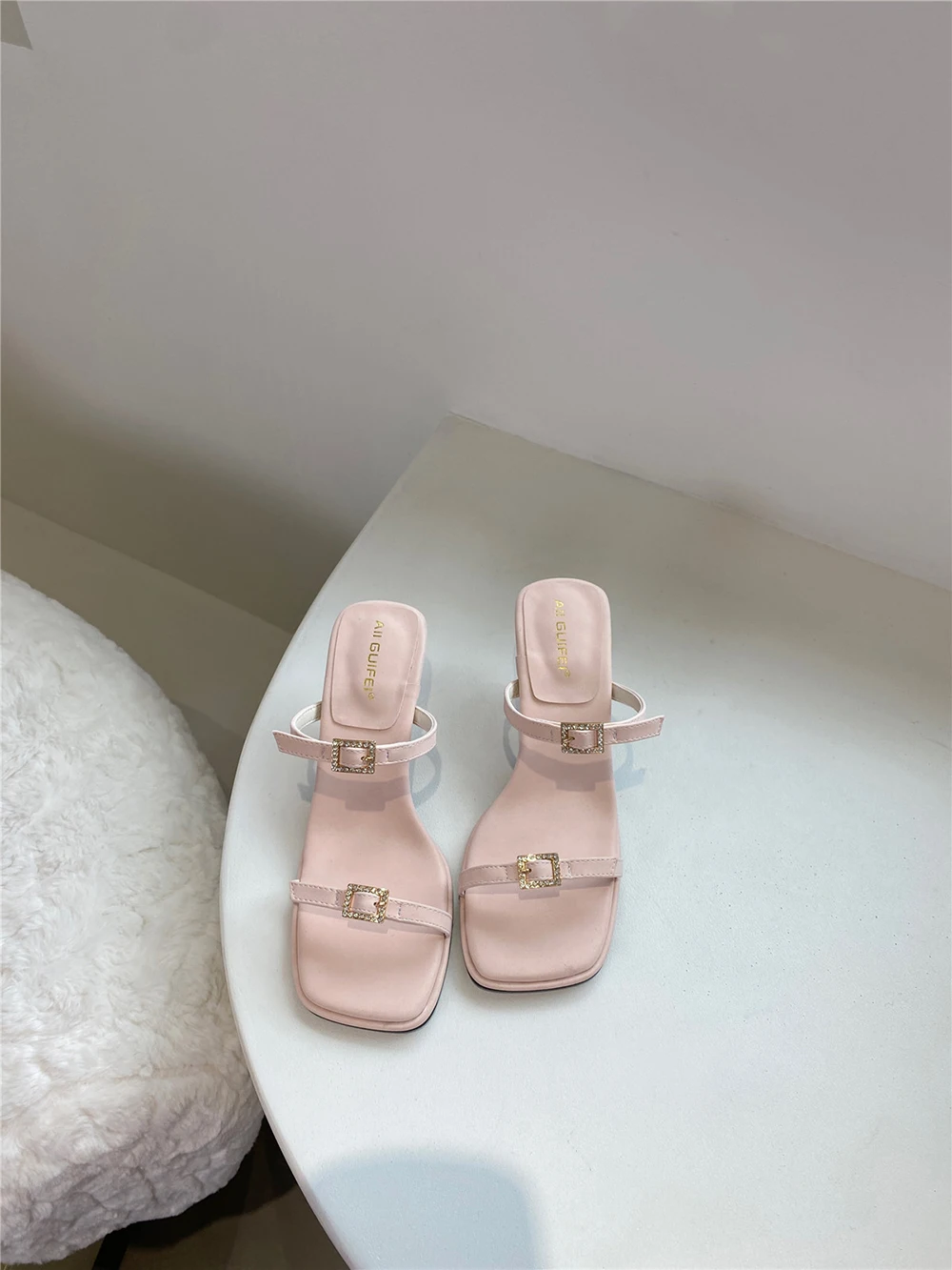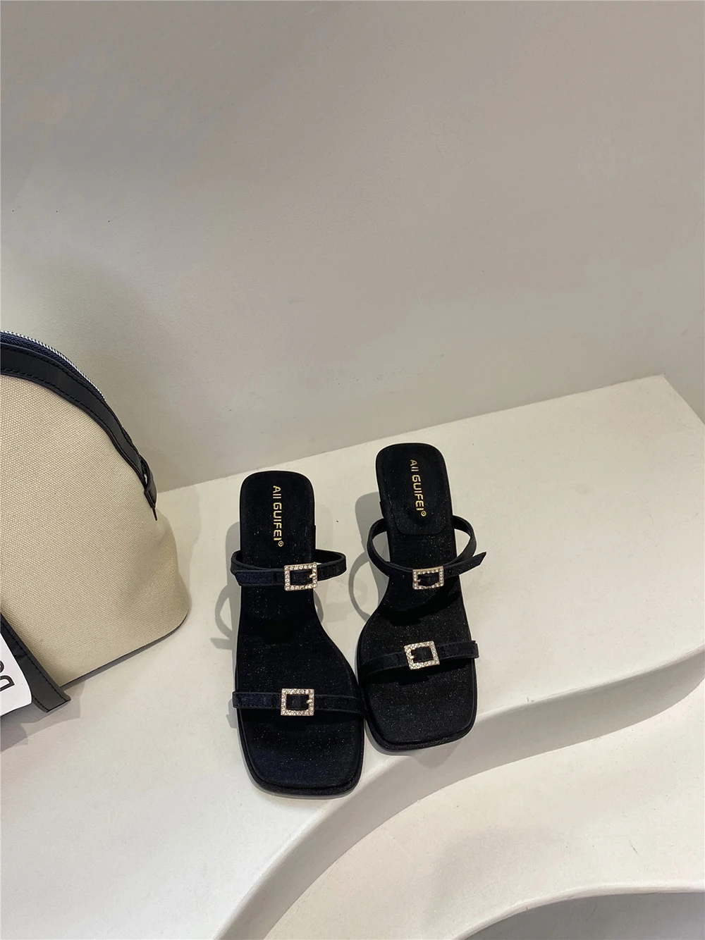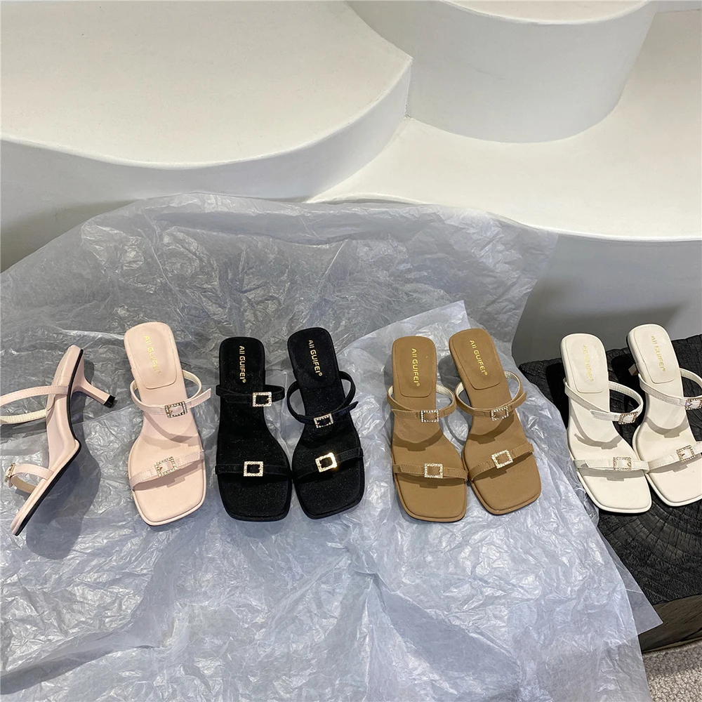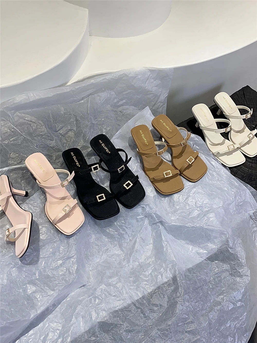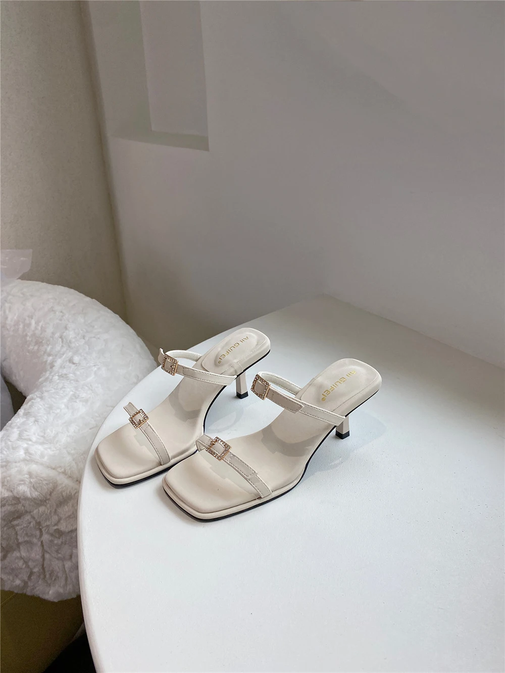 LBSFY - Fashion Women Sandals Open Toe Belt Buckle Summer Thin High Heels Party Wedding Slides Slippers Dress Shoes Woman Size 35-40