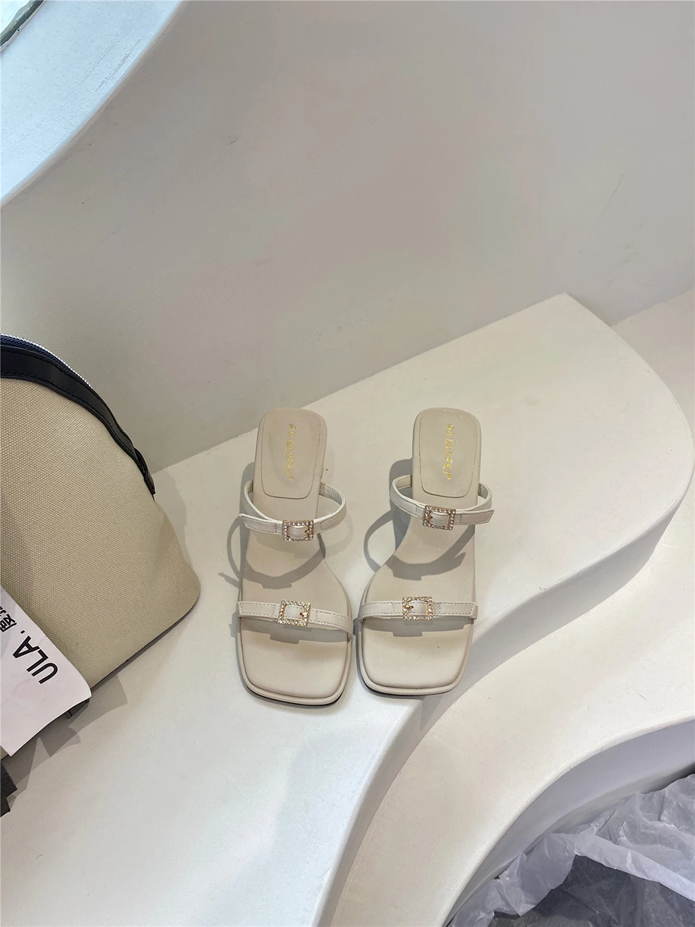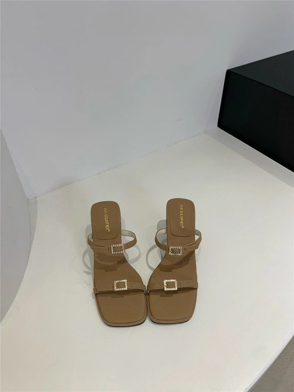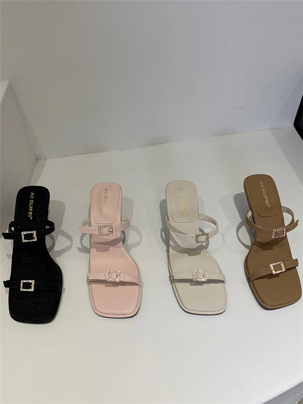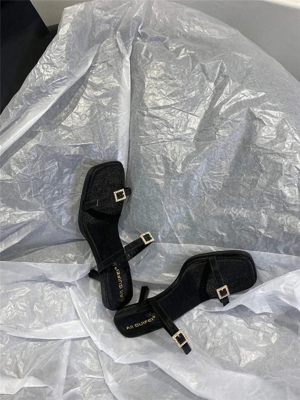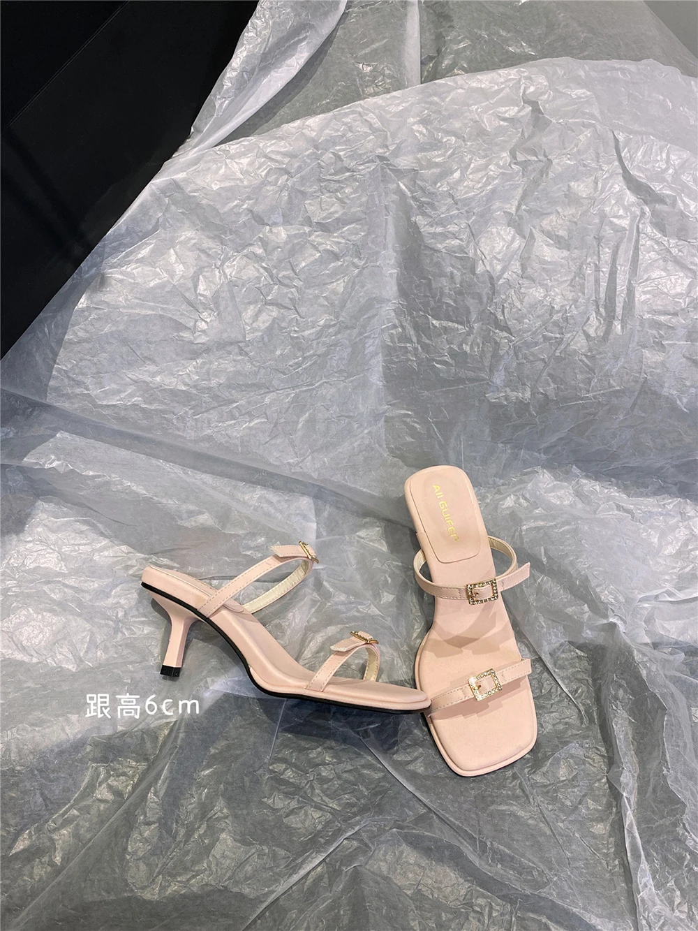 LBSFY - Fashion Women Sandals Open Toe Belt Buckle Summer Thin High Heels Party Wedding Slides Slippers Dress Shoes Woman Size 35-40