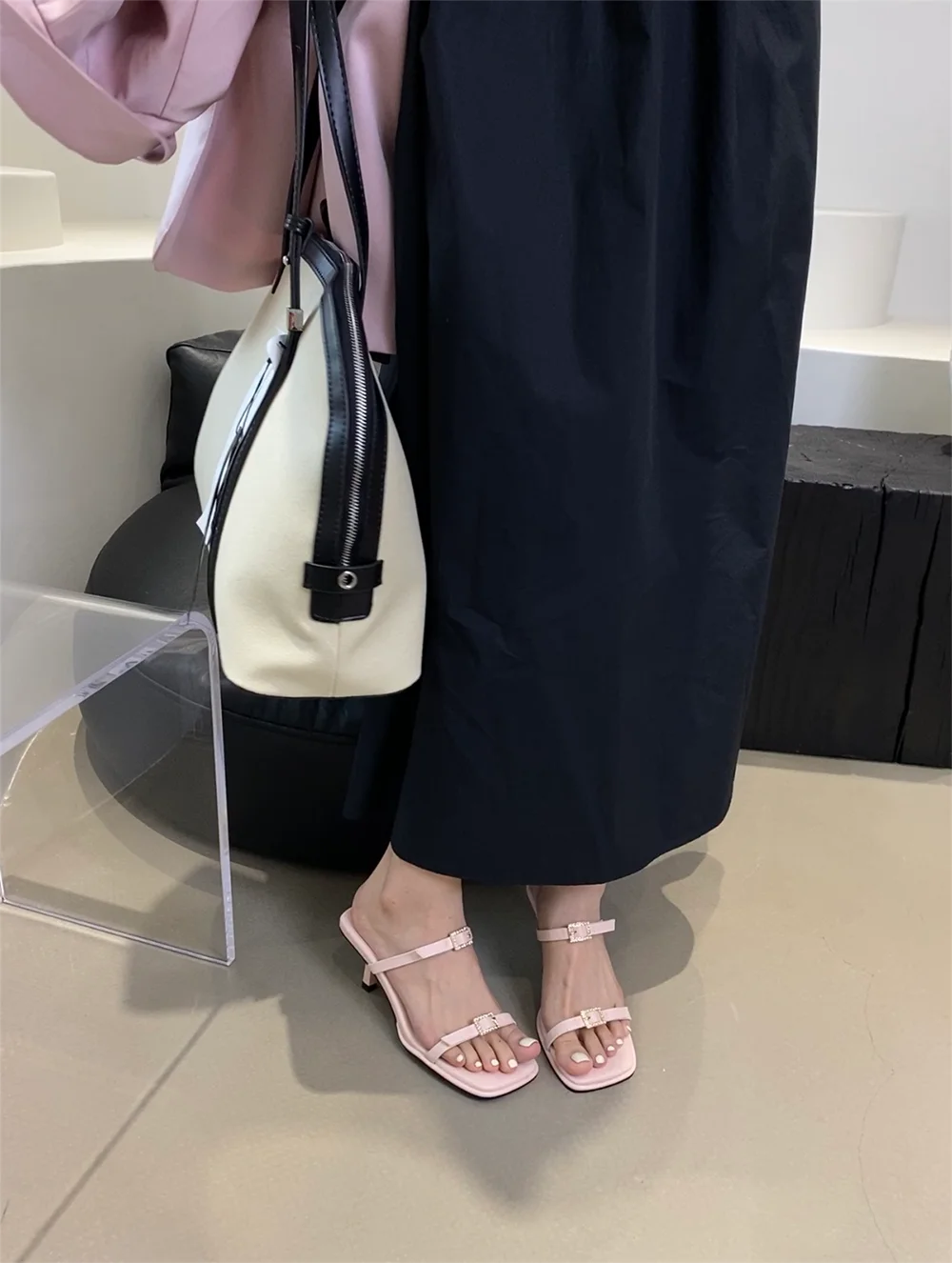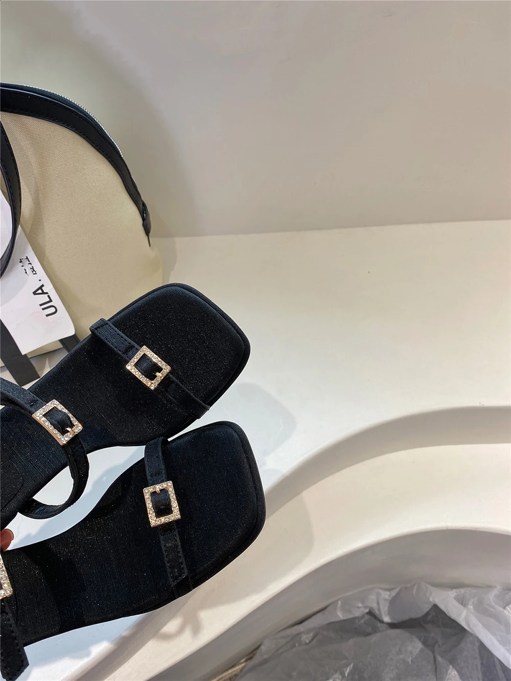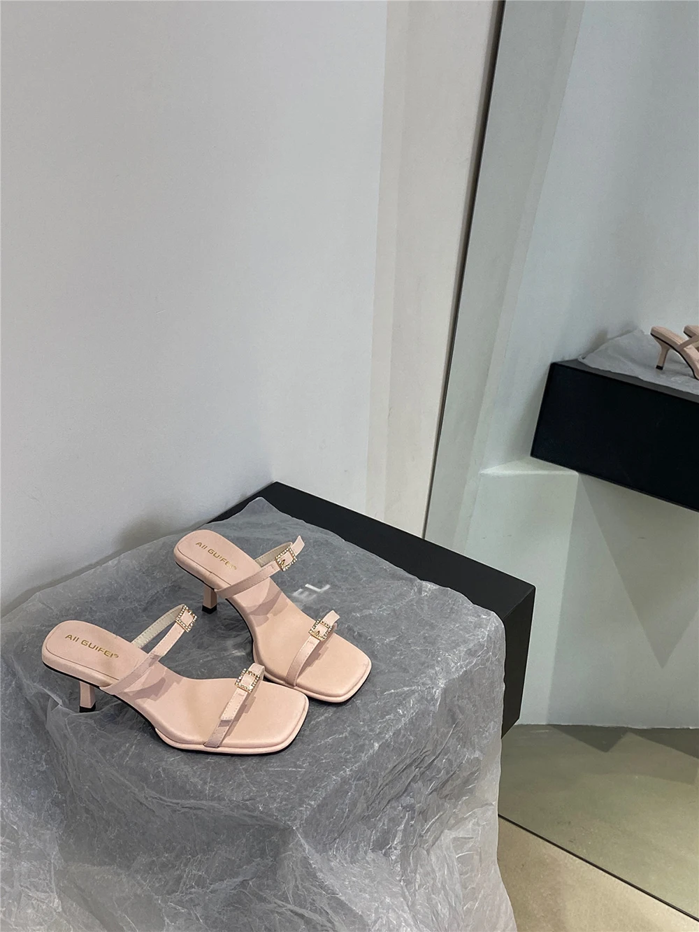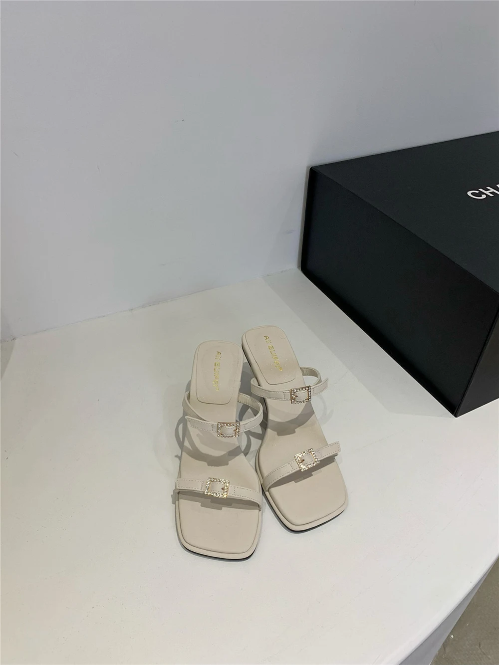 LBSFY - Fashion Women Sandals Open Toe Belt Buckle Summer Thin High Heels Party Wedding Slides Slippers Dress Shoes Woman Size 35-40