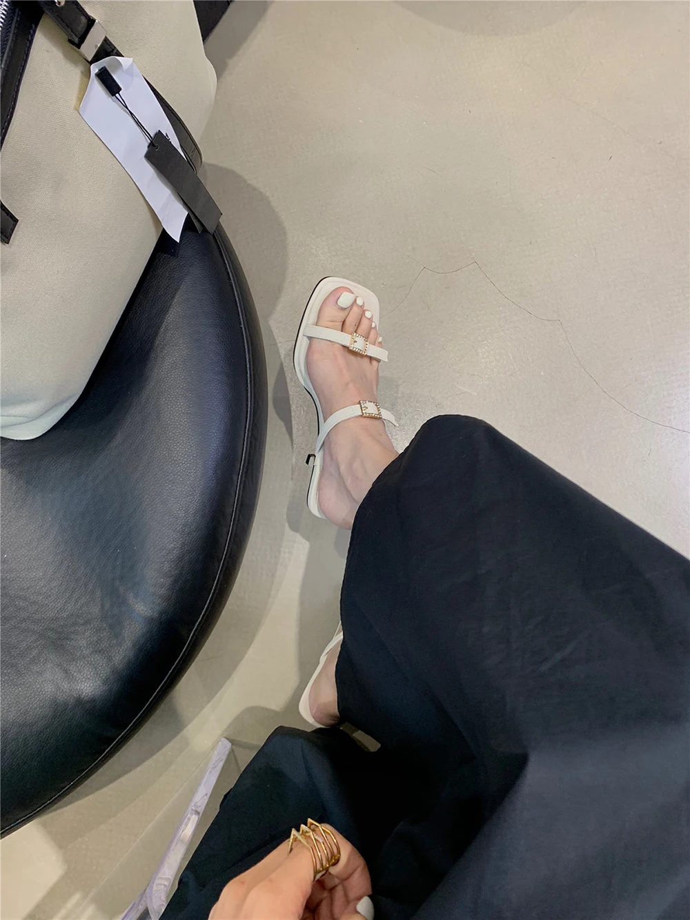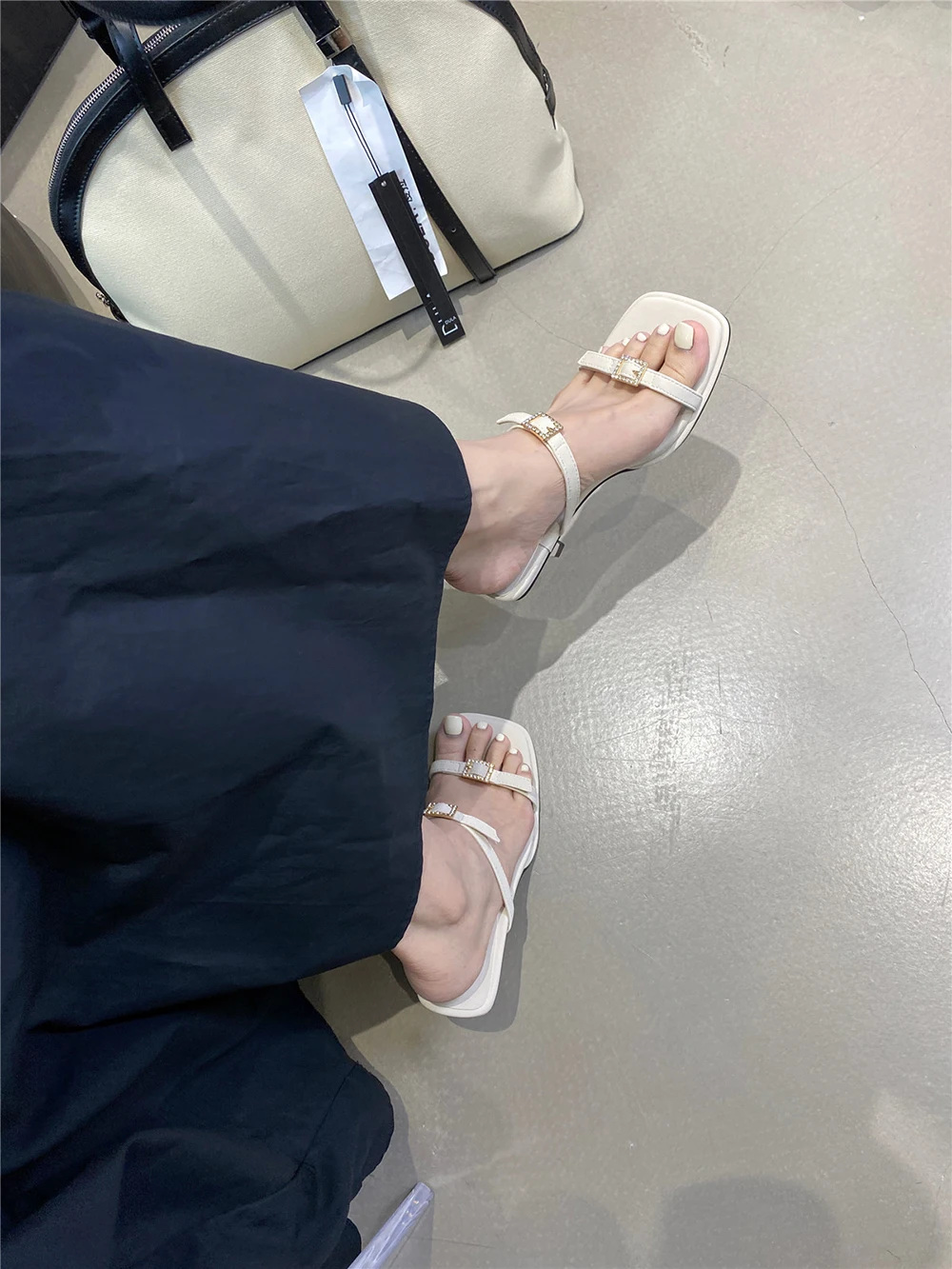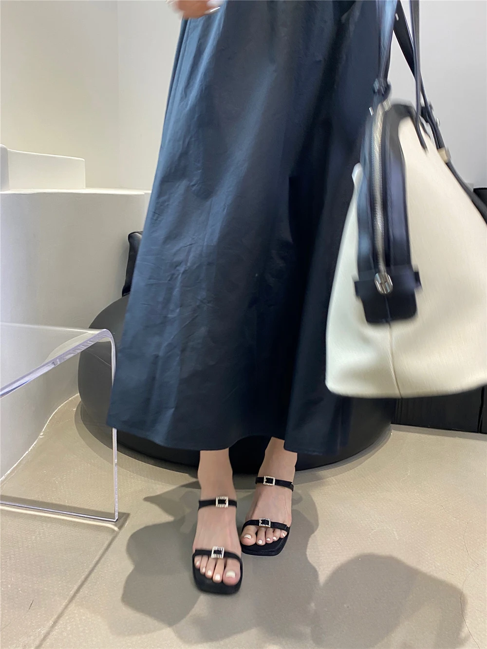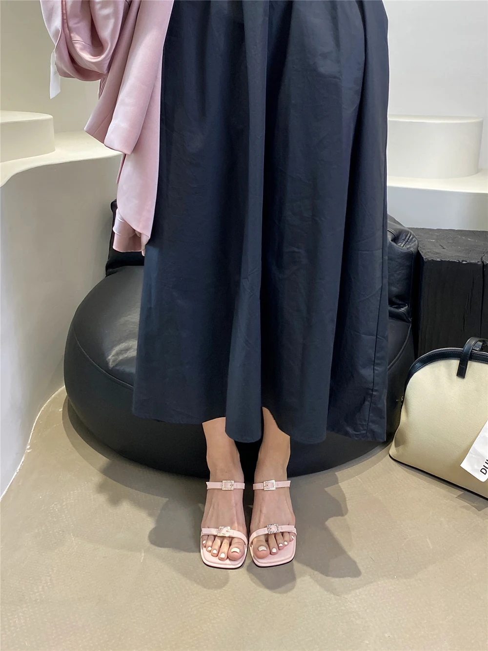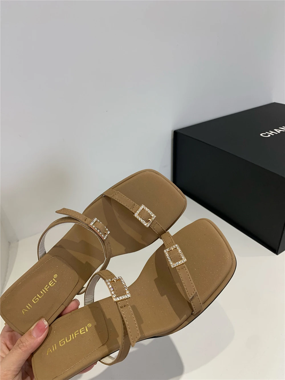 LBSFY - Fashion Women Sandals Open Toe Belt Buckle Summer Thin High Heels Party Wedding Slides Slippers Dress Shoes Woman Size 35-40