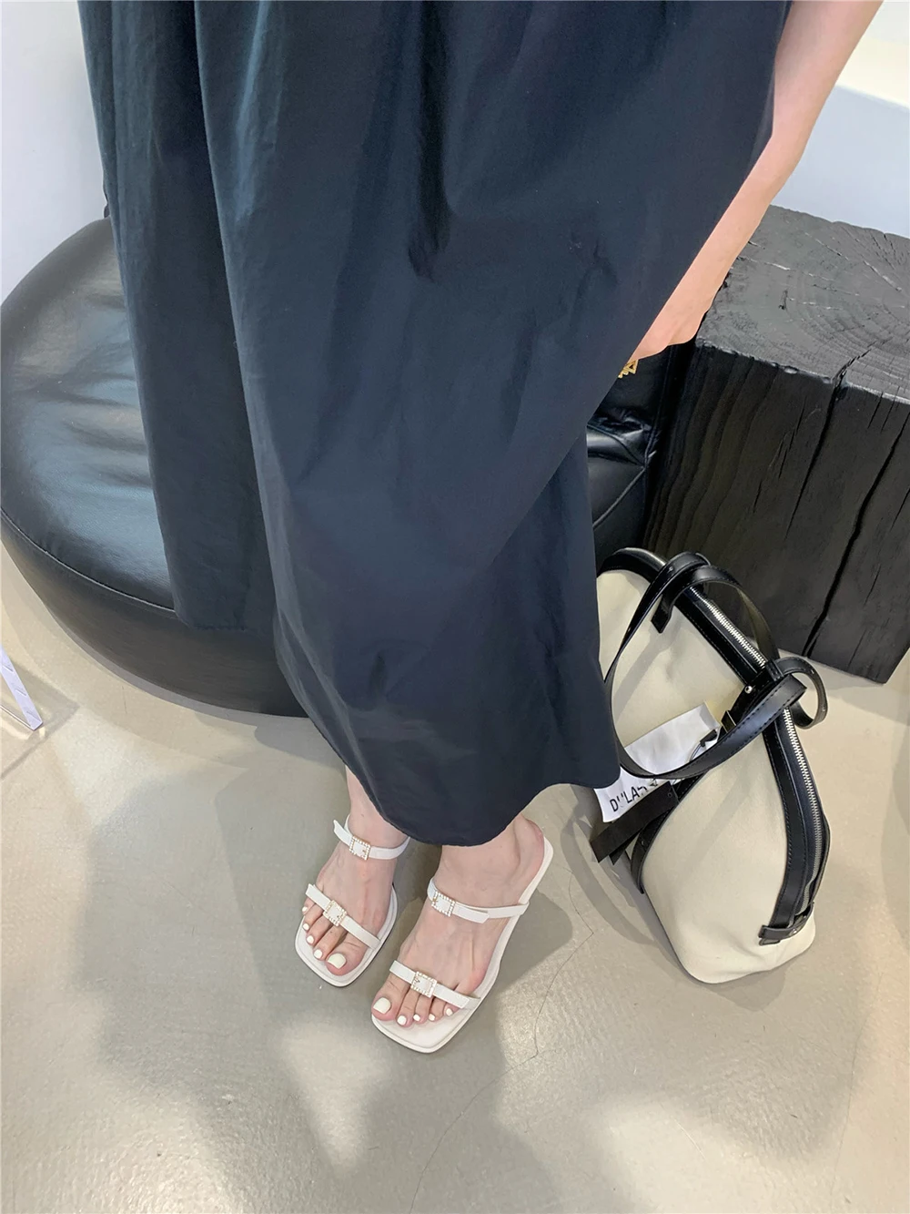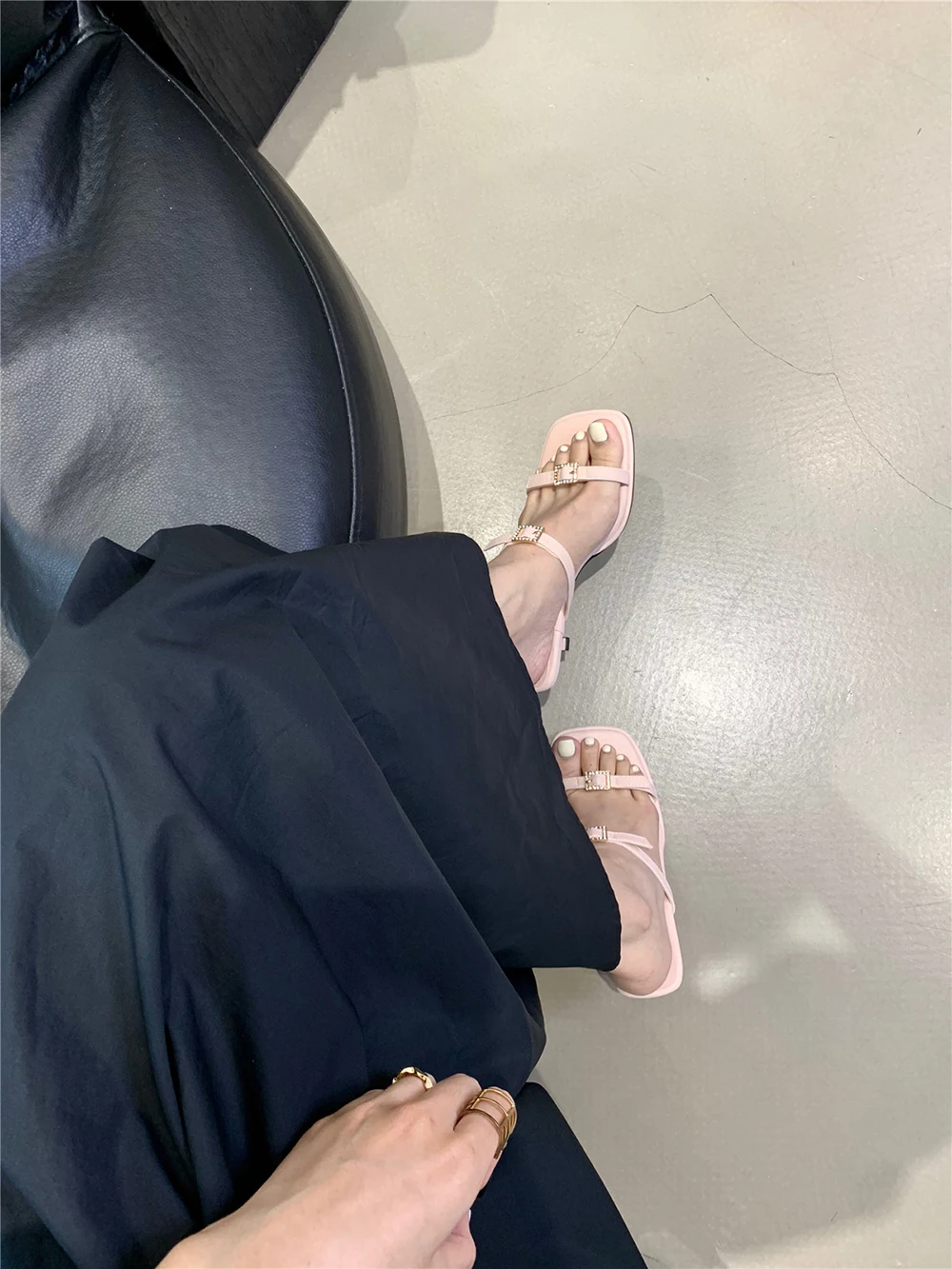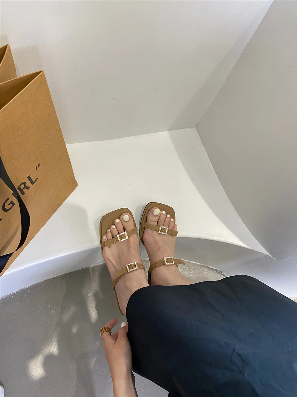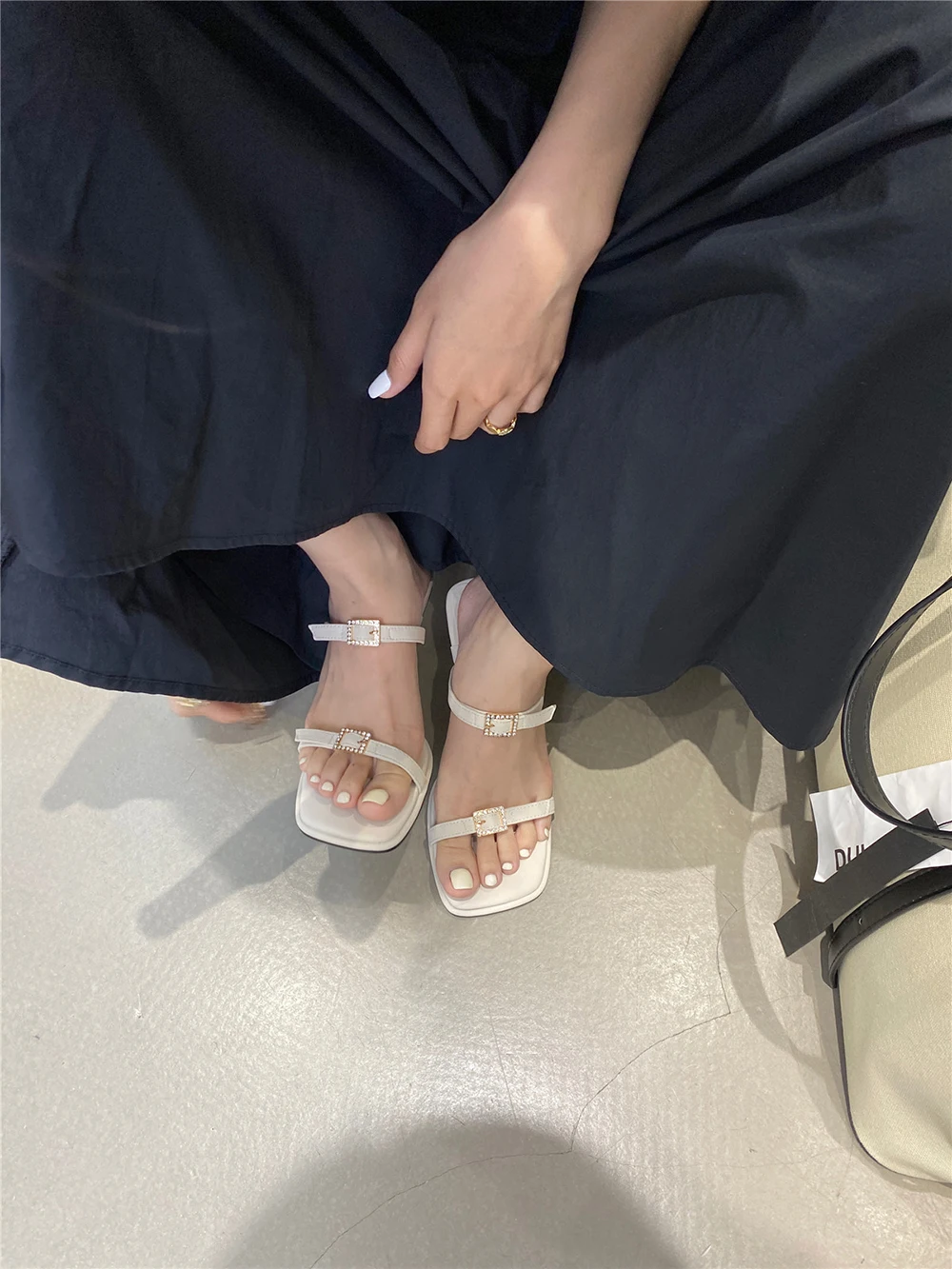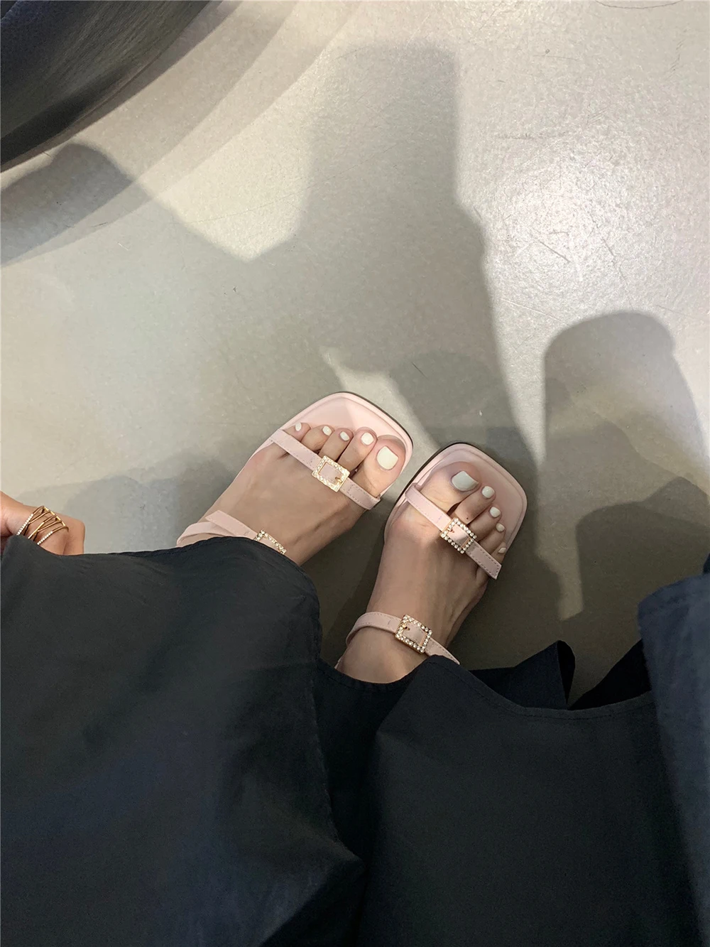 LBSFY - Fashion Women Sandals Open Toe Belt Buckle Summer Thin High Heels Party Wedding Slides Slippers Dress Shoes Woman Size 35-40