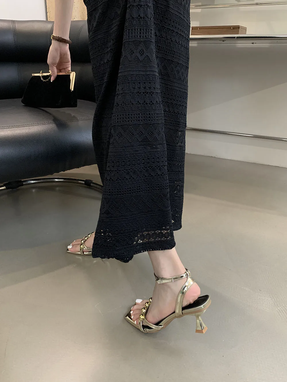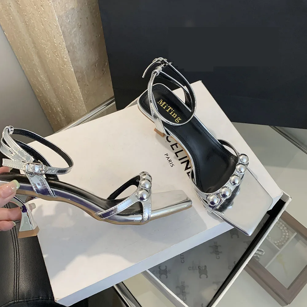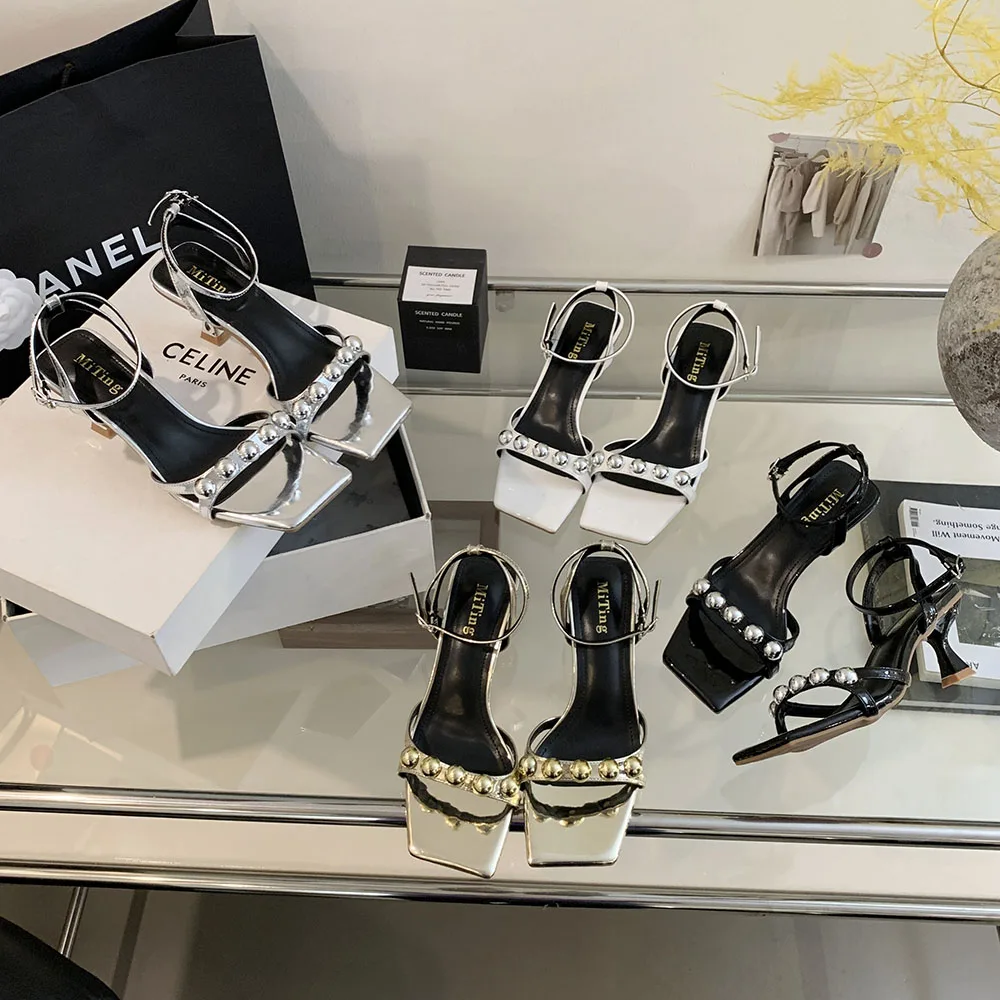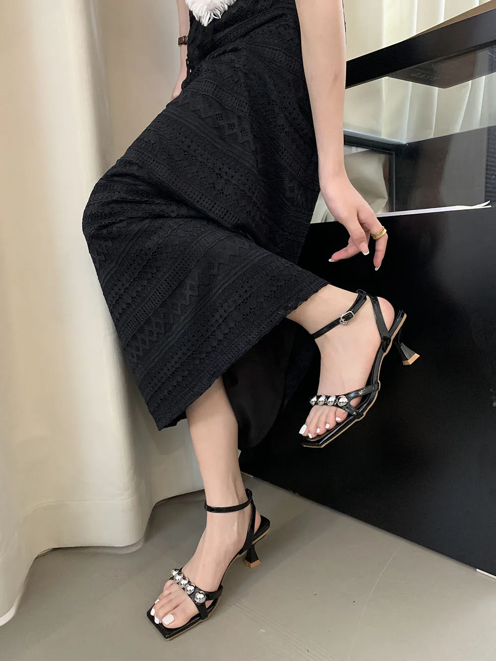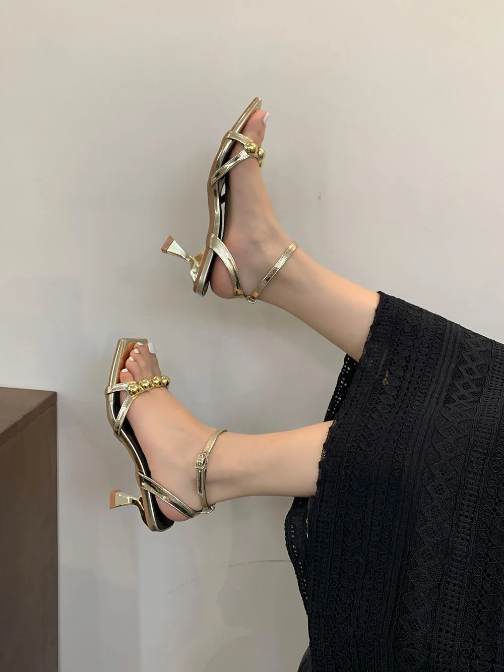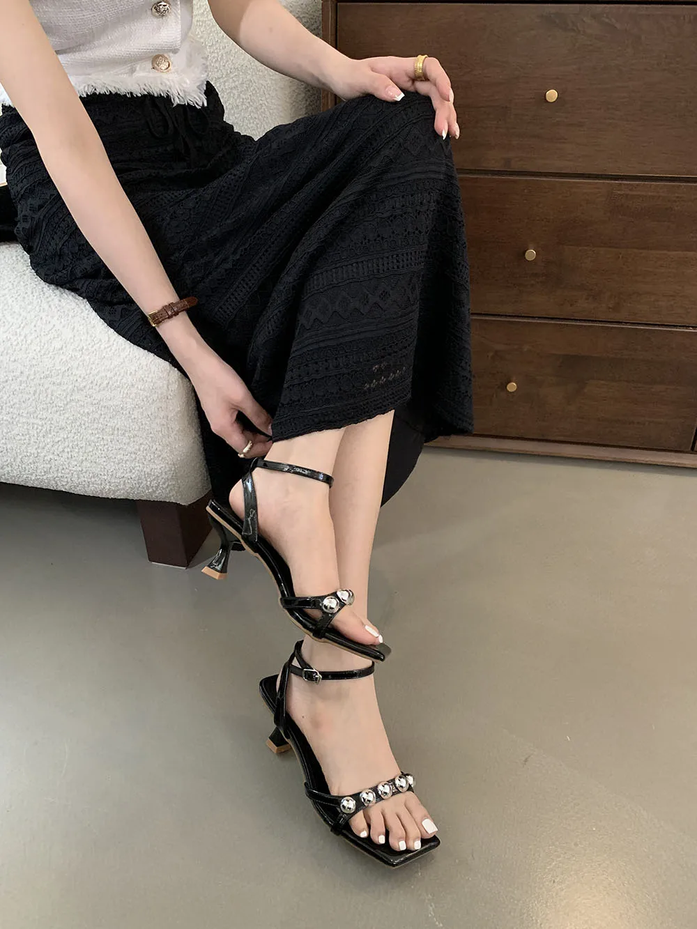 LBSFY - Fashion Women Sandals Open Toe Black Gold Silver Crystal Rhinestone Thin High Heels Ankle Strap Party Pumps Size 35-39 Sandals