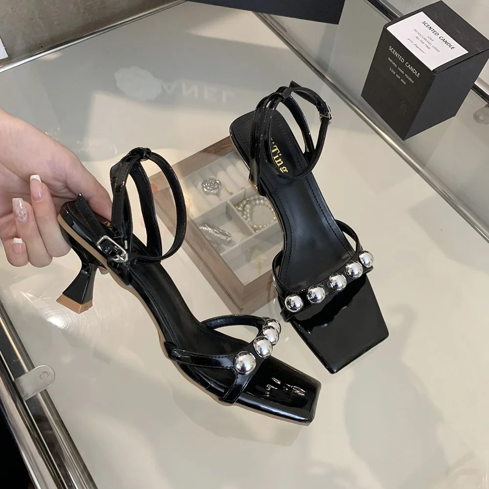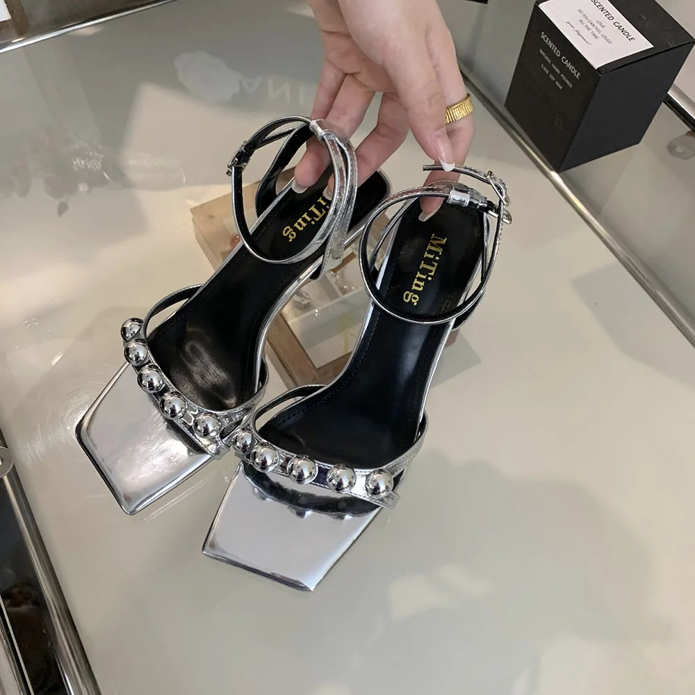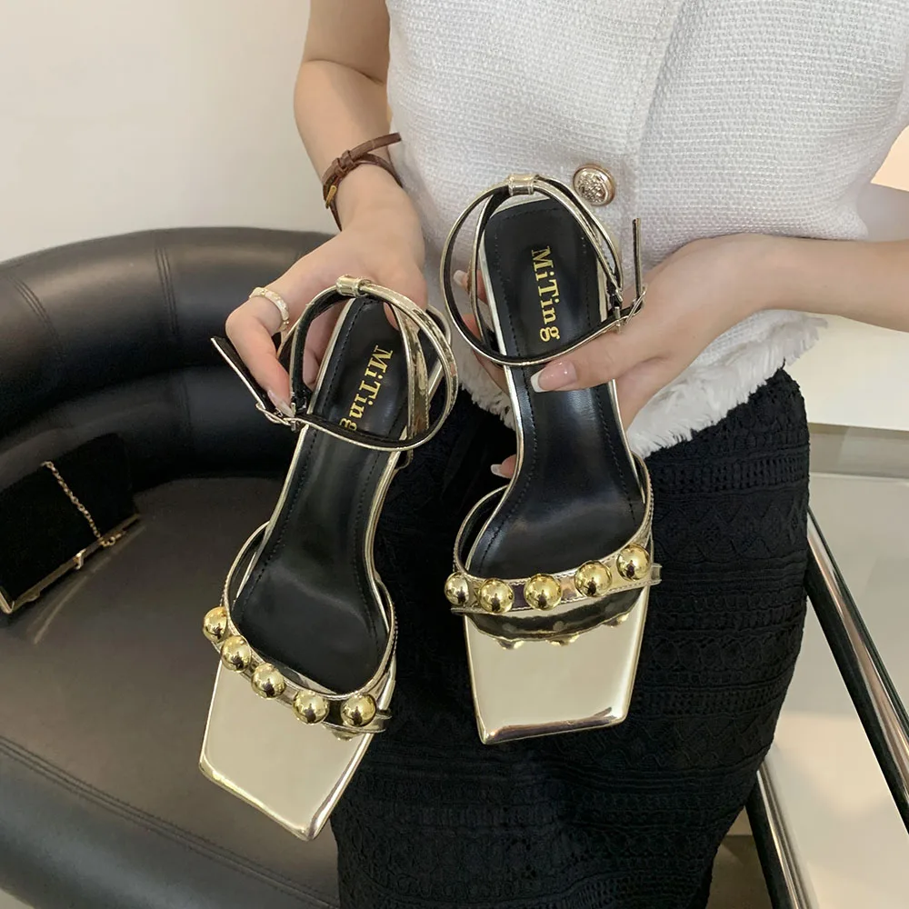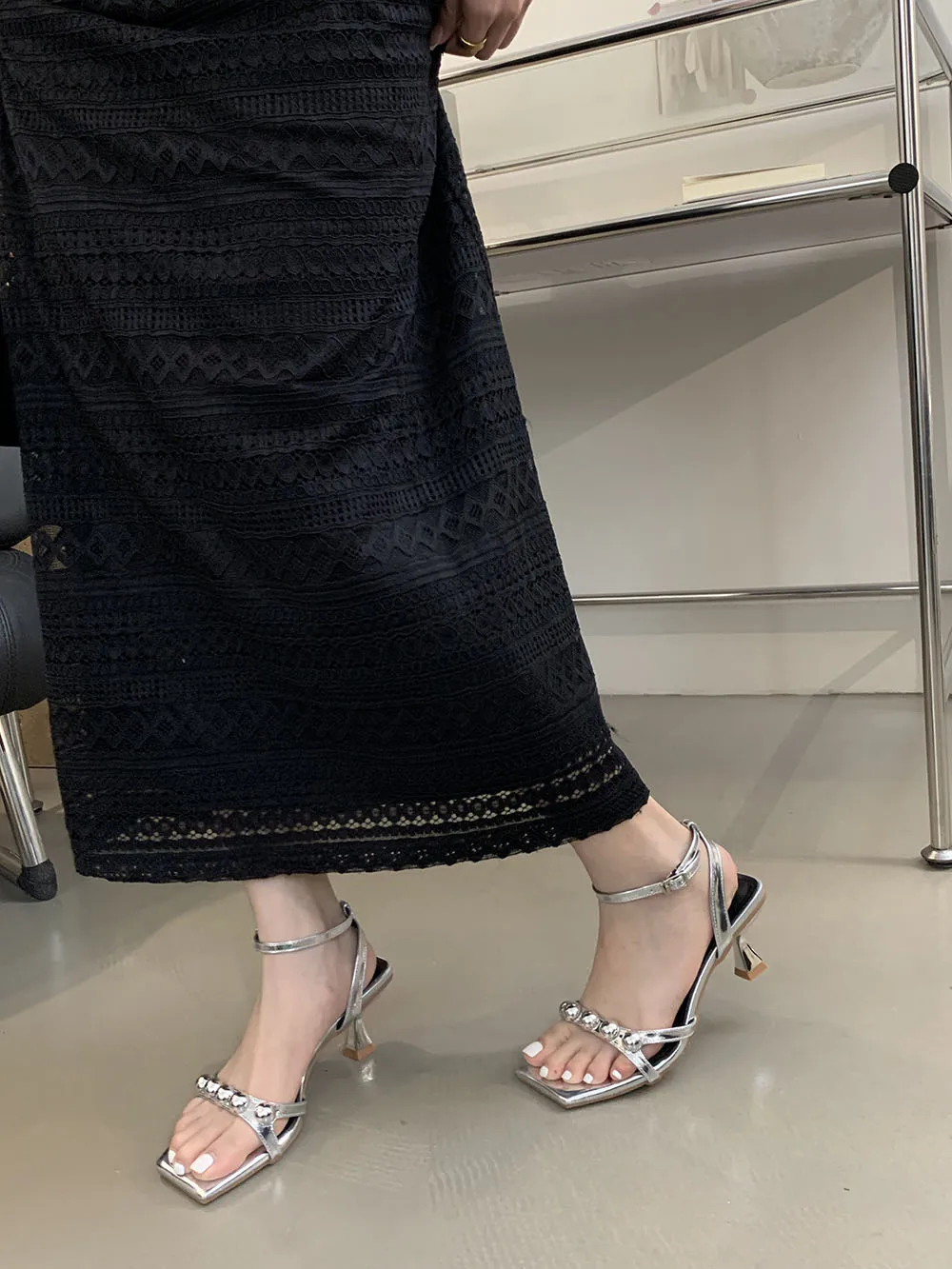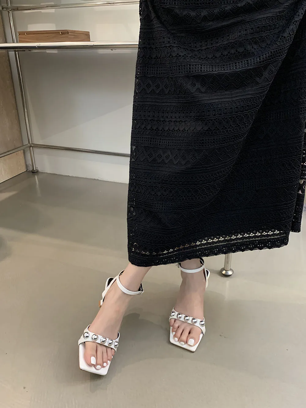 LBSFY - Fashion Women Sandals Open Toe Black Gold Silver Crystal Rhinestone Thin High Heels Ankle Strap Party Pumps Size 35-39 Sandals