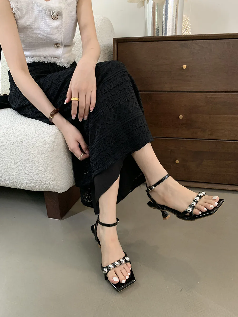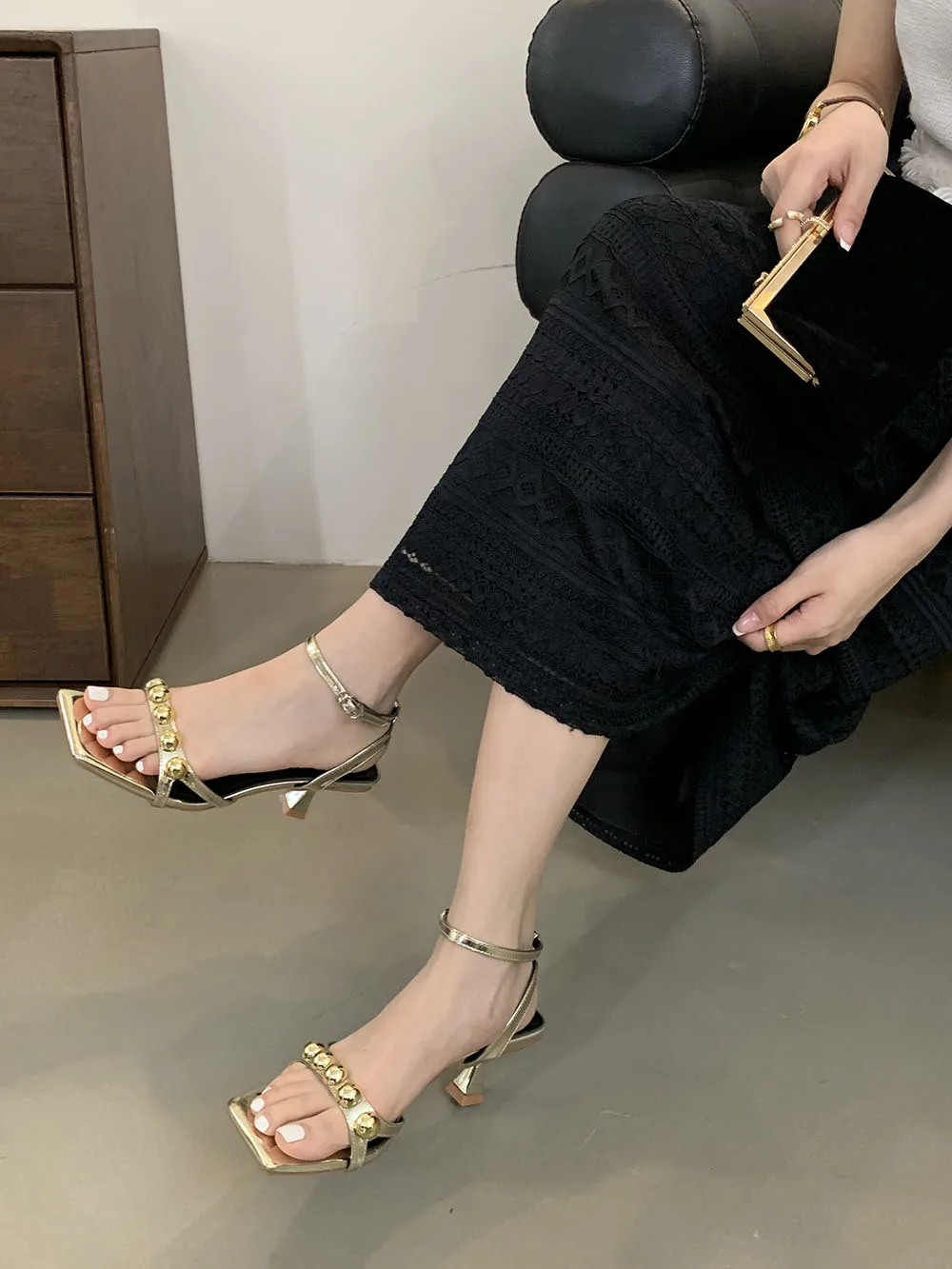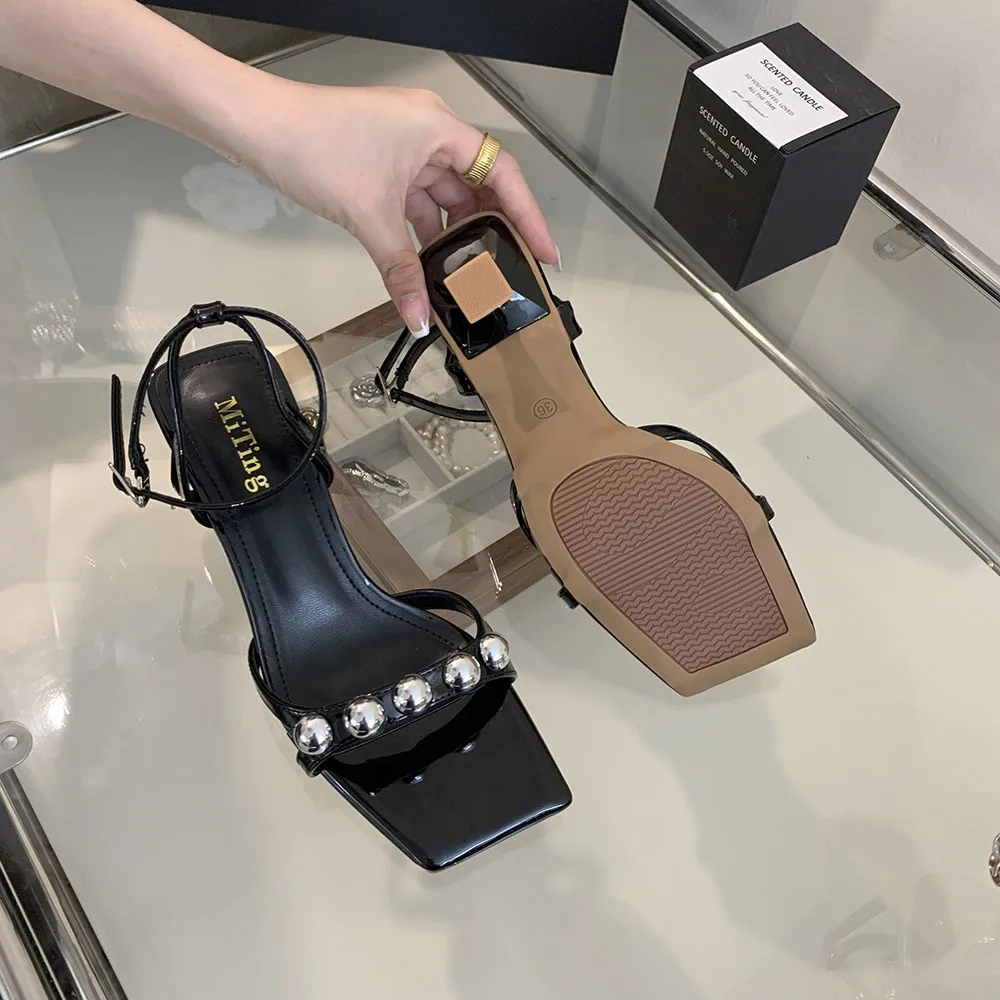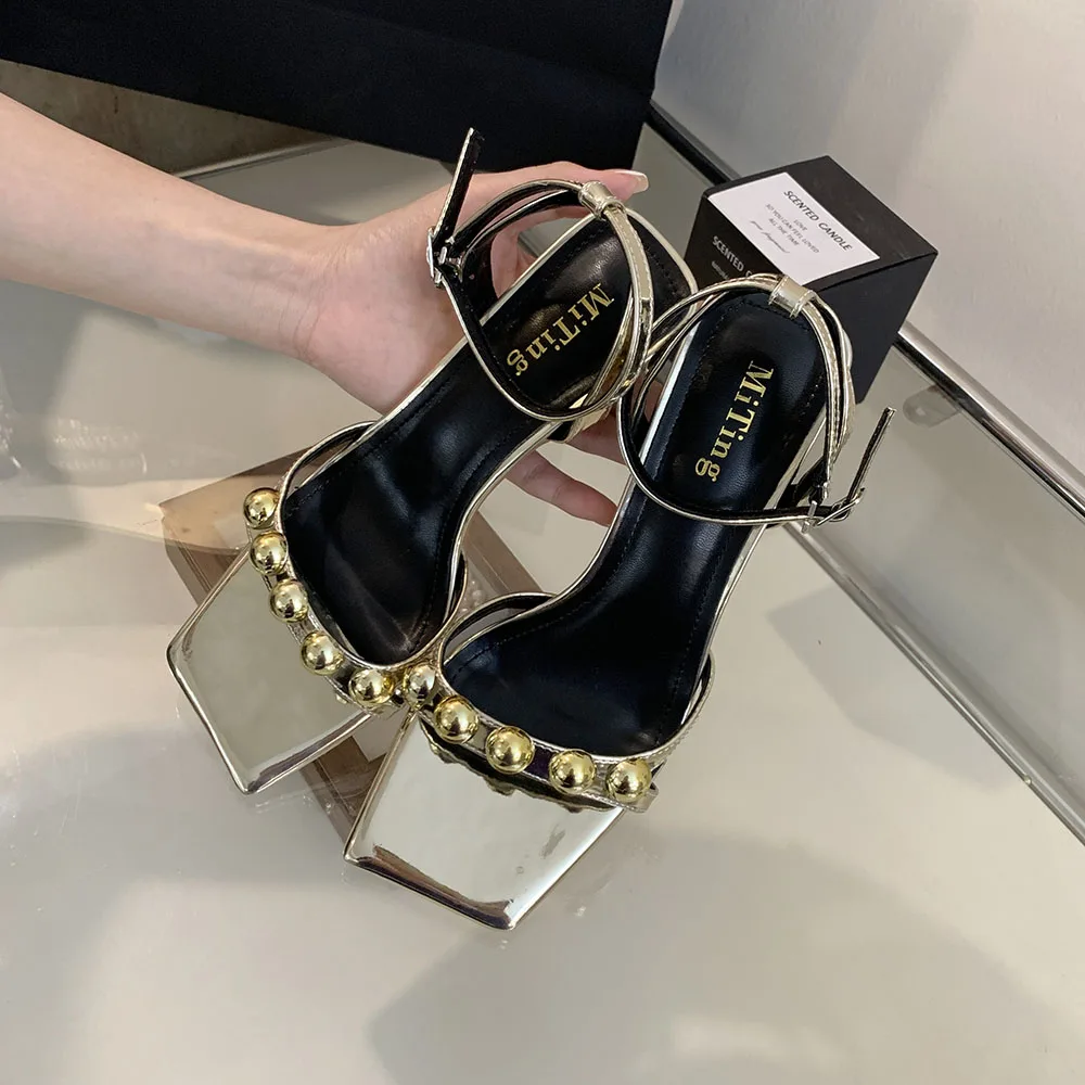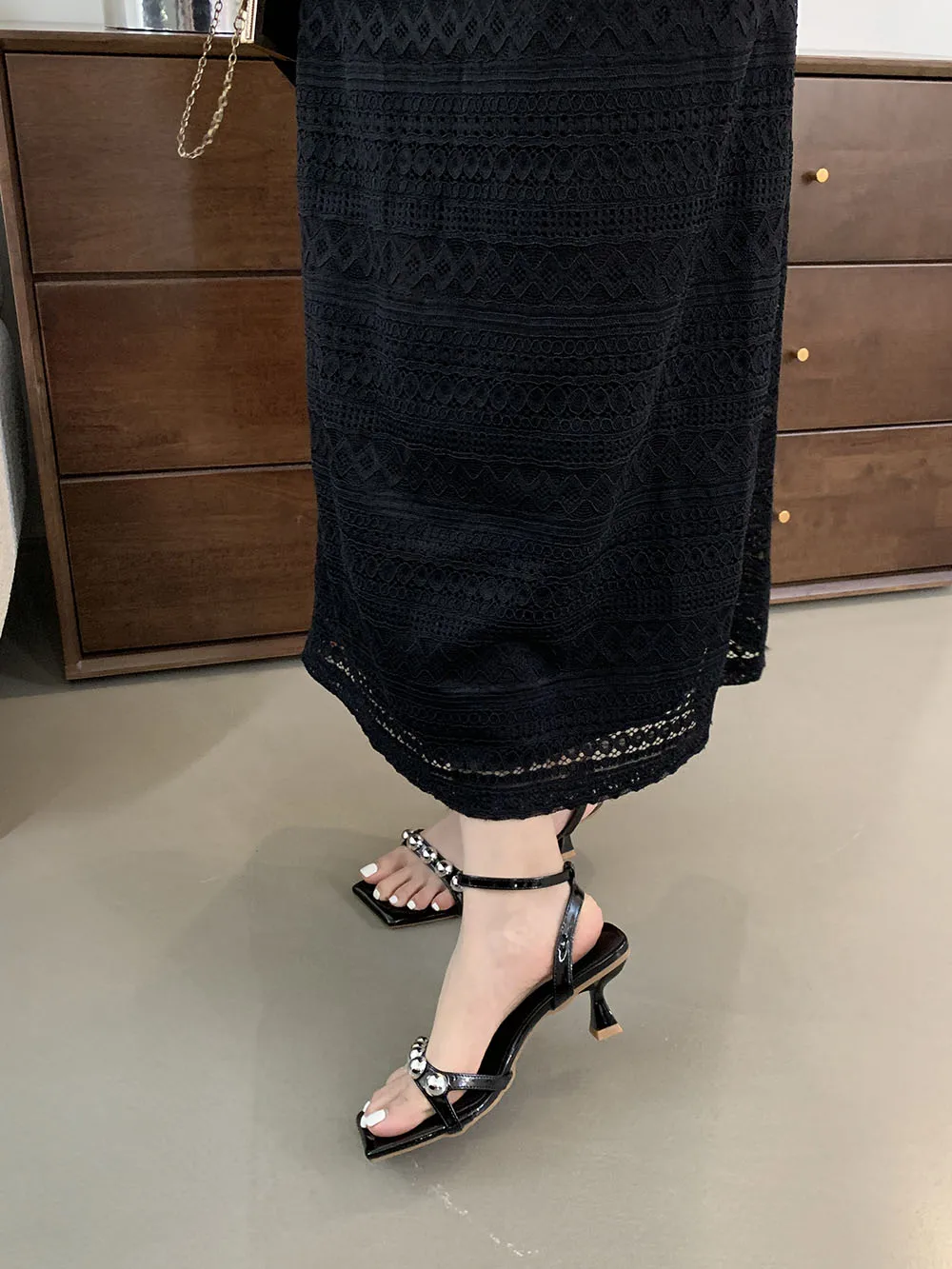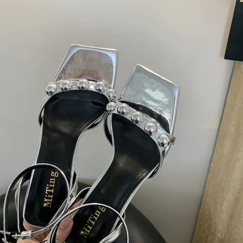 LBSFY - Fashion Women Sandals Open Toe Black Gold Silver Crystal Rhinestone Thin High Heels Ankle Strap Party Pumps Size 35-39 Sandals