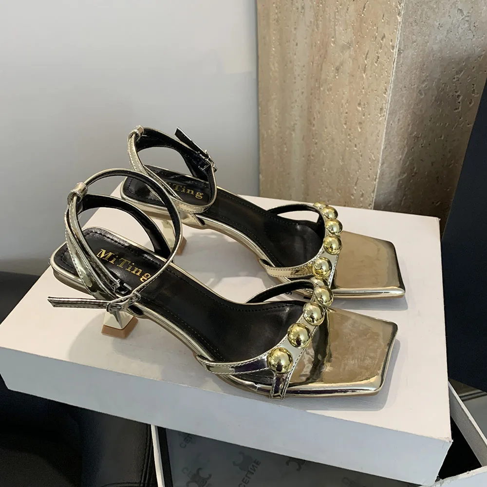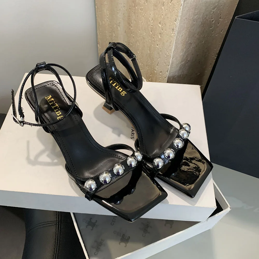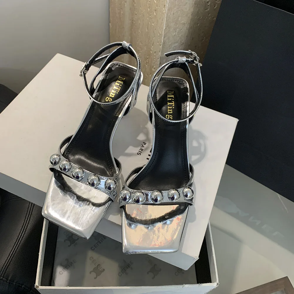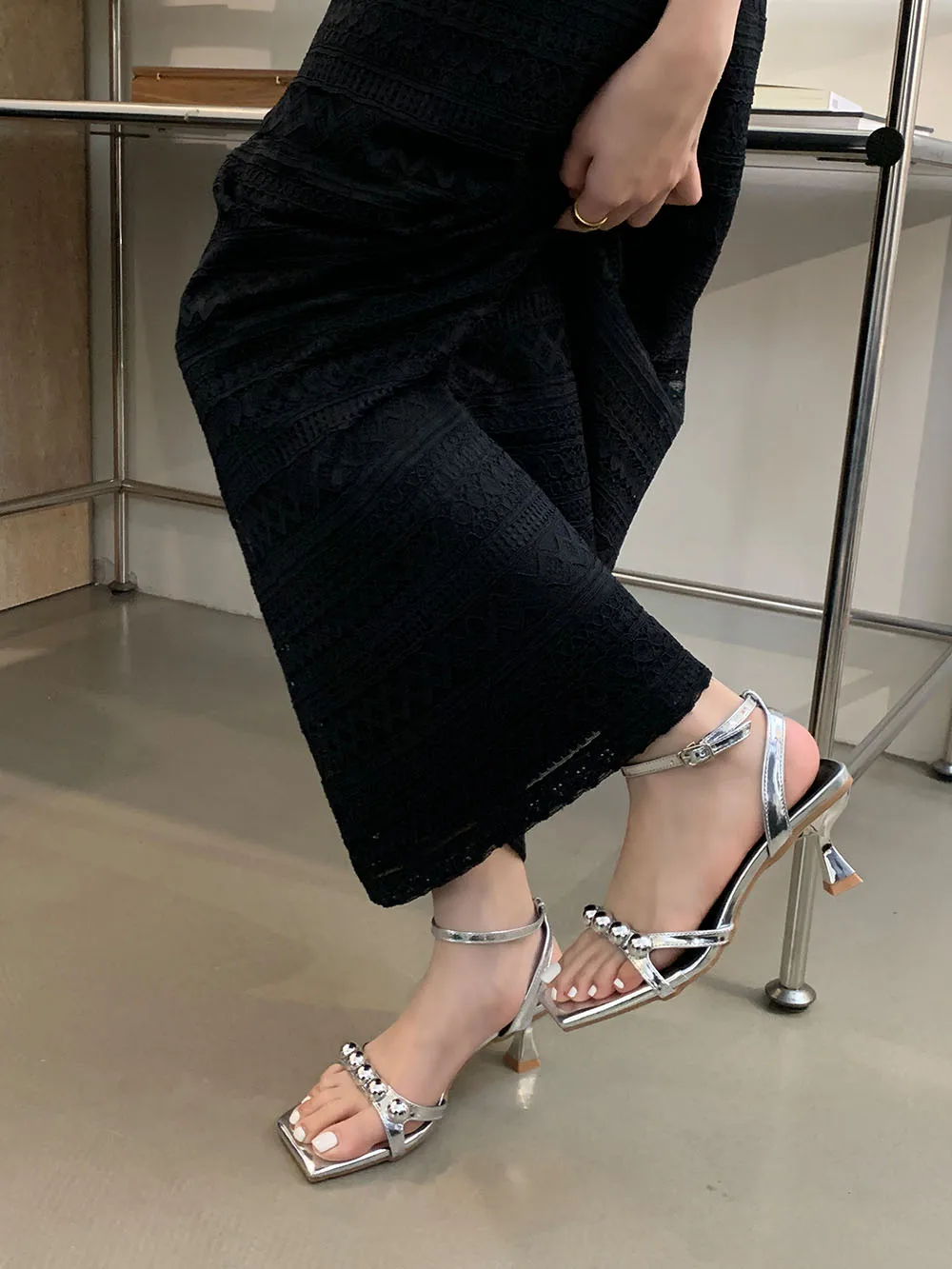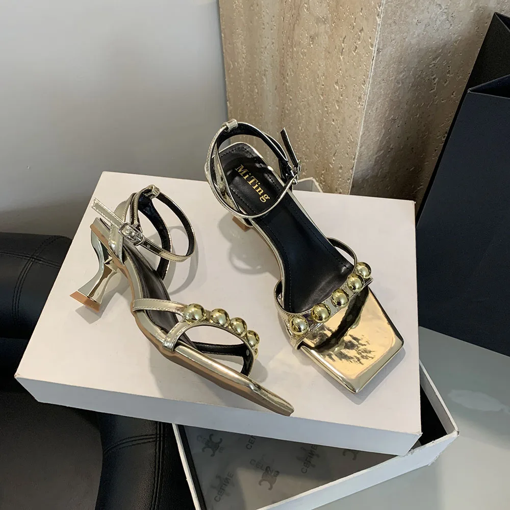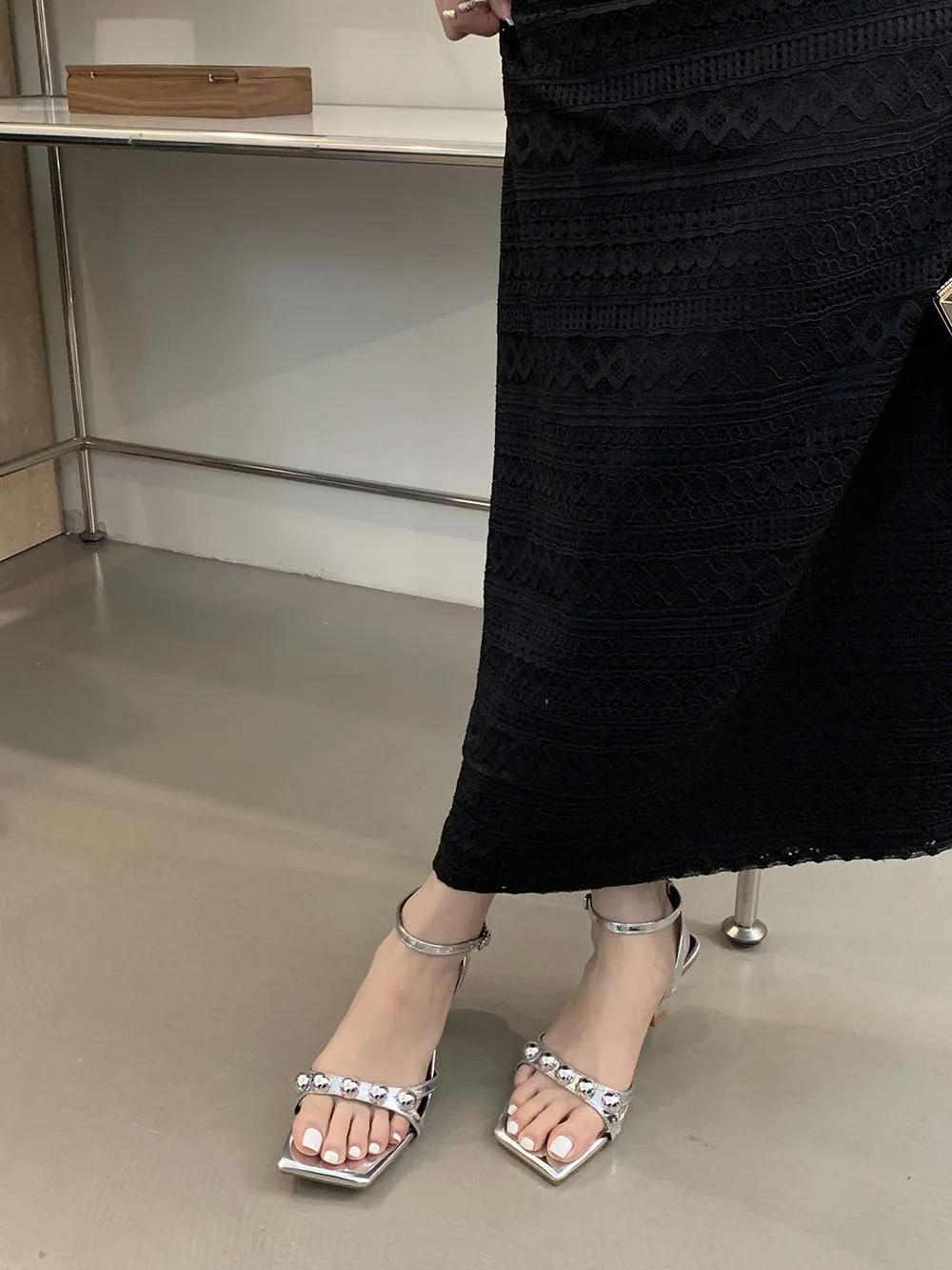 LBSFY - Fashion Women Sandals Open Toe Black Gold Silver Crystal Rhinestone Thin High Heels Ankle Strap Party Pumps Size 35-39 Sandals