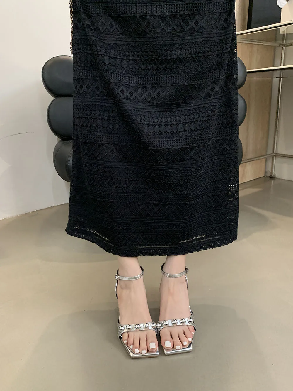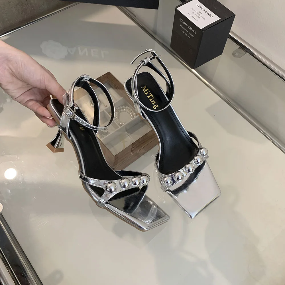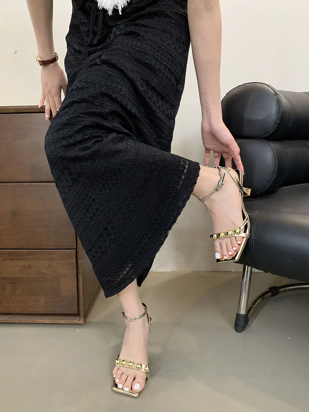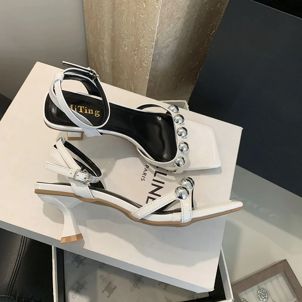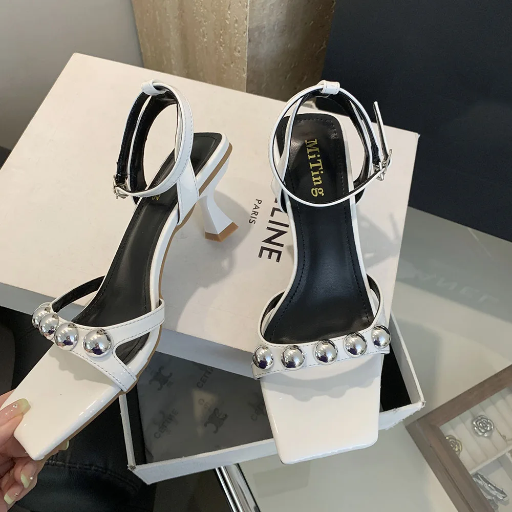LBSFY - Fashion Women Sandals Open Toe Black Gold Silver Crystal Rhinestone Thin High Heels Ankle Strap Party Pumps Size 35-39 Sandals