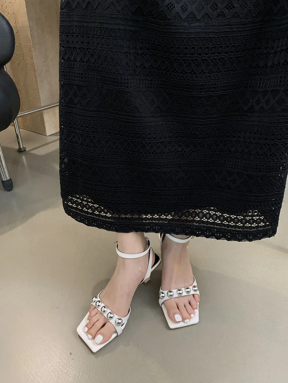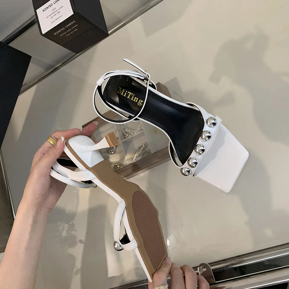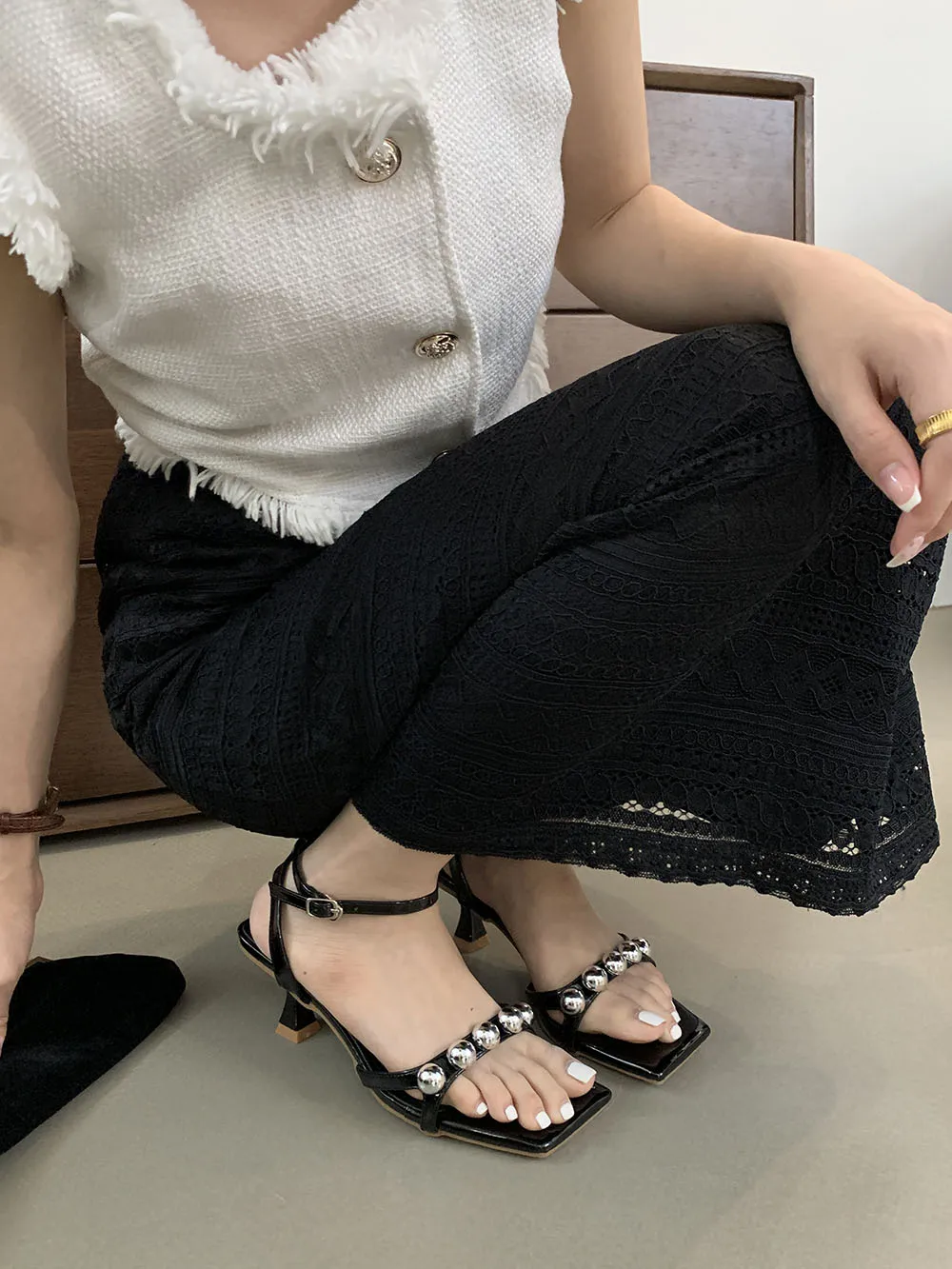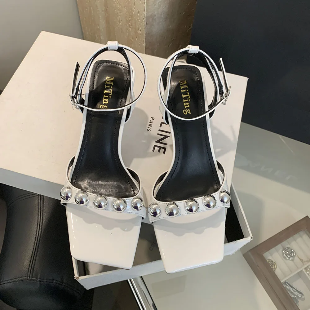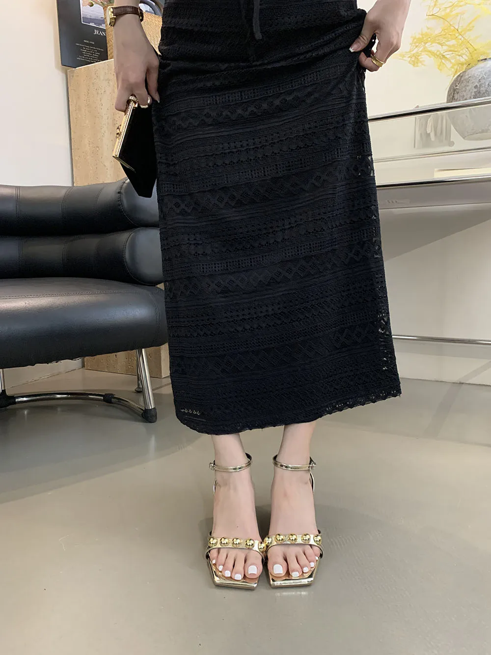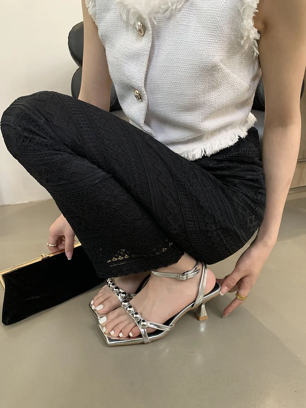 LBSFY - Fashion Women Sandals Open Toe Black Gold Silver Crystal Rhinestone Thin High Heels Ankle Strap Party Pumps Size 35-39 Sandals