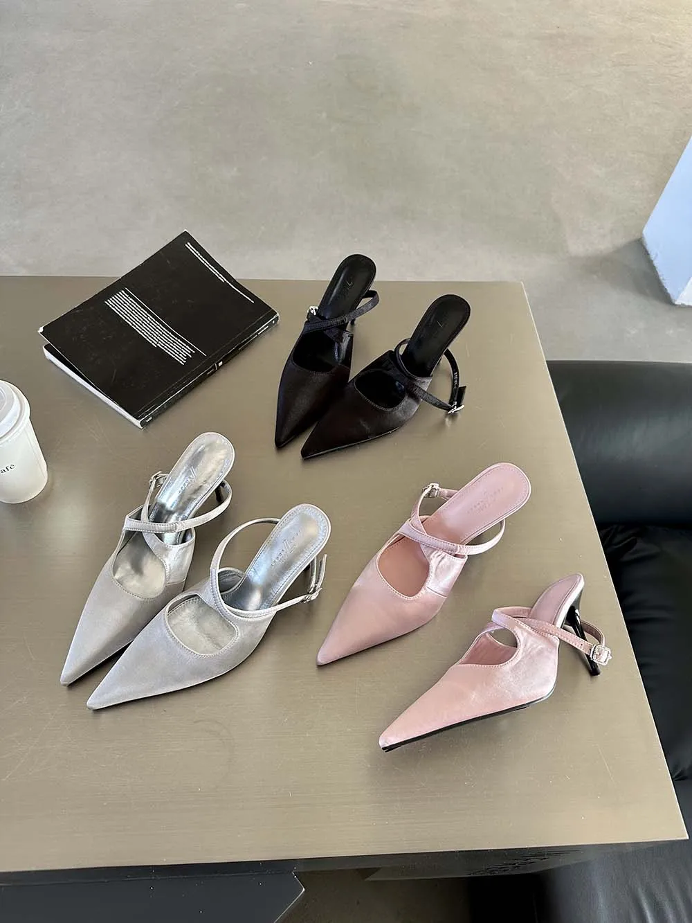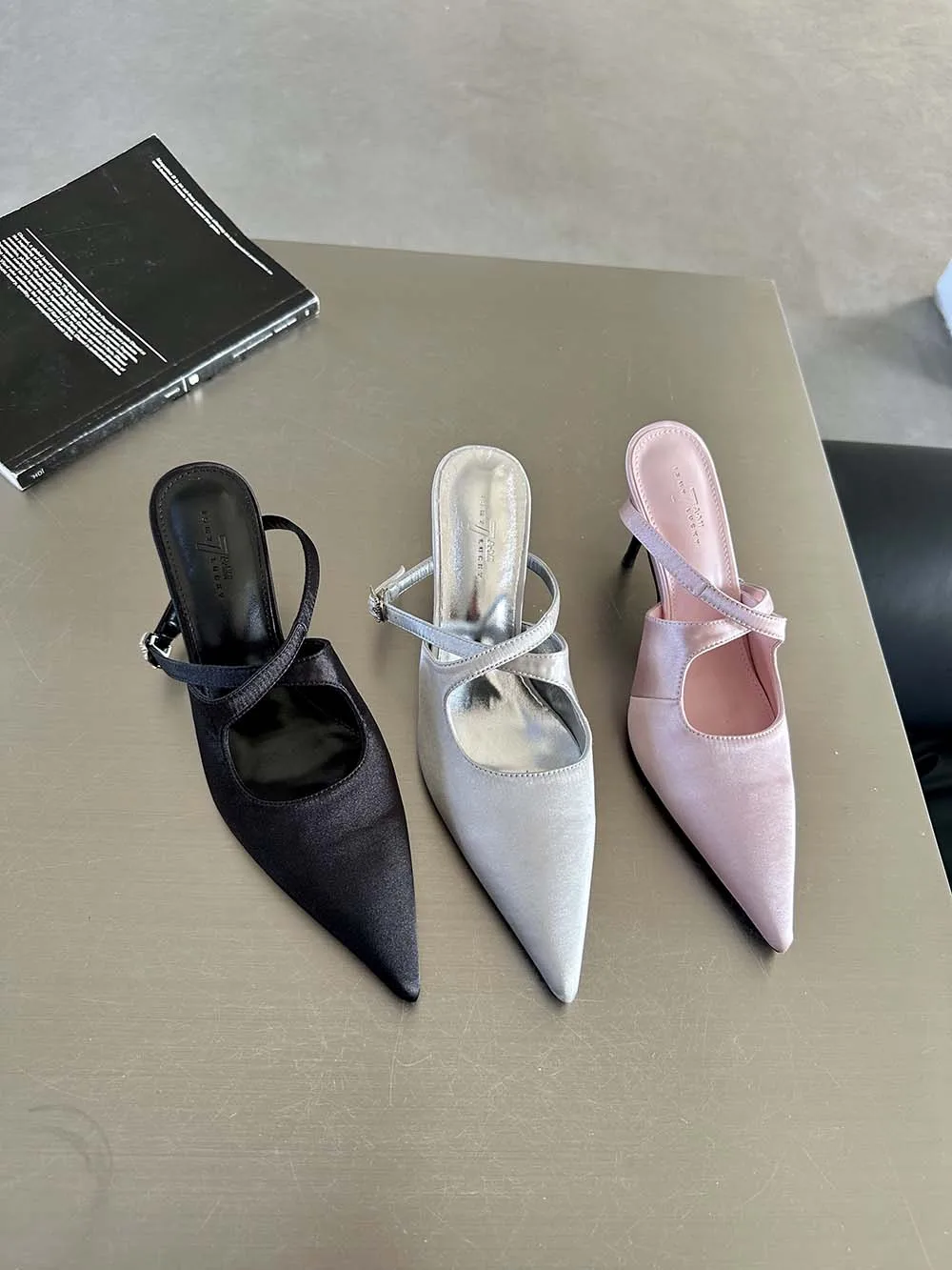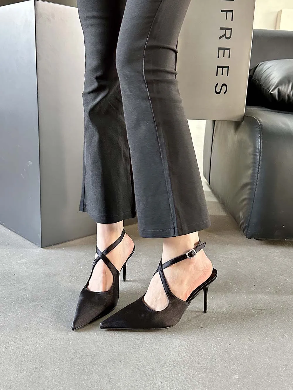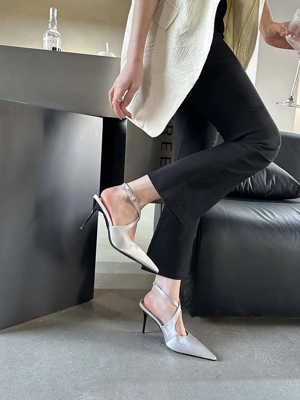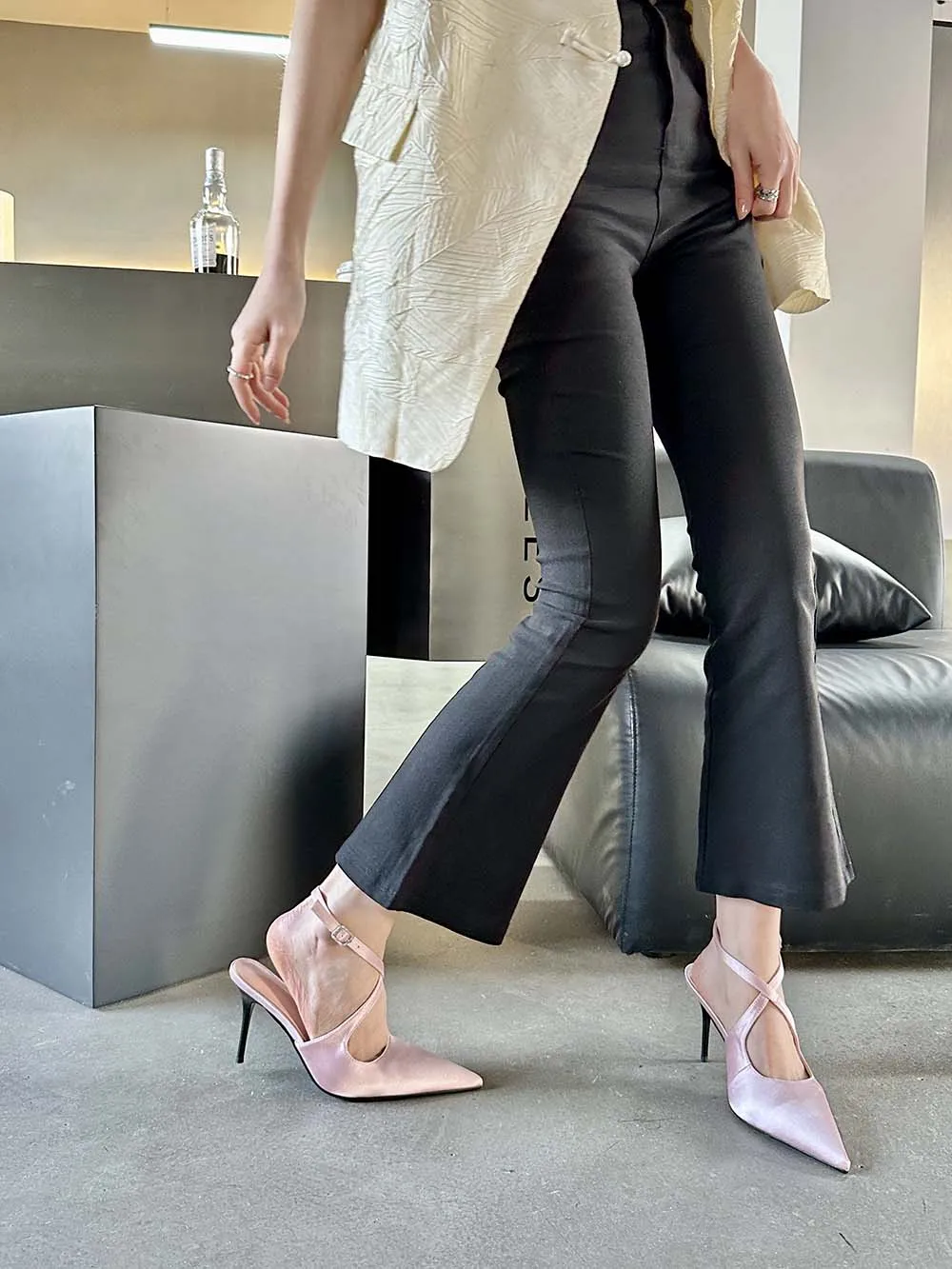 LBSFY - Fashion Women Sandals Pointed Toe Summer Dress Shoes Thin High Heels Pink Black Silver Party Pumps Casual Slides Mules Shoes 39