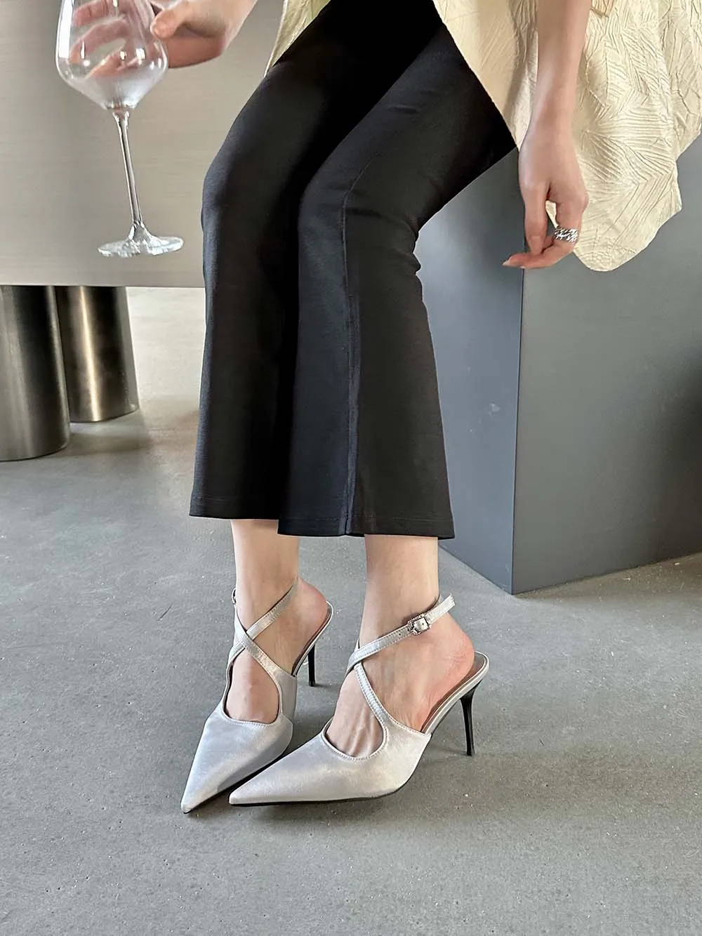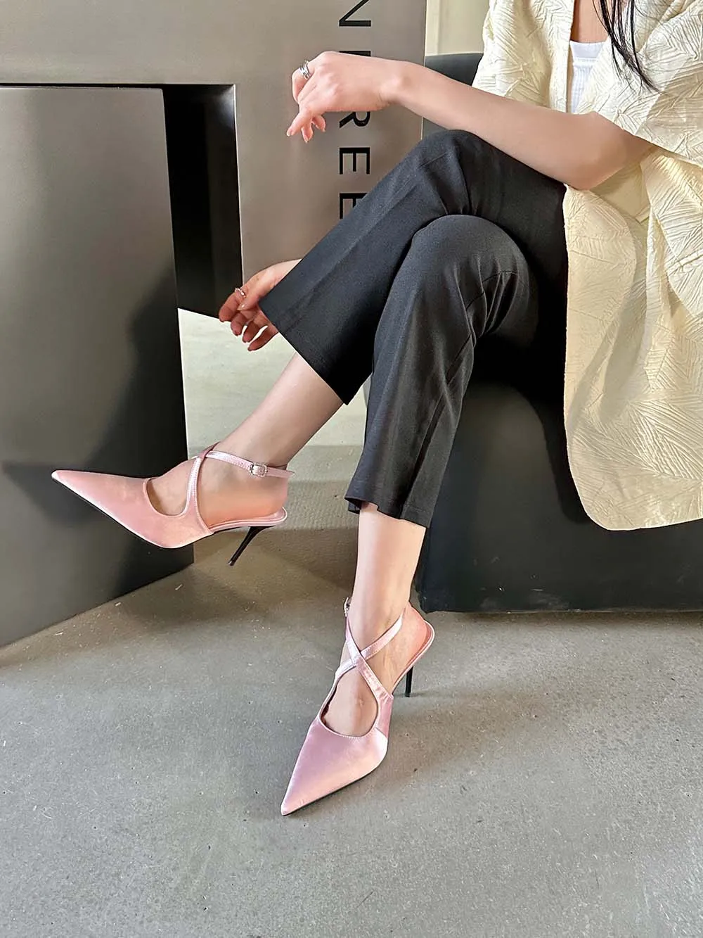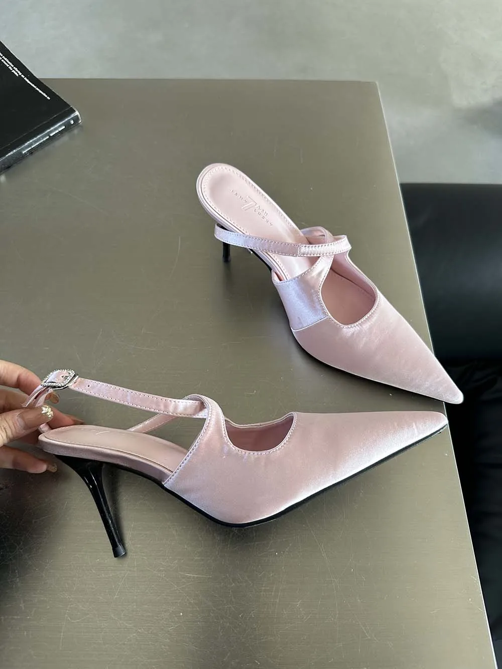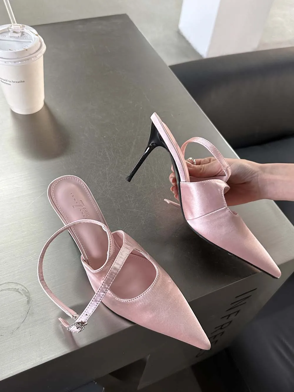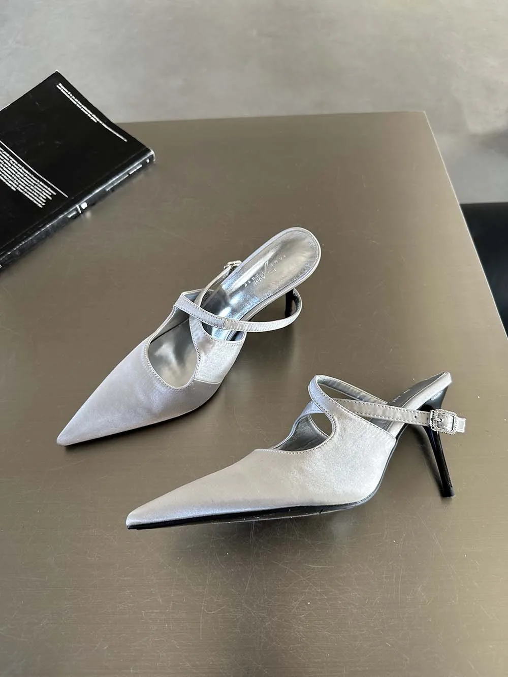 LBSFY - Fashion Women Sandals Pointed Toe Summer Dress Shoes Thin High Heels Pink Black Silver Party Pumps Casual Slides Mules Shoes 39