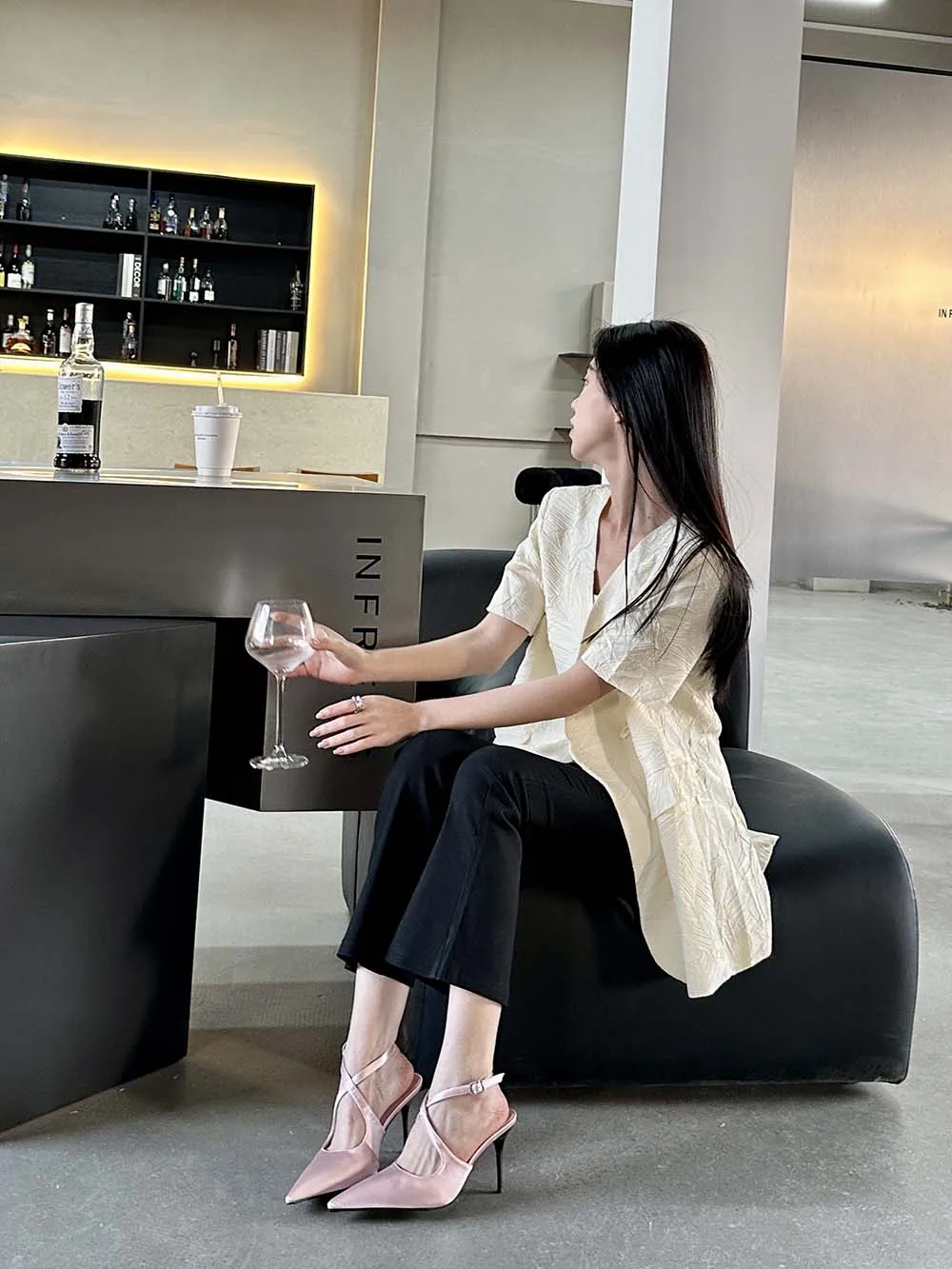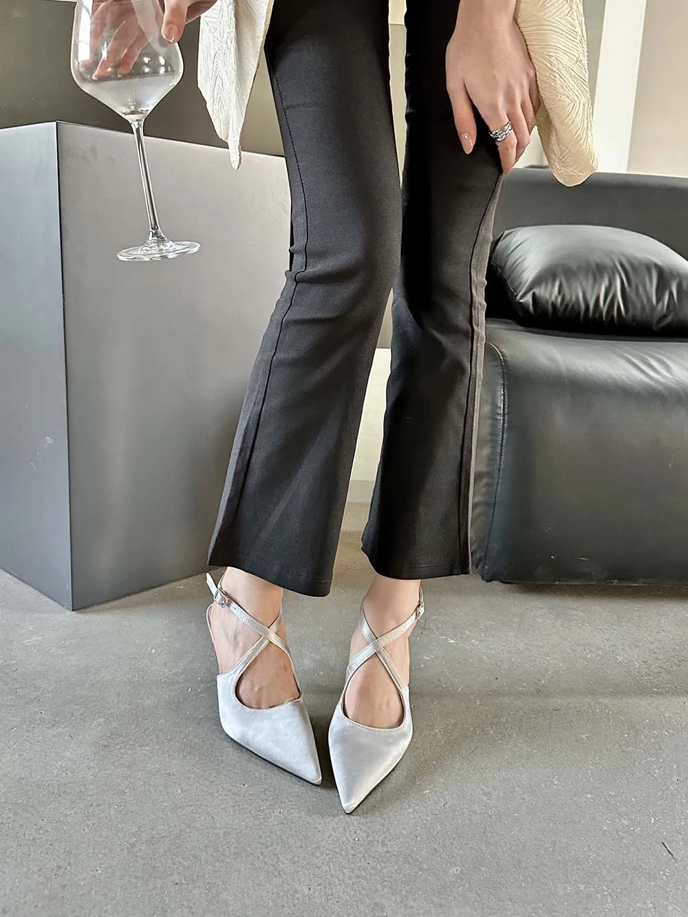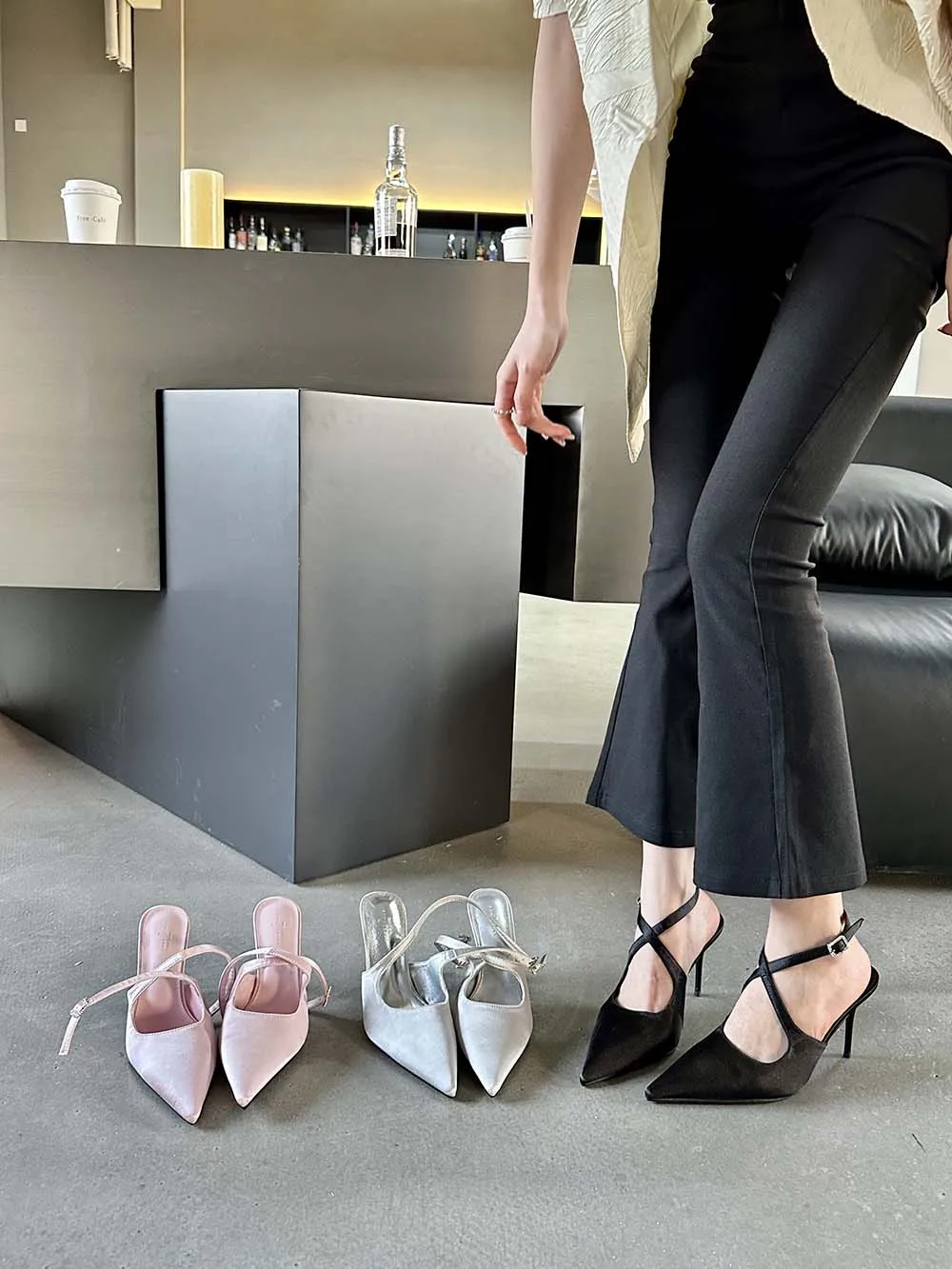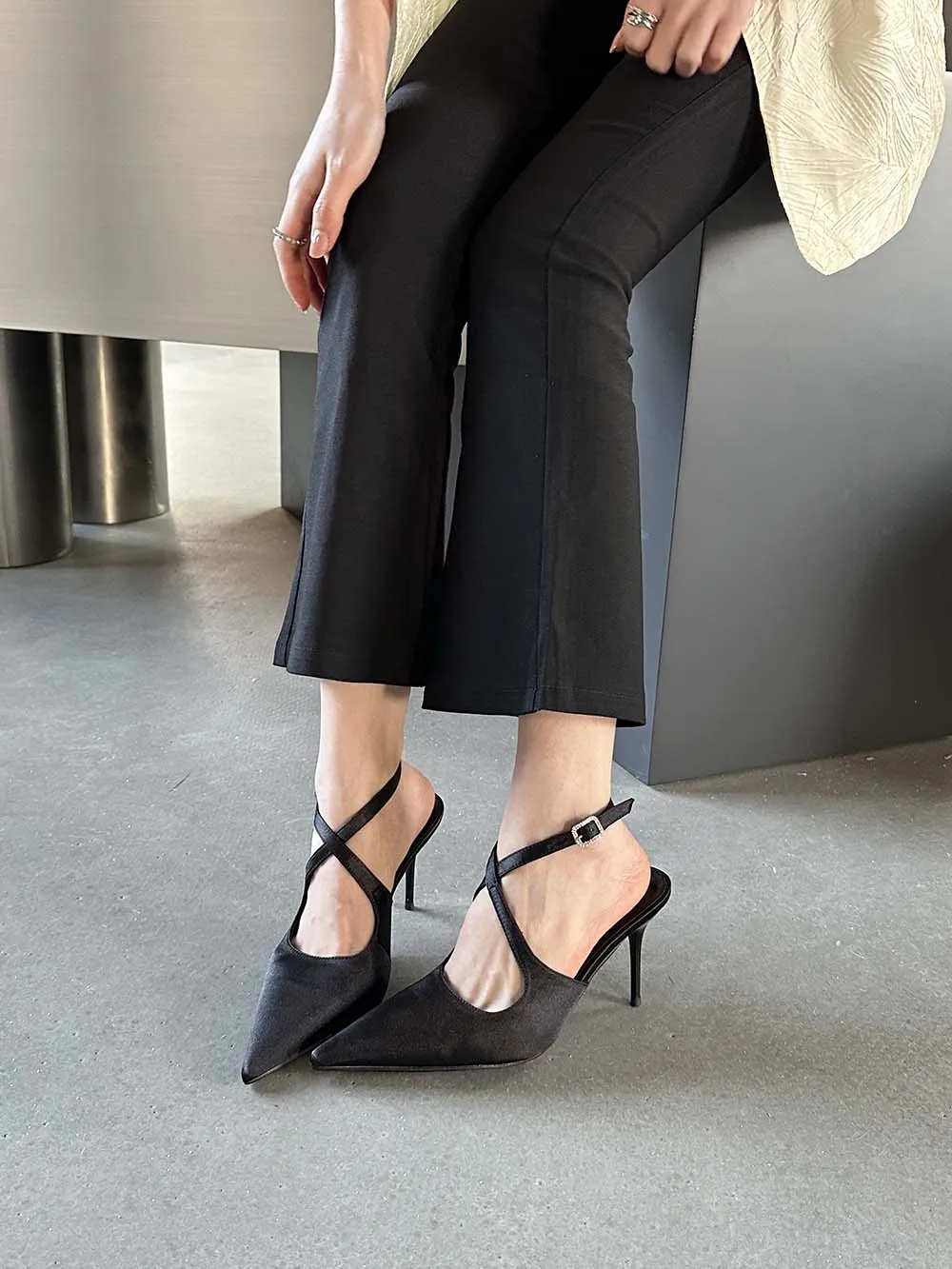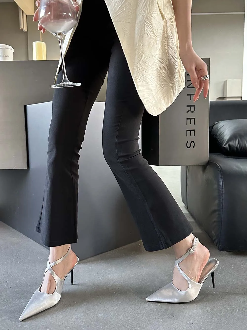 LBSFY - Fashion Women Sandals Pointed Toe Summer Dress Shoes Thin High Heels Pink Black Silver Party Pumps Casual Slides Mules Shoes 39