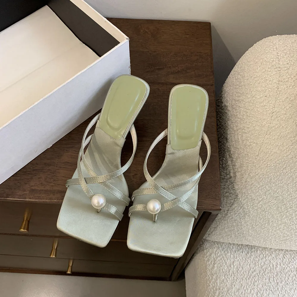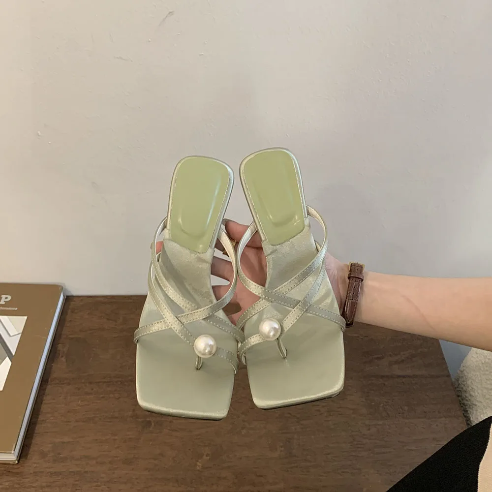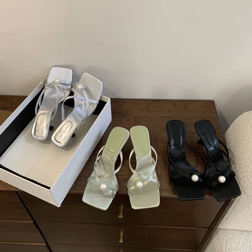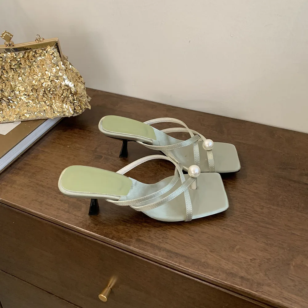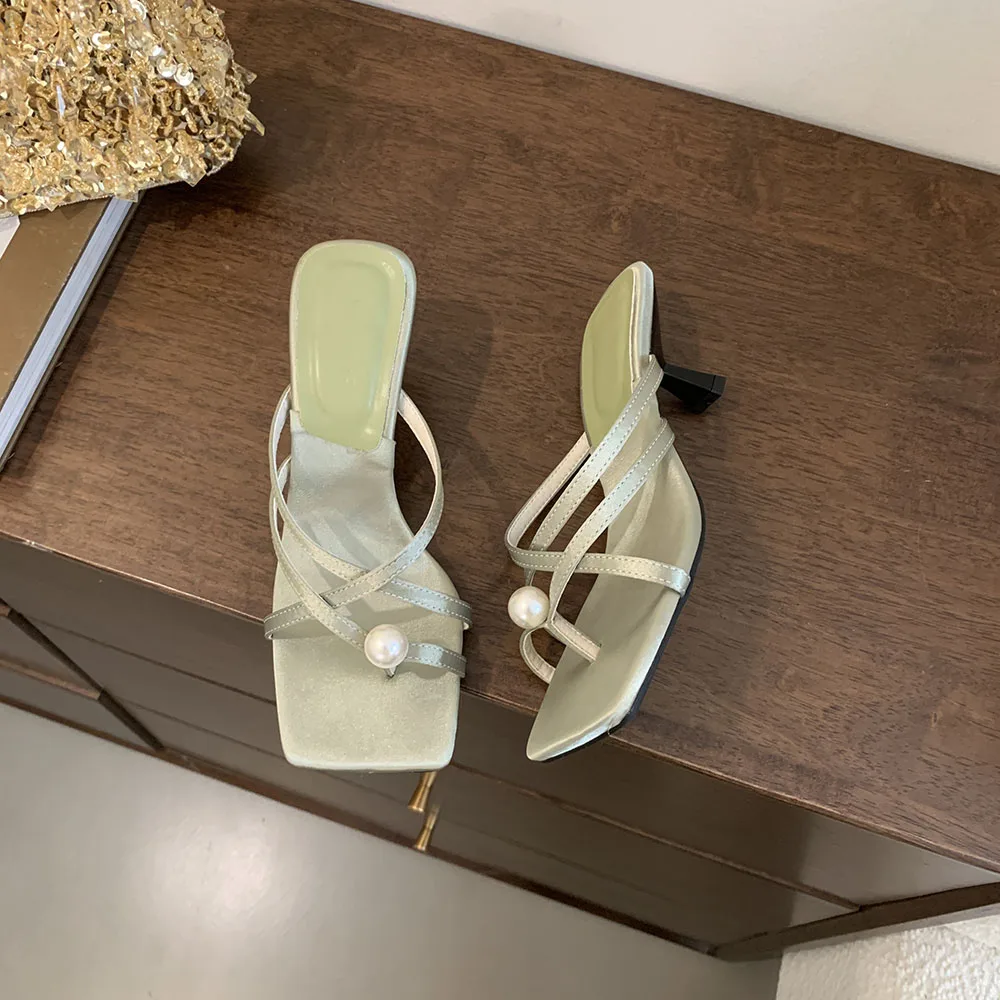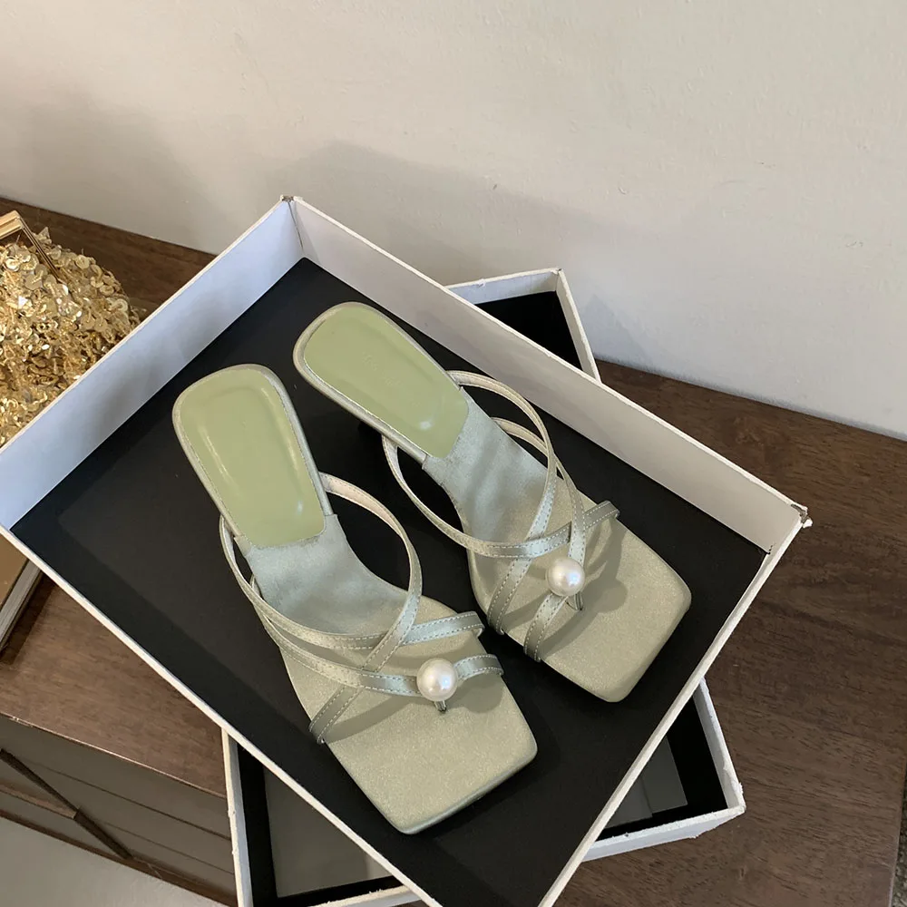LBSFY - Fashion Women Sandals Slides Slippers Black Blue Green Summer Dress Shoes Thin High Heels Cross Strap Stiletto Party Pumps 2024