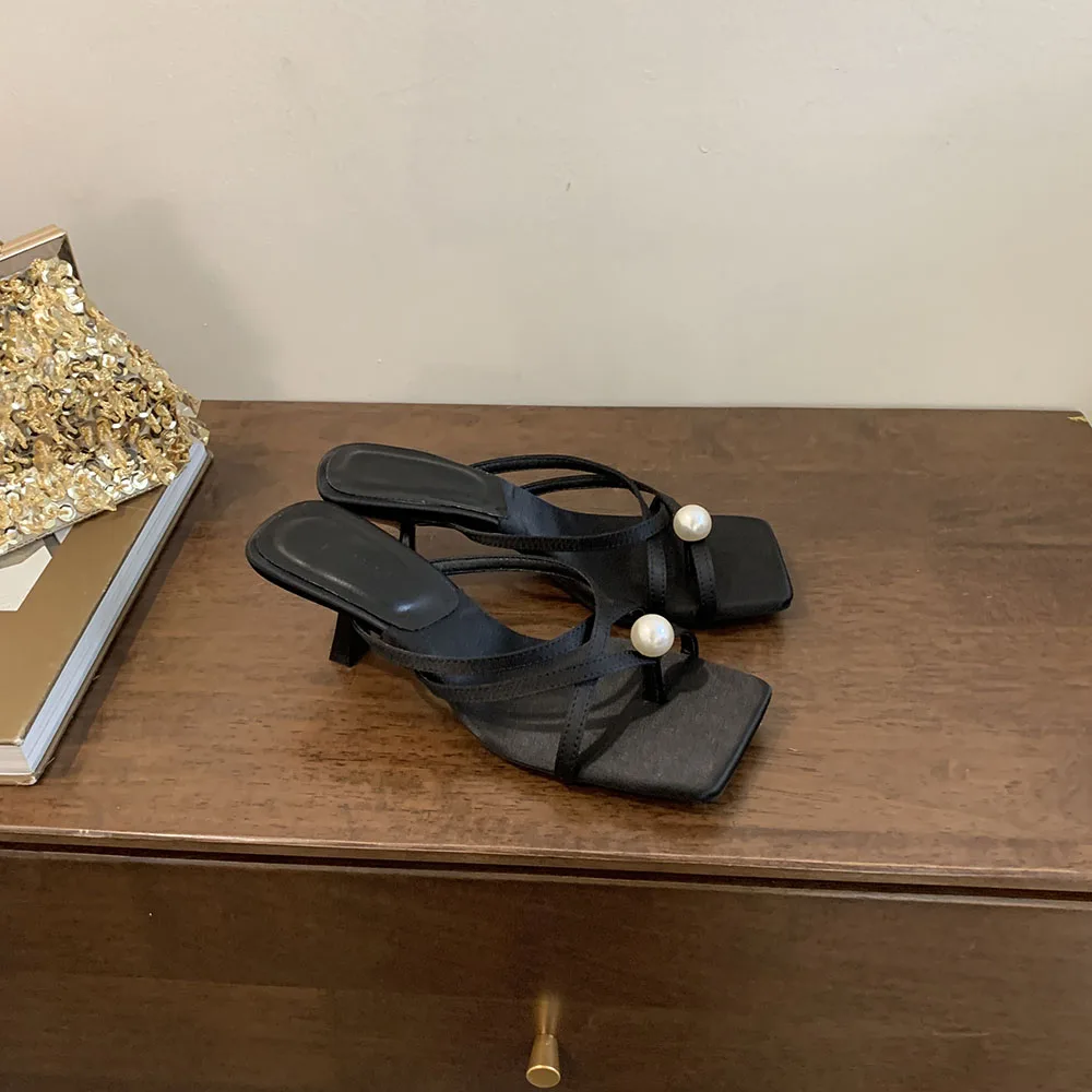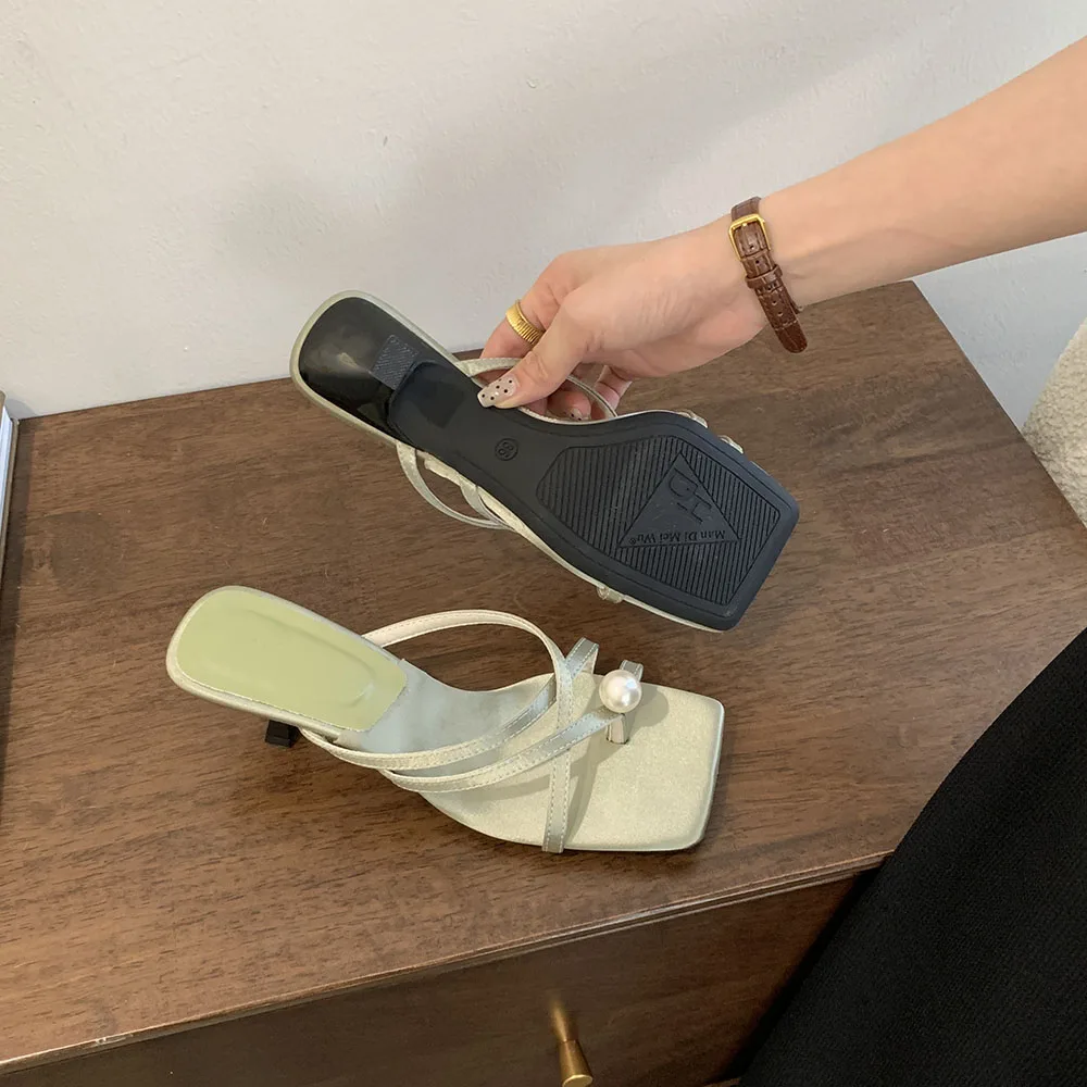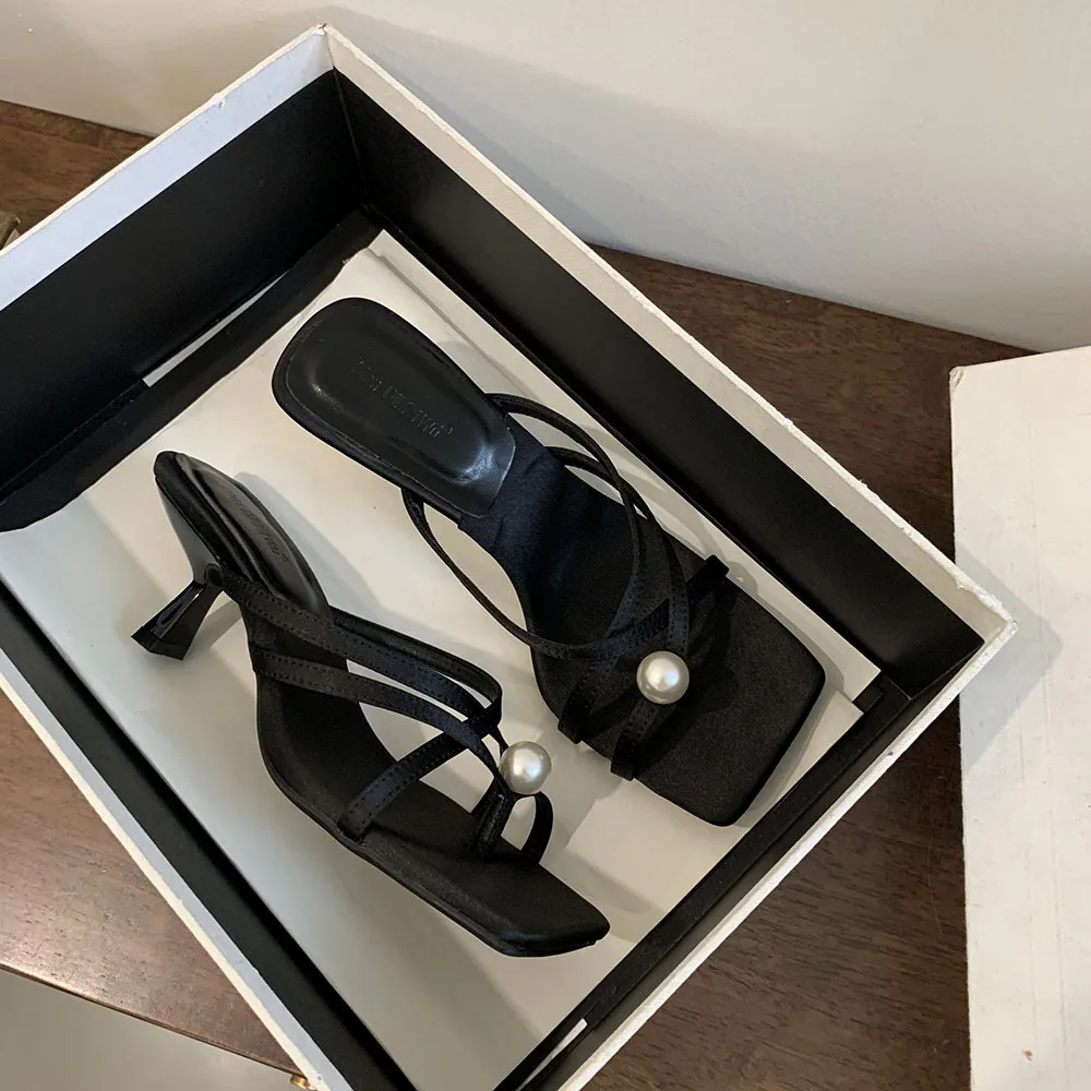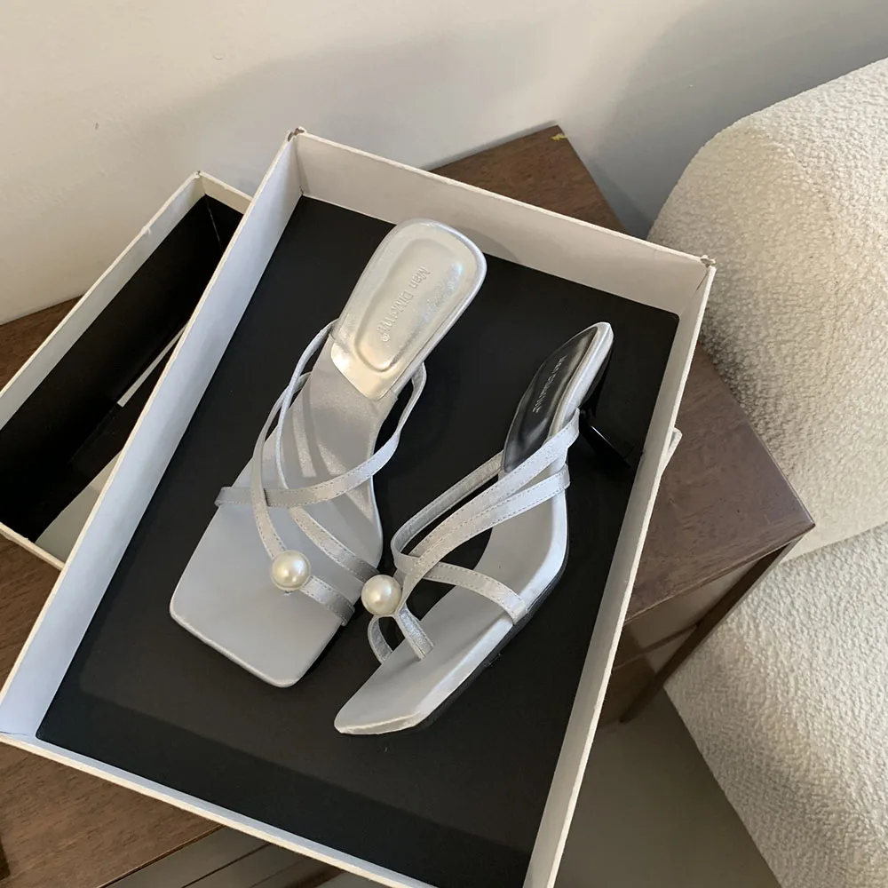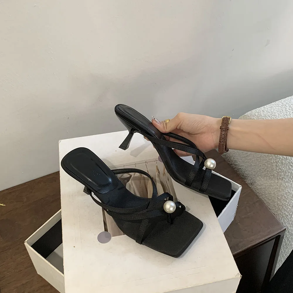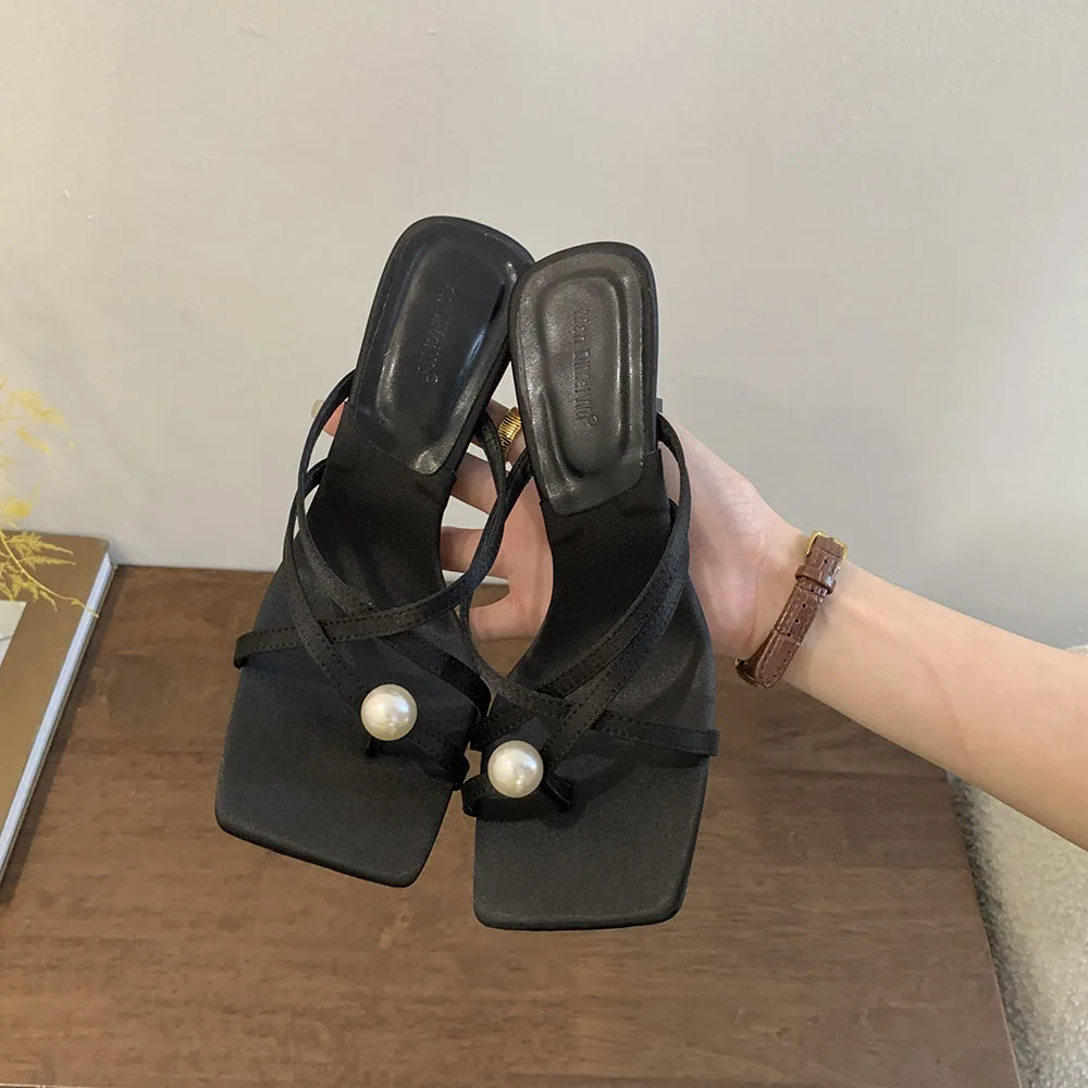 LBSFY - Fashion Women Sandals Slides Slippers Black Blue Green Summer Dress Shoes Thin High Heels Cross Strap Stiletto Party Pumps 2024