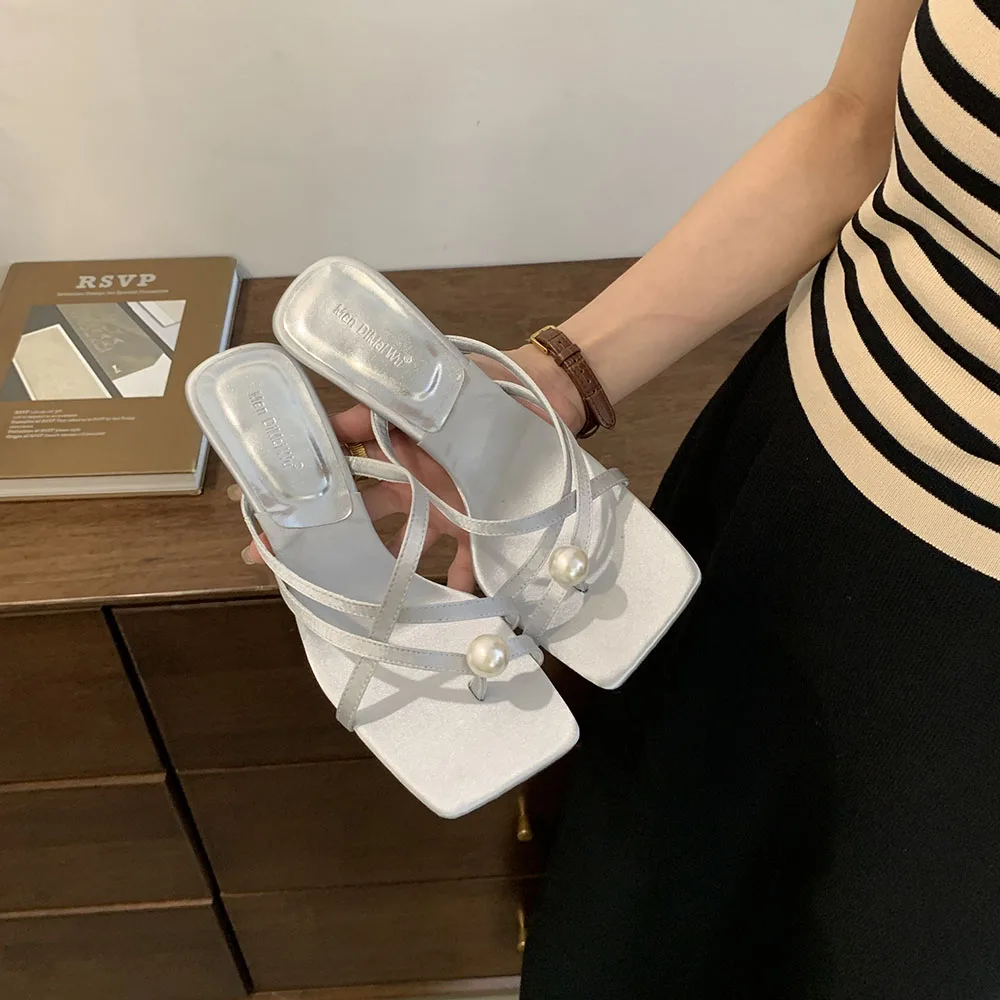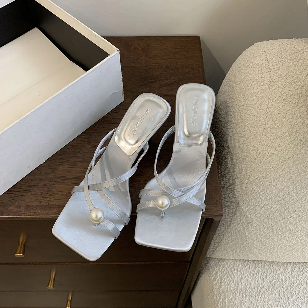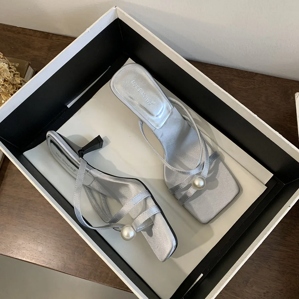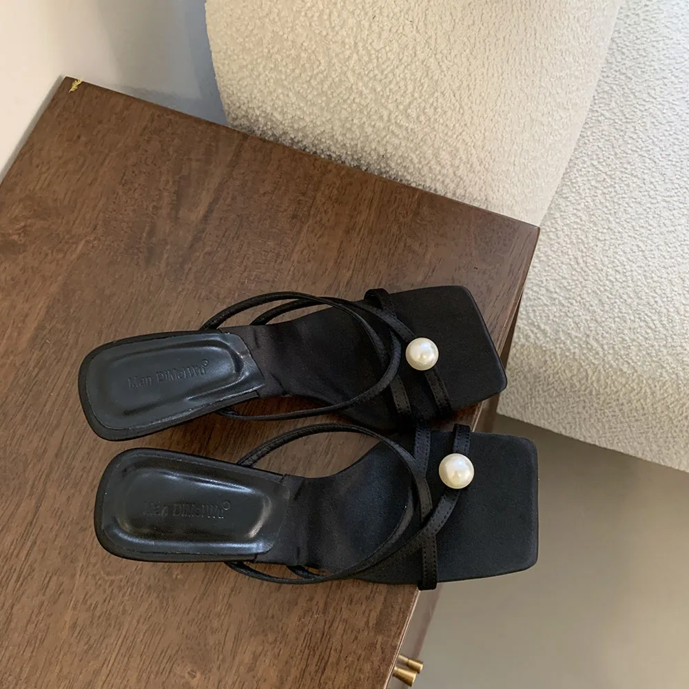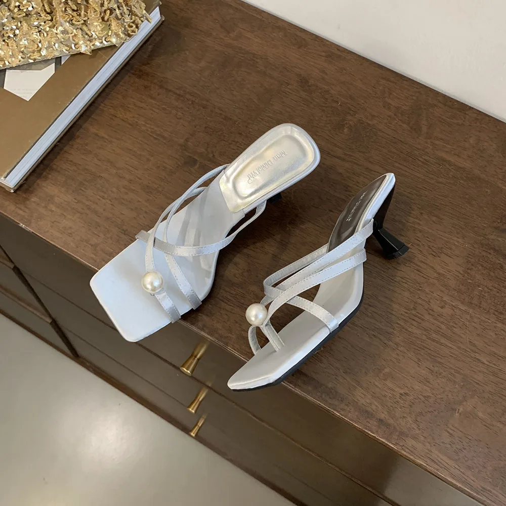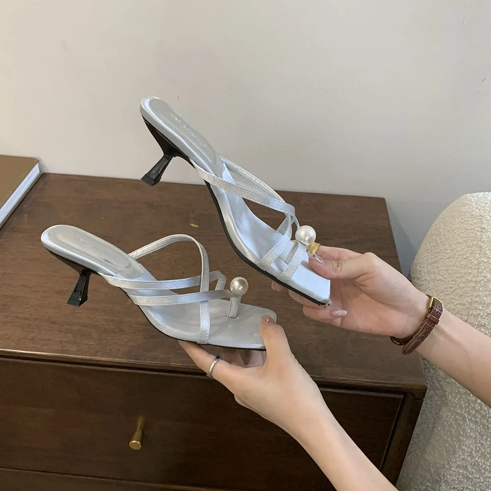 LBSFY - Fashion Women Sandals Slides Slippers Black Blue Green Summer Dress Shoes Thin High Heels Cross Strap Stiletto Party Pumps 2024