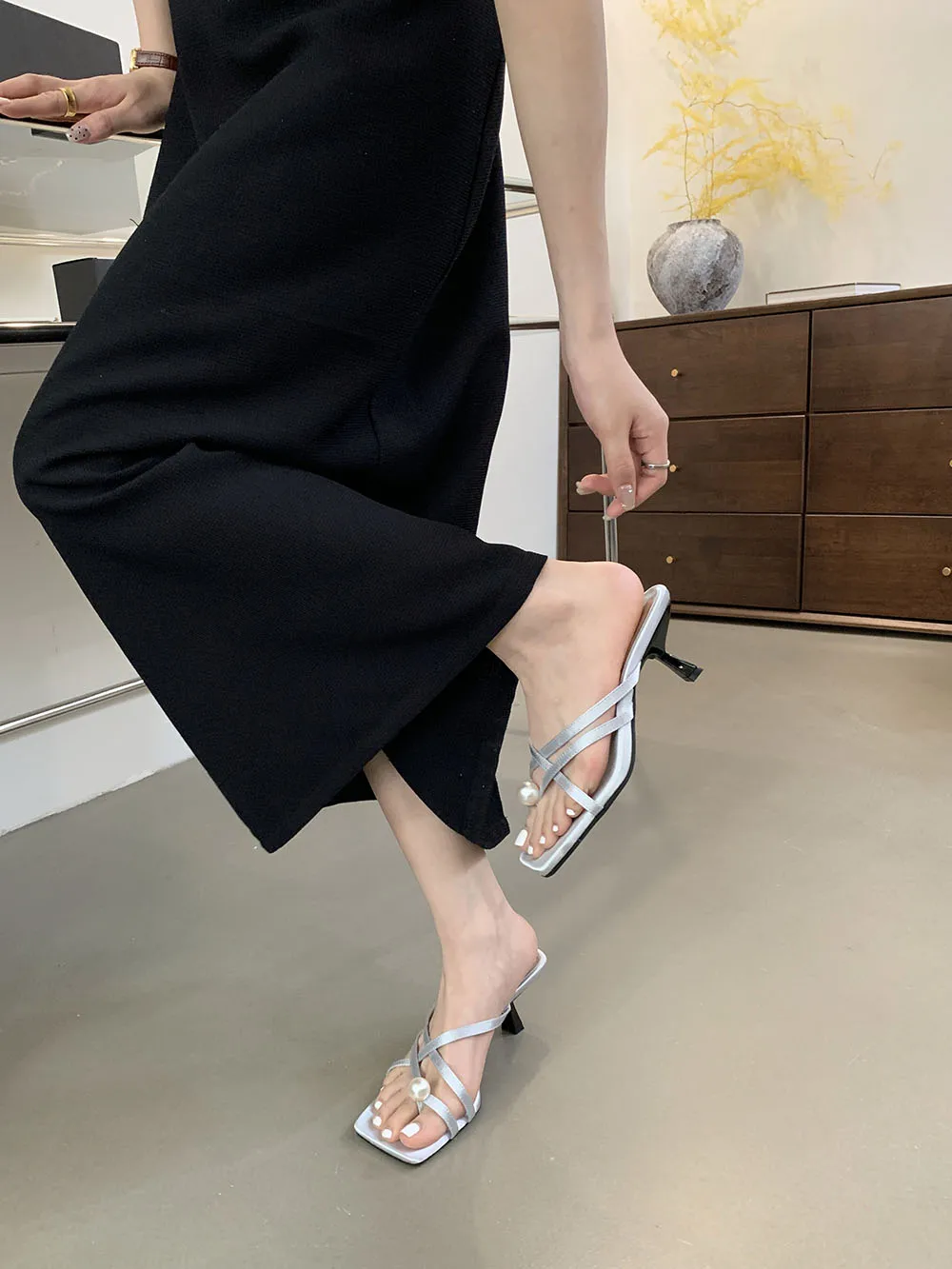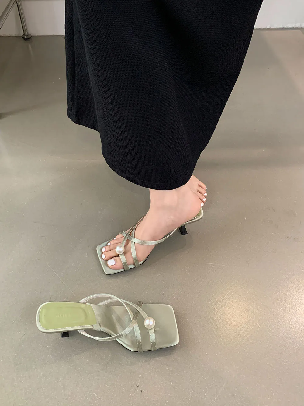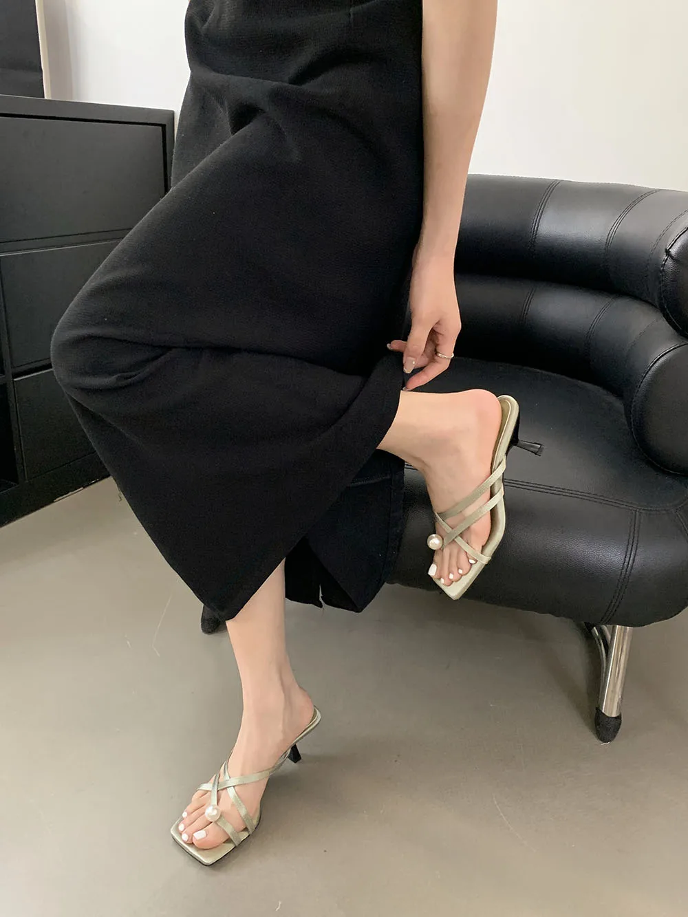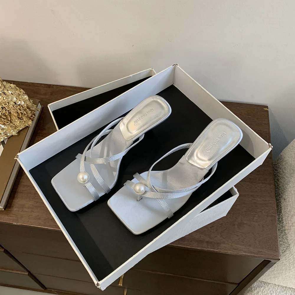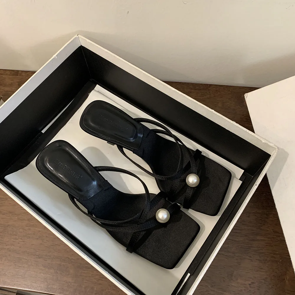 LBSFY - Fashion Women Sandals Slides Slippers Black Blue Green Summer Dress Shoes Thin High Heels Cross Strap Stiletto Party Pumps 2024