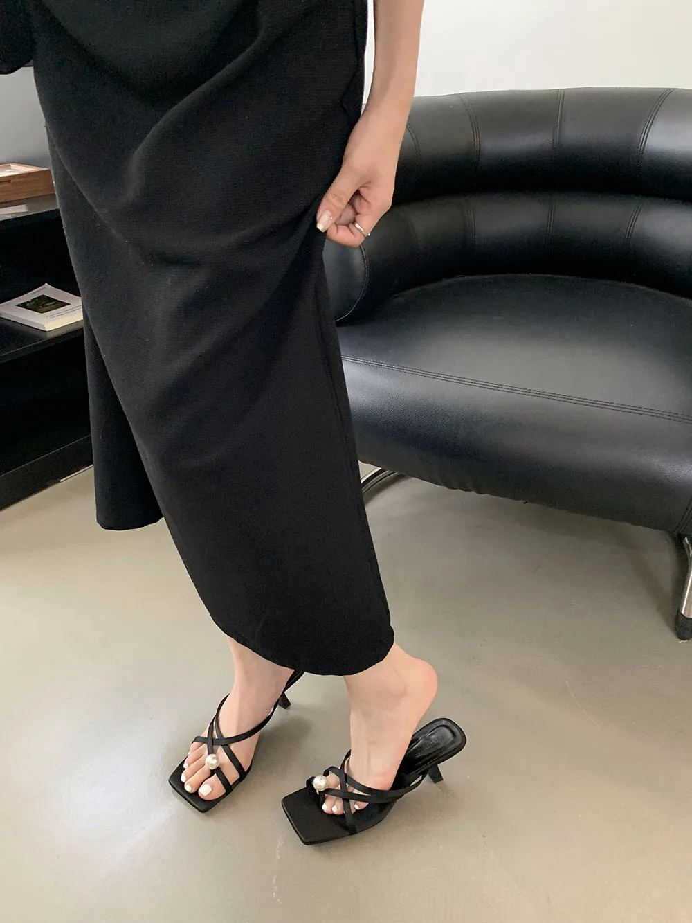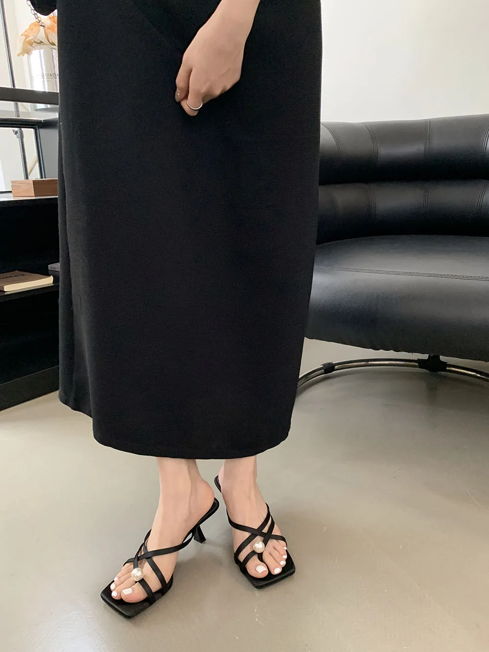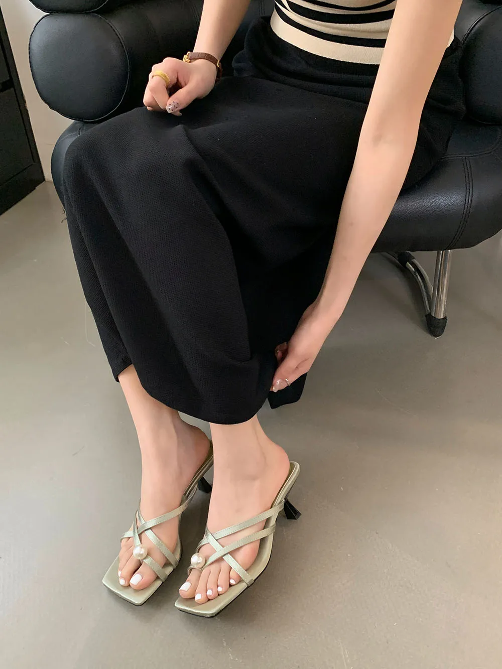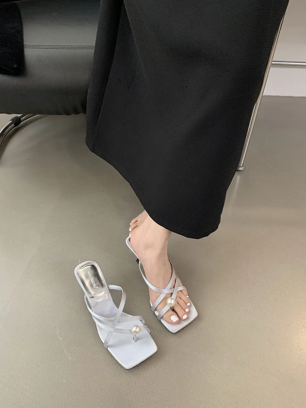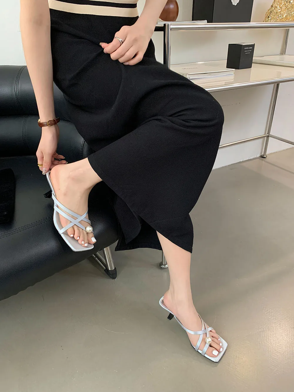 LBSFY - Fashion Women Sandals Slides Slippers Black Blue Green Summer Dress Shoes Thin High Heels Cross Strap Stiletto Party Pumps 2024
