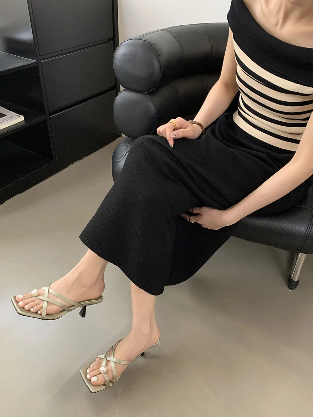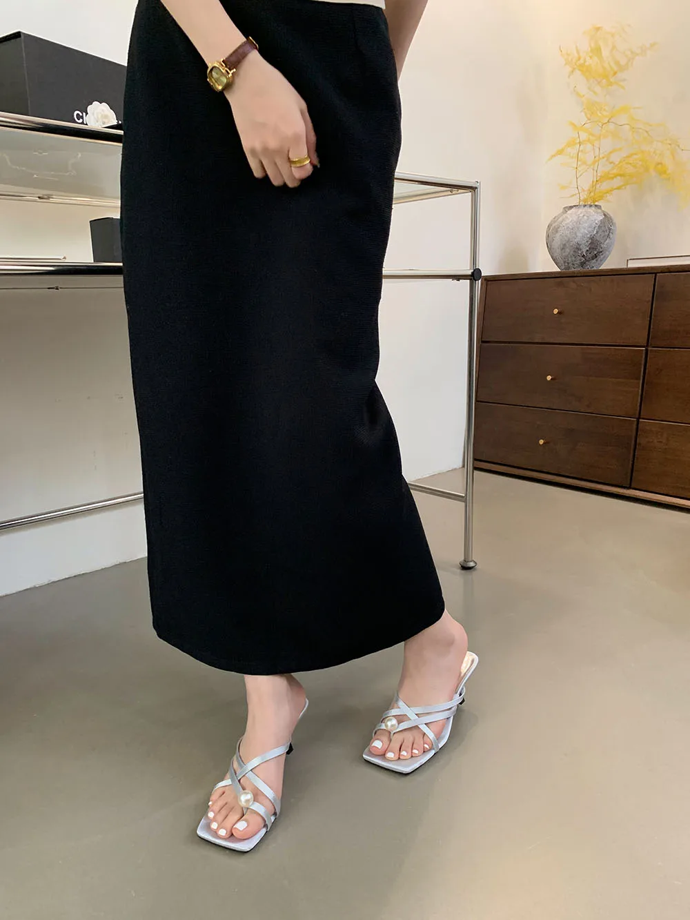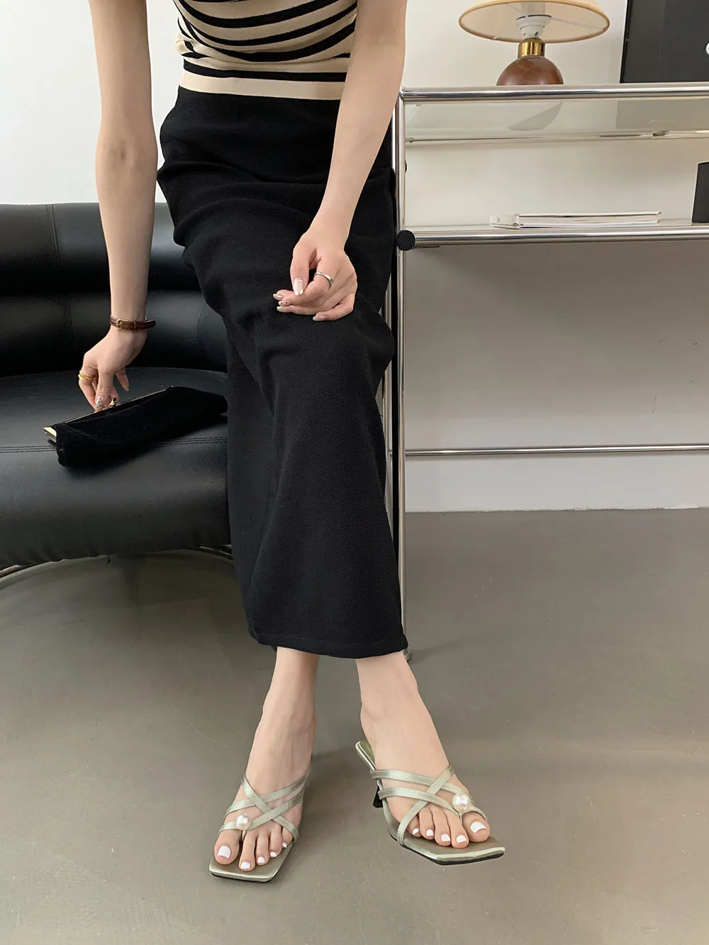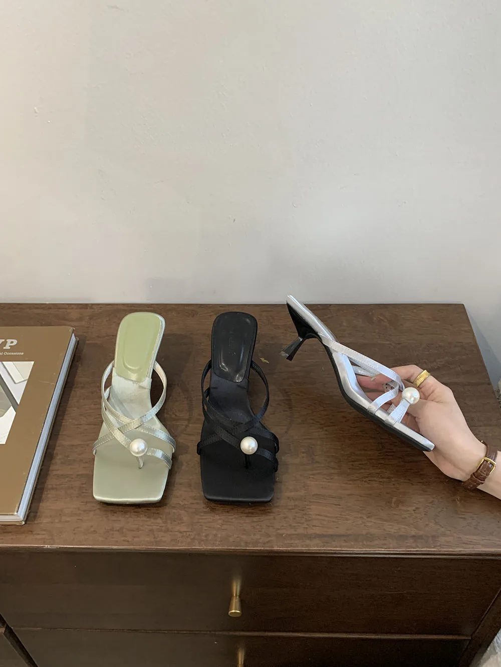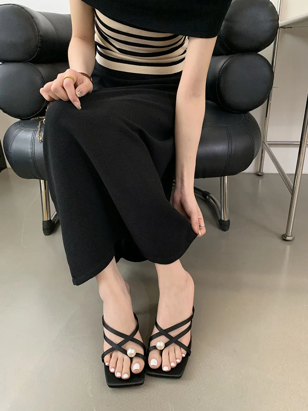 LBSFY - Fashion Women Sandals Slides Slippers Black Blue Green Summer Dress Shoes Thin High Heels Cross Strap Stiletto Party Pumps 2024