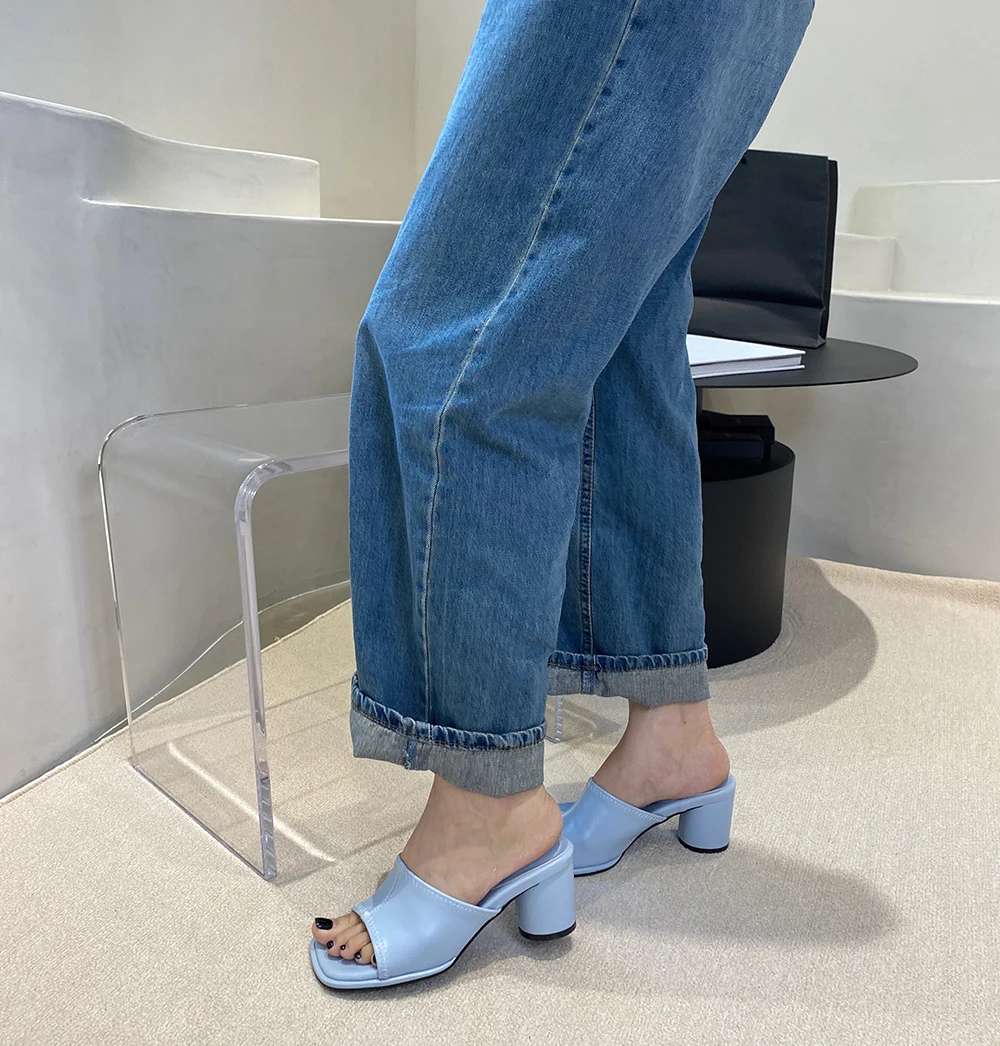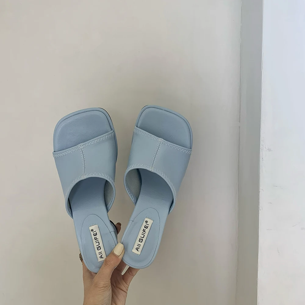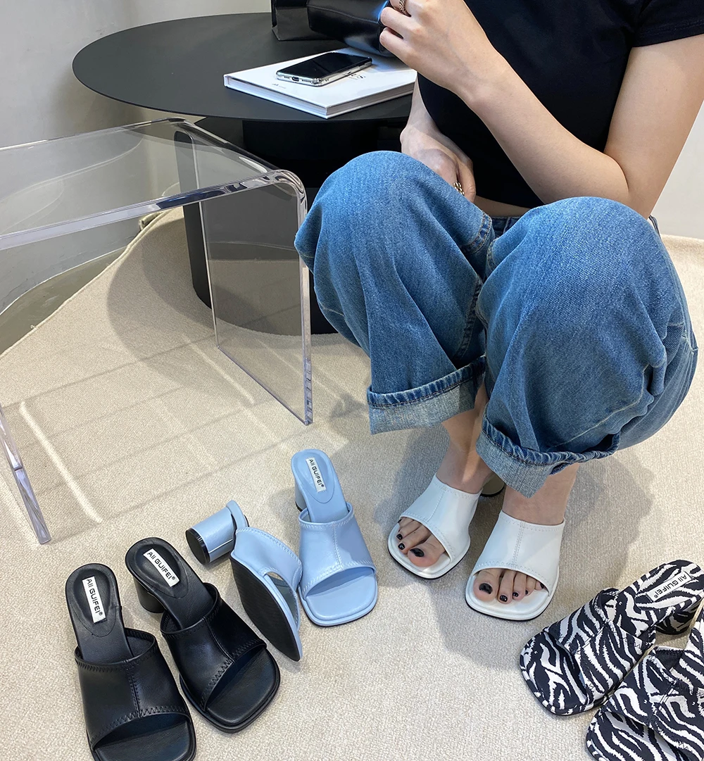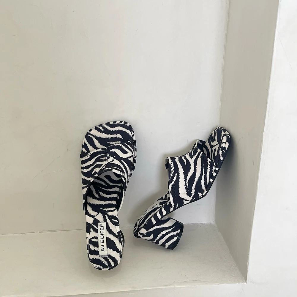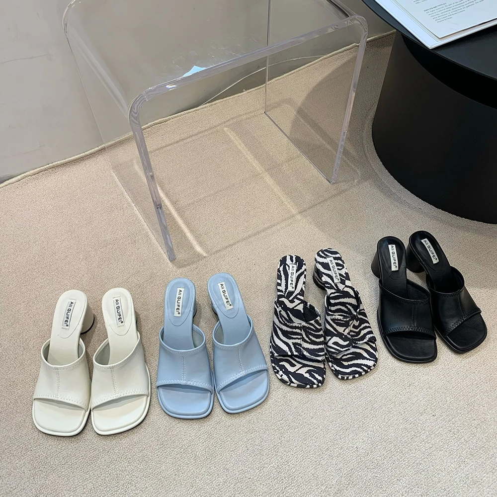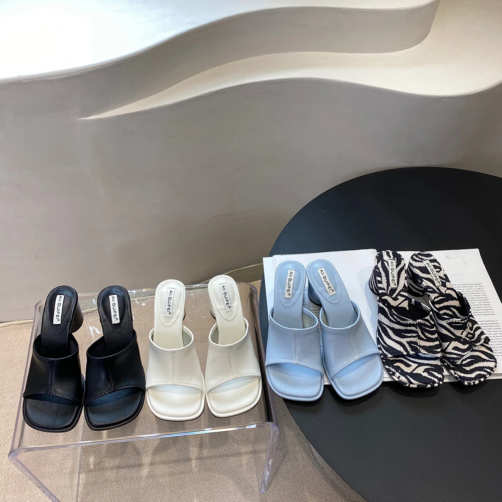 LBSFY - Fashion Women Sandals Slides Slippers Open Toe Summer Dress Shoes Woman Size 35-40 Blue Black White Zebra Color Round High Heels