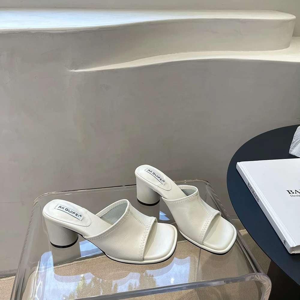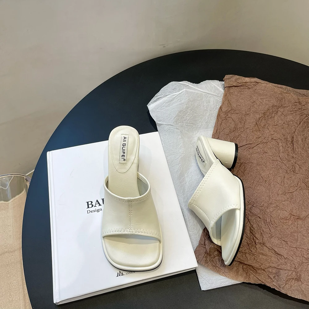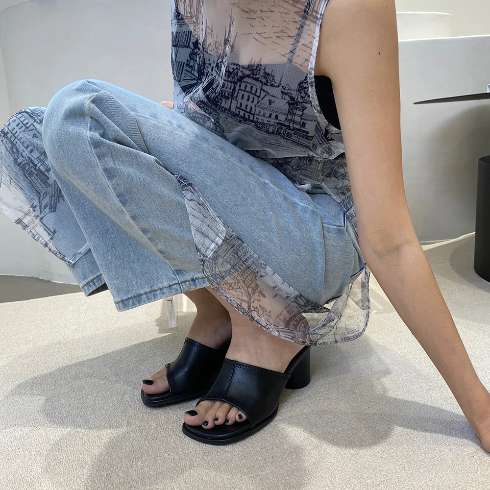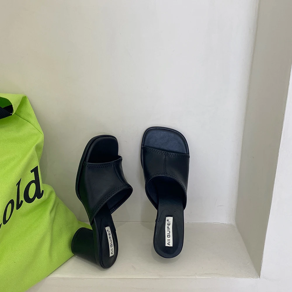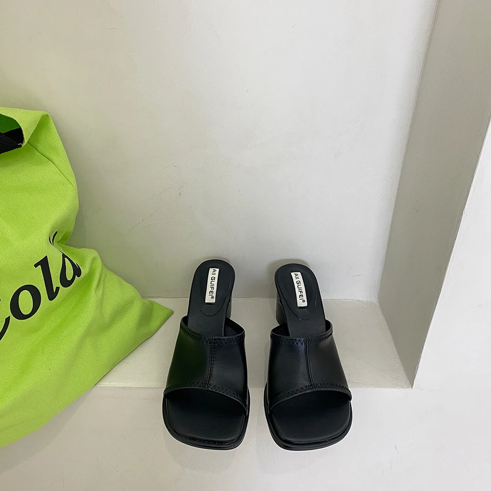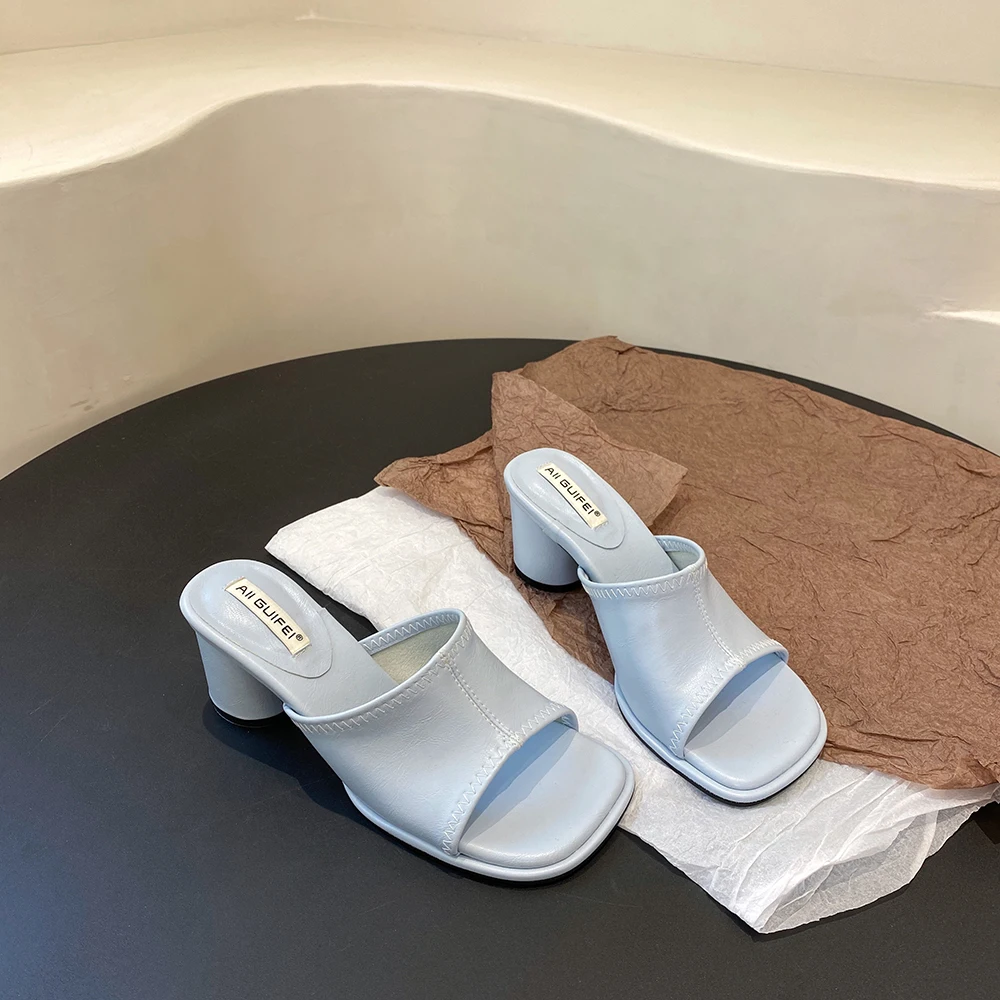 LBSFY - Fashion Women Sandals Slides Slippers Open Toe Summer Dress Shoes Woman Size 35-40 Blue Black White Zebra Color Round High Heels