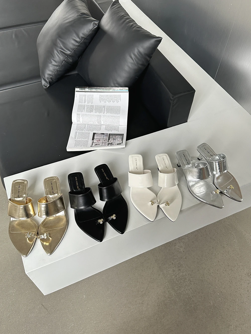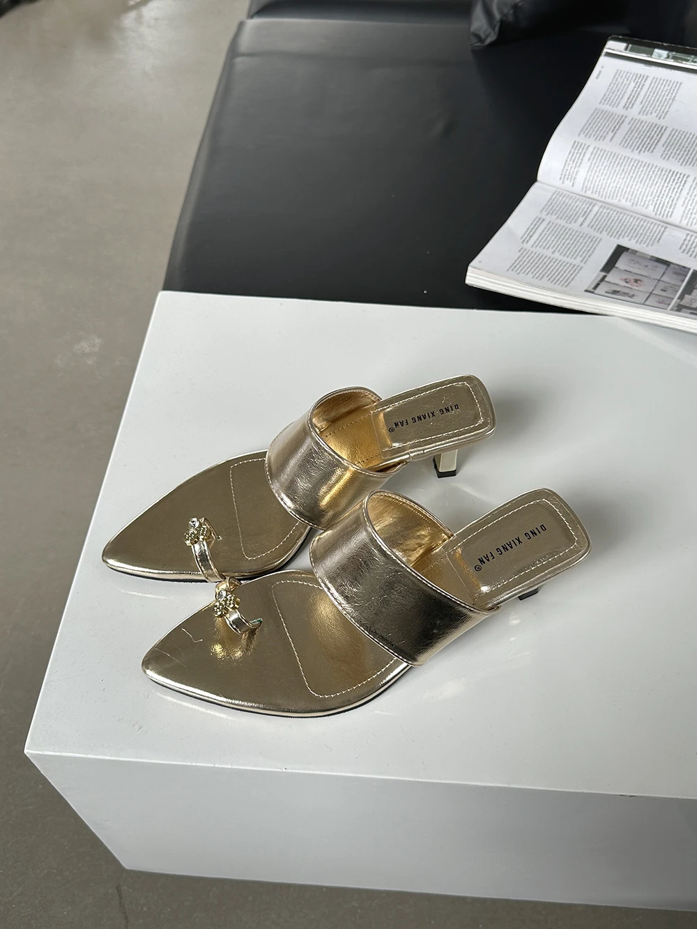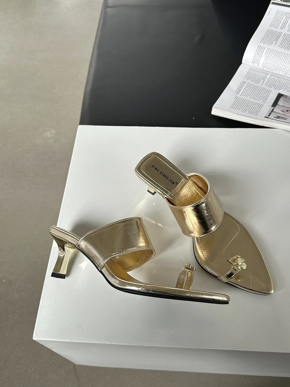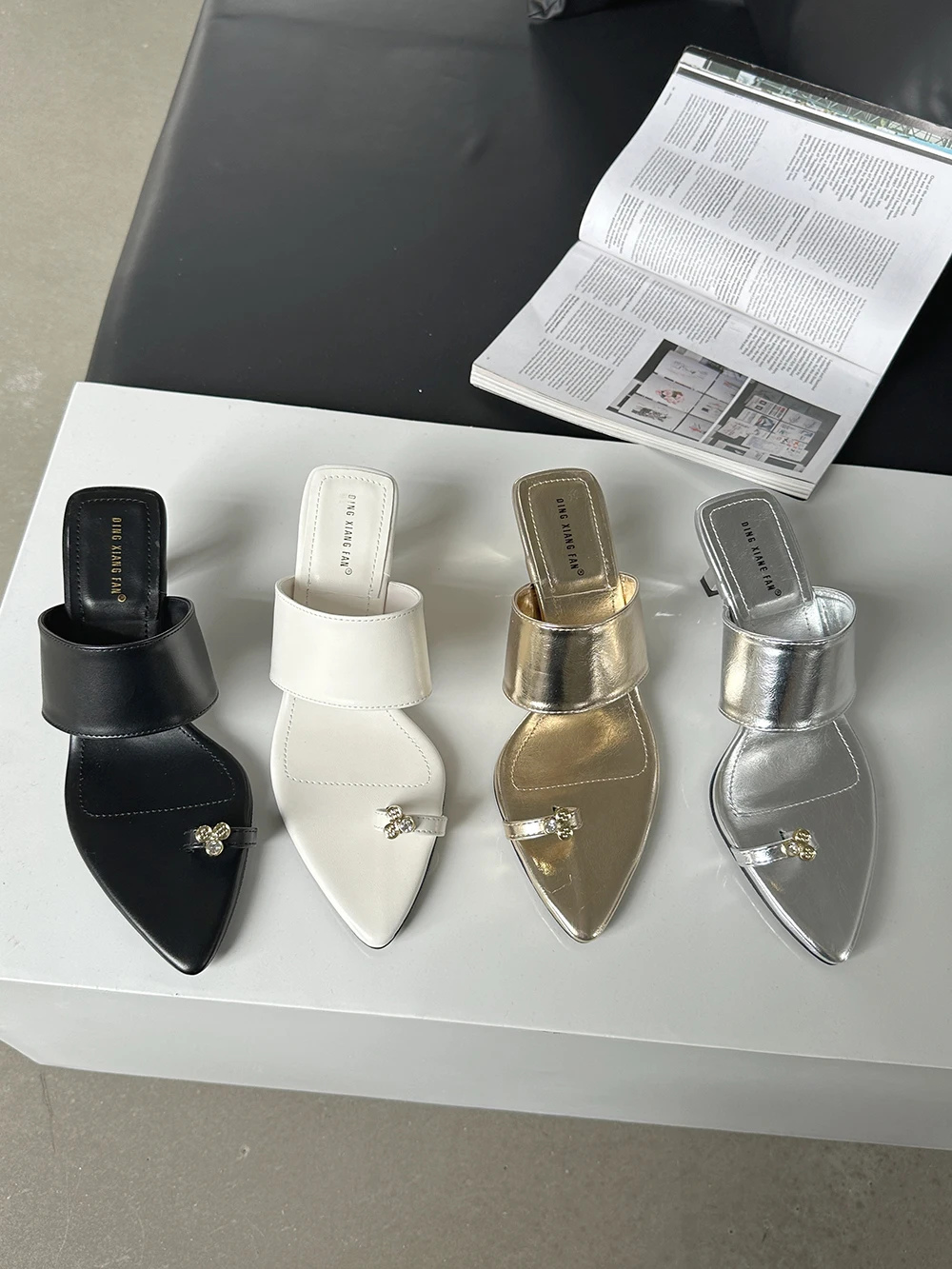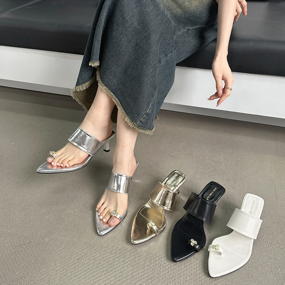 LBSFY - Fashion Women Slides Slipper Clip Toe Outside Mules Thin High Heels Black Gold Silver White Summer Dress Party Pumps Size 35-40