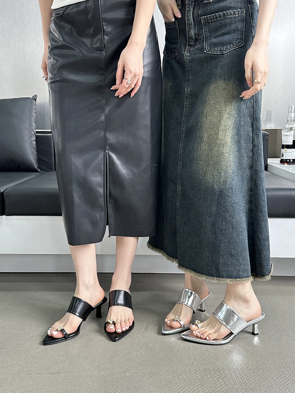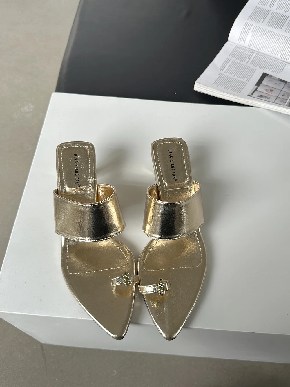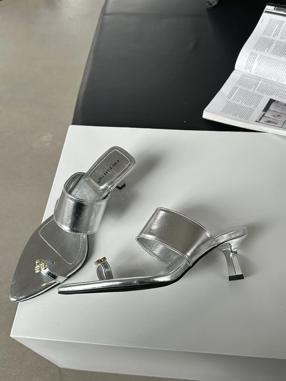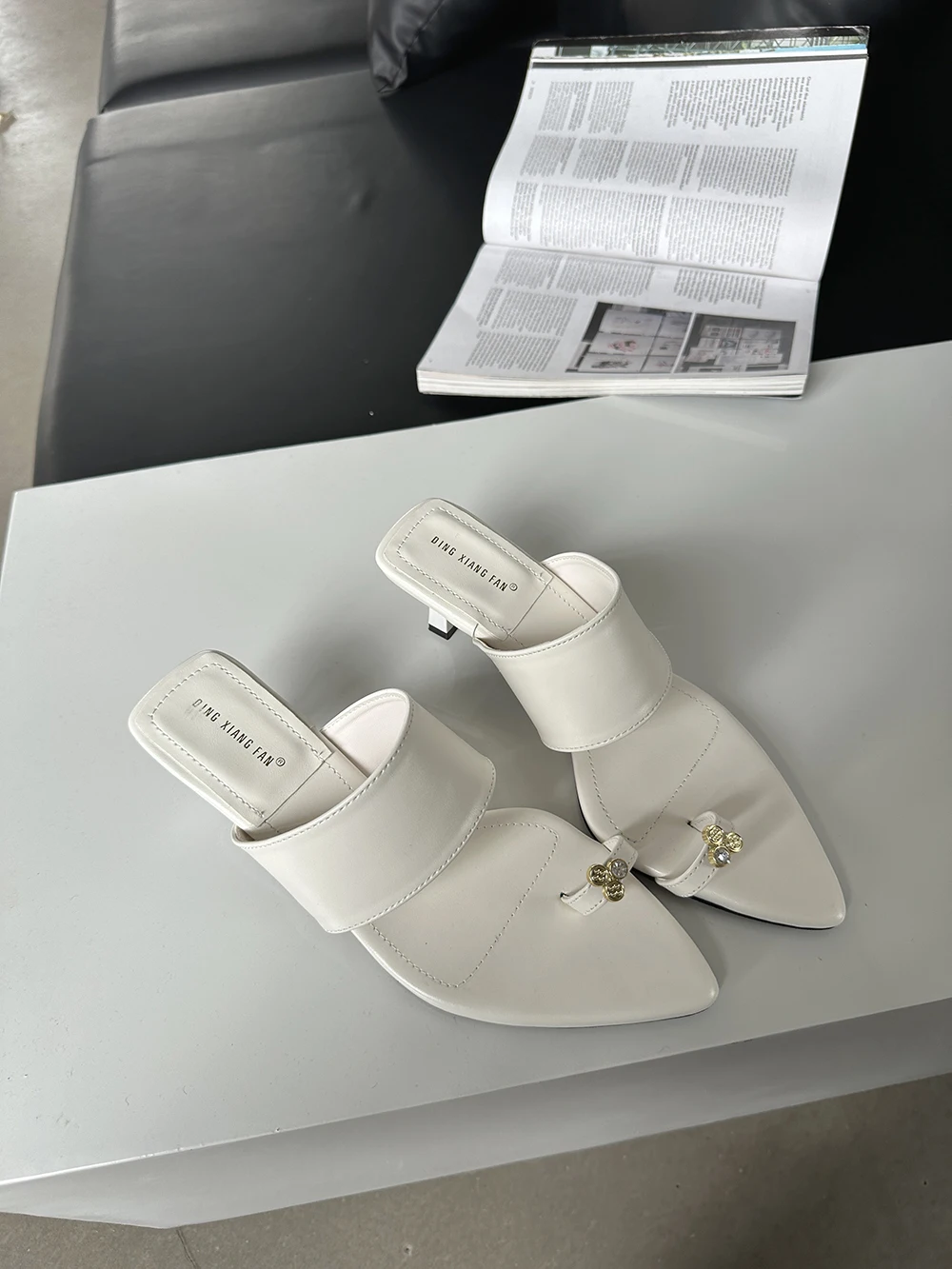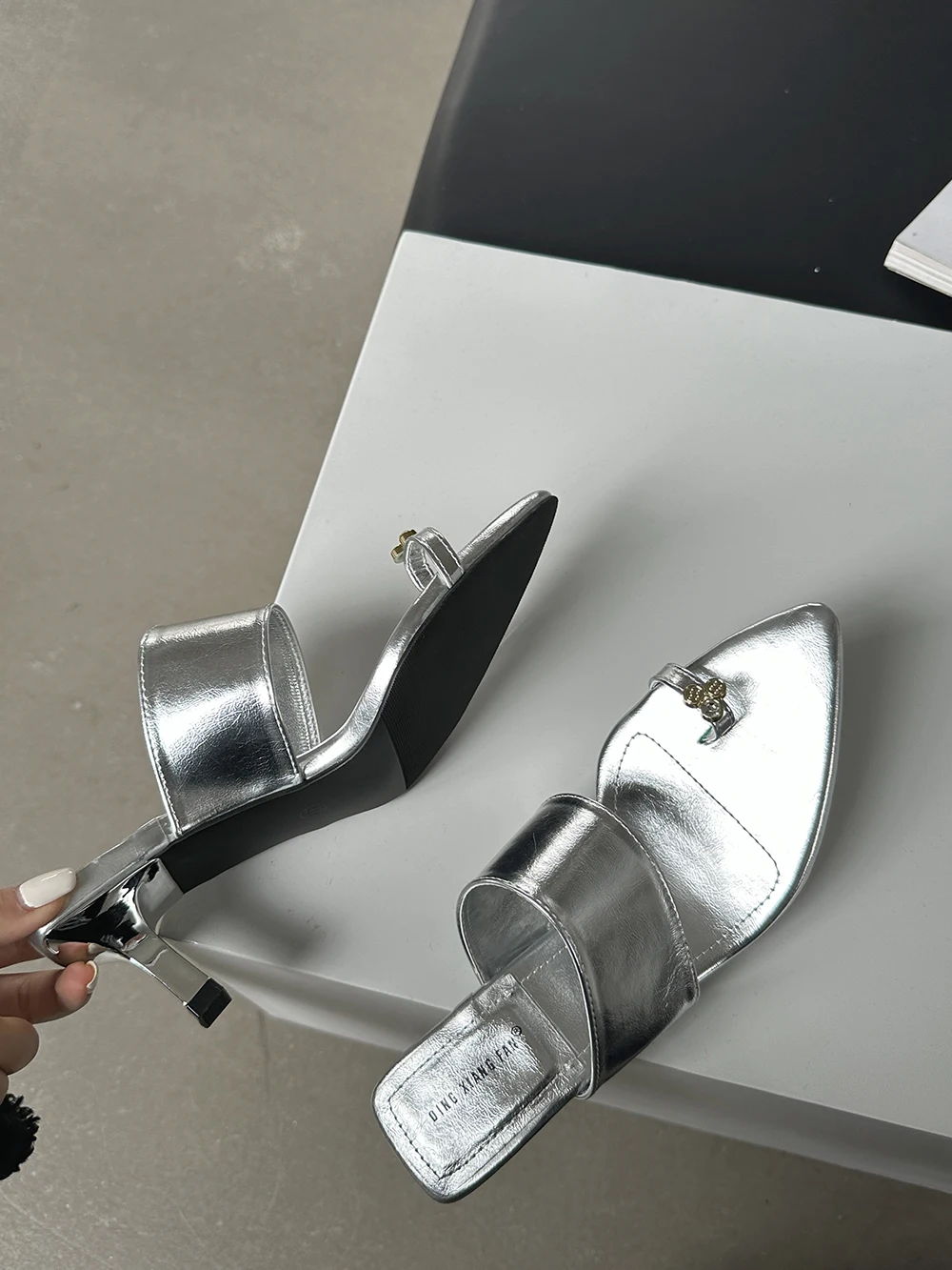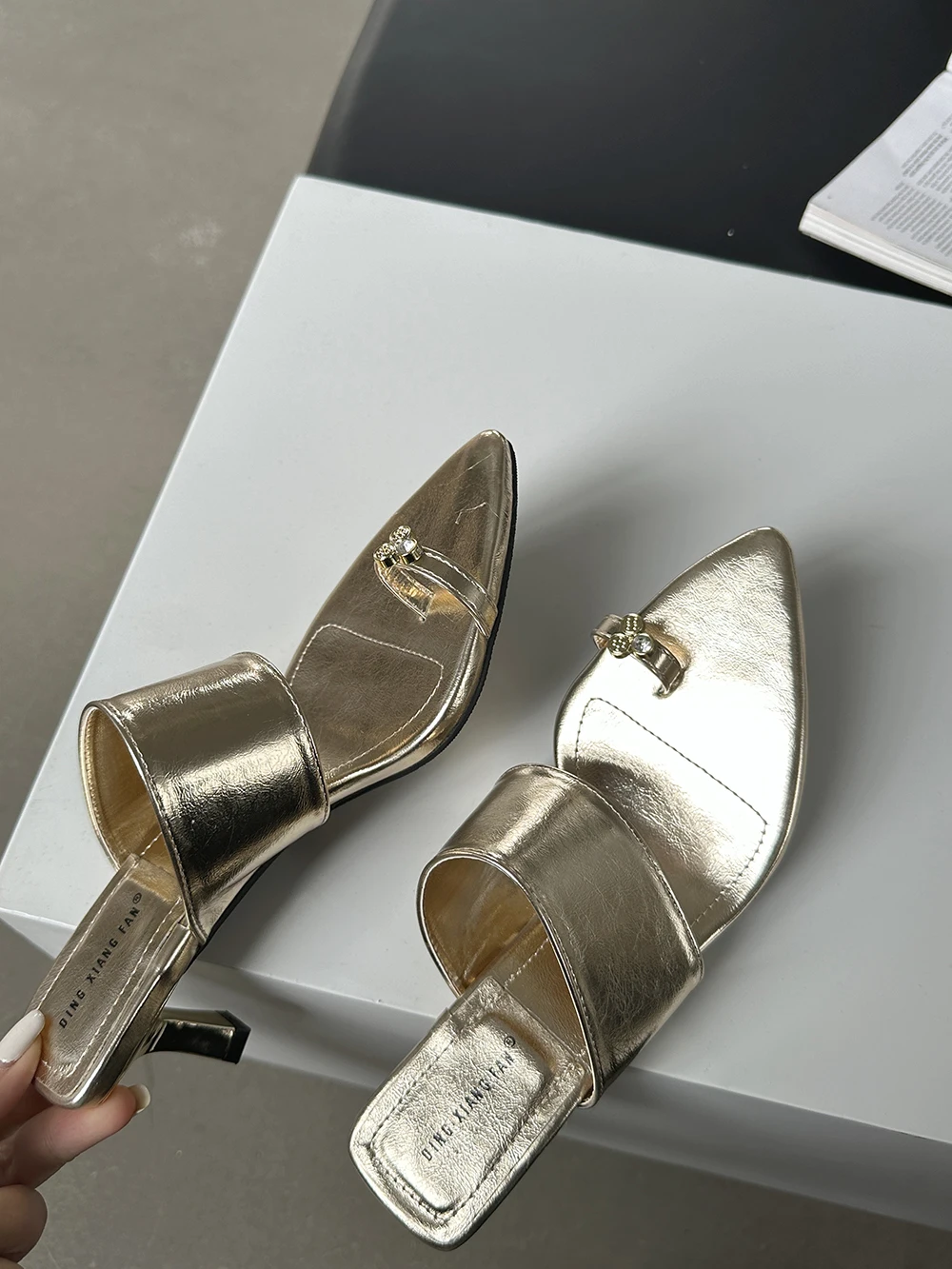 LBSFY - Fashion Women Slides Slipper Clip Toe Outside Mules Thin High Heels Black Gold Silver White Summer Dress Party Pumps Size 35-40