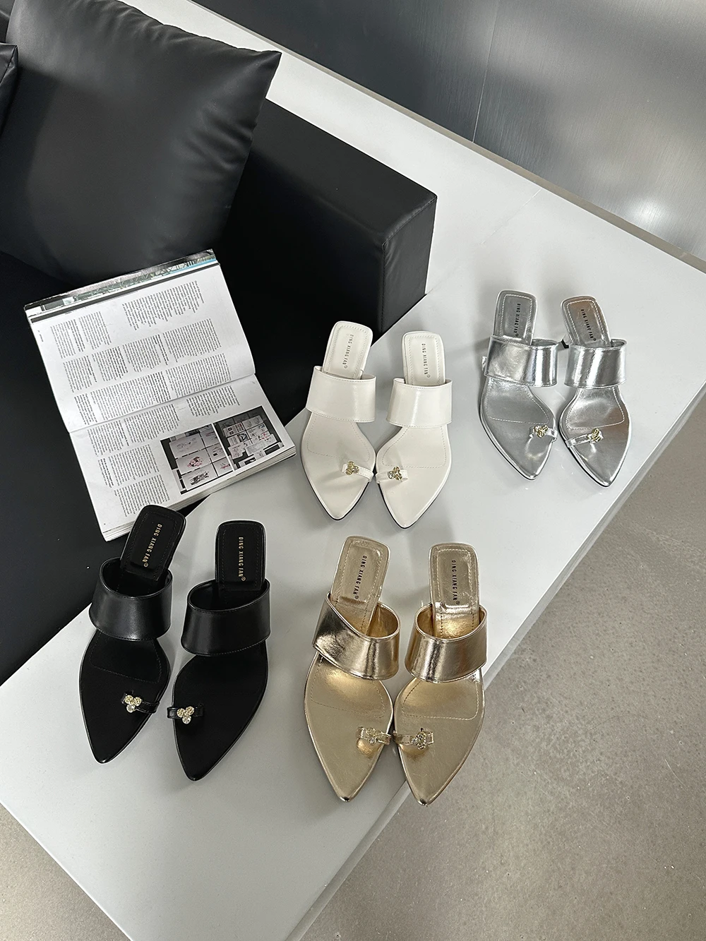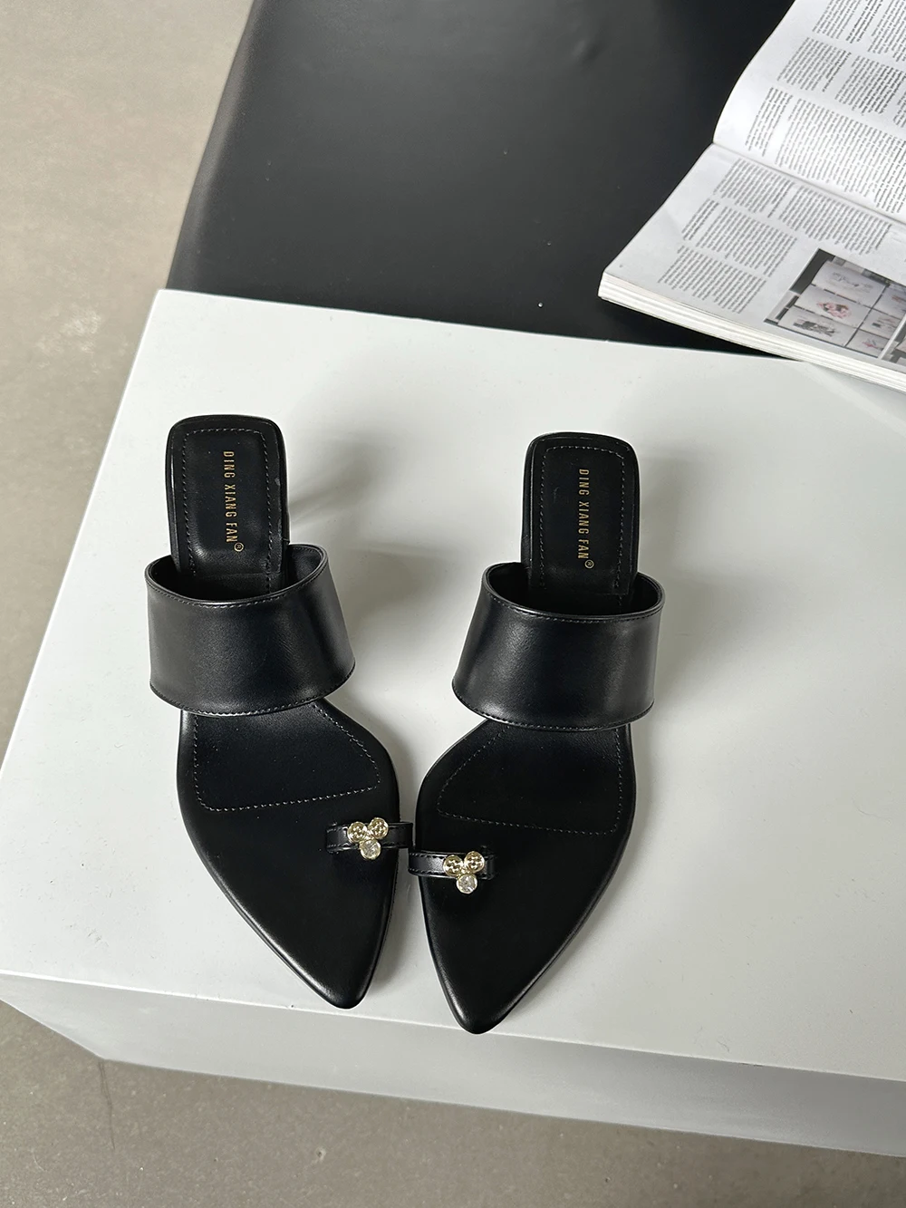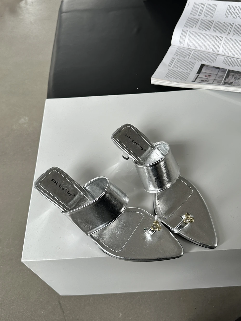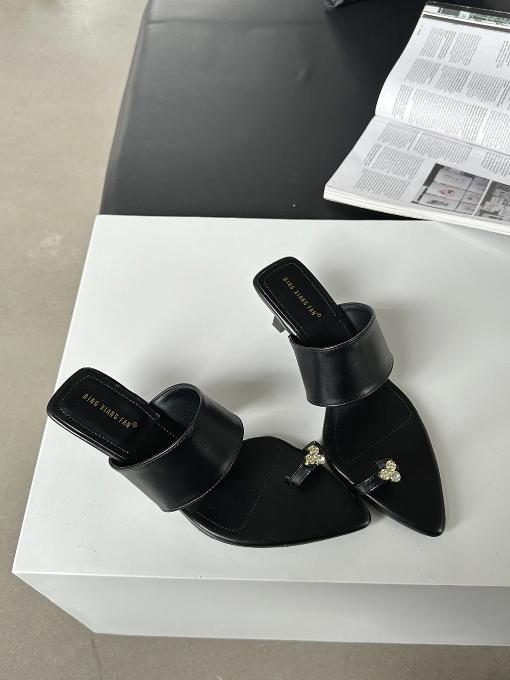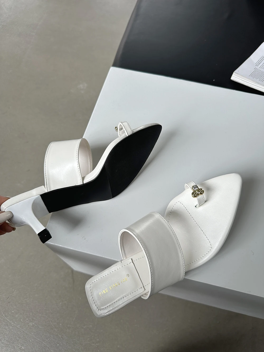 LBSFY - Fashion Women Slides Slipper Clip Toe Outside Mules Thin High Heels Black Gold Silver White Summer Dress Party Pumps Size 35-40
