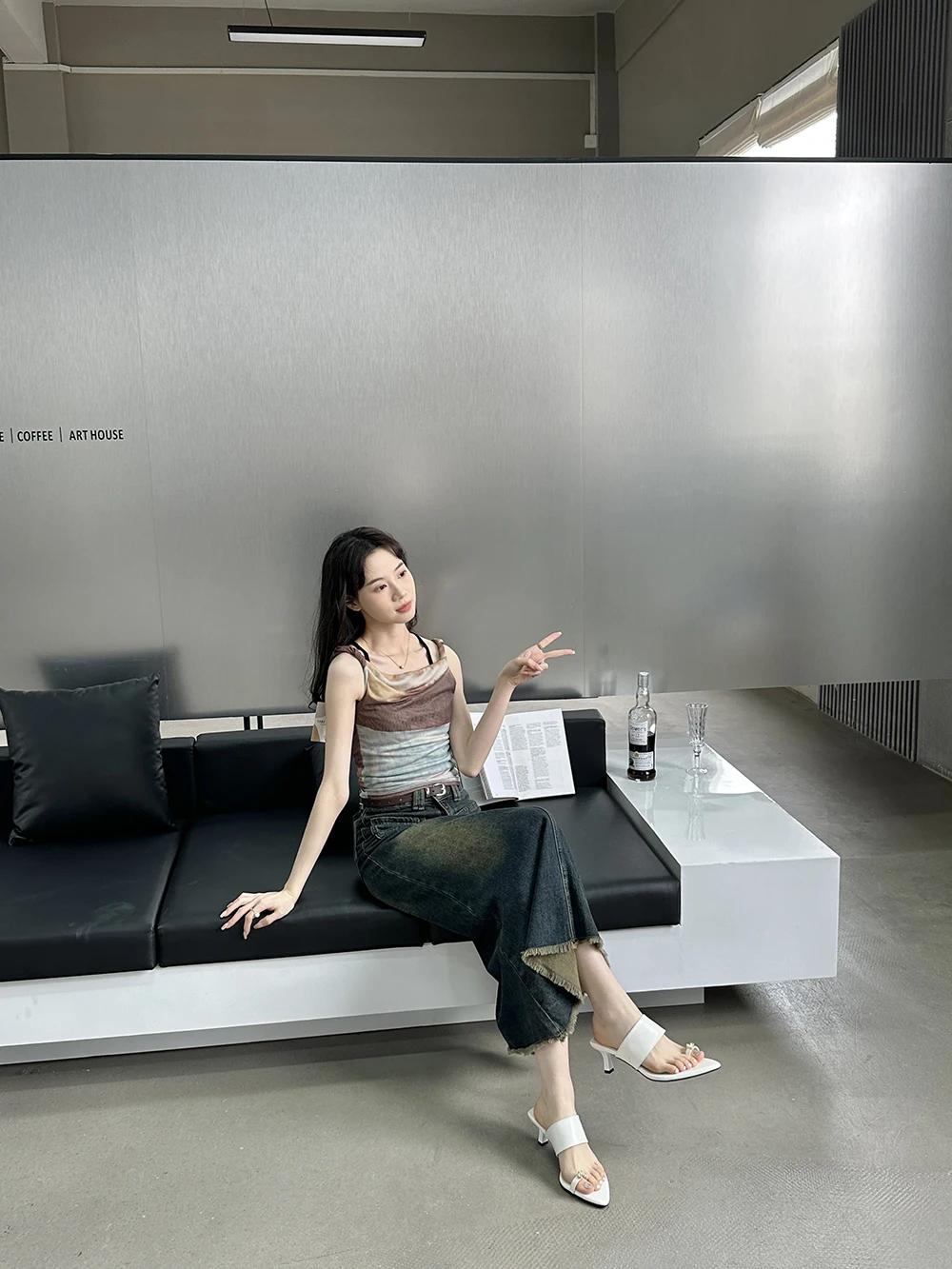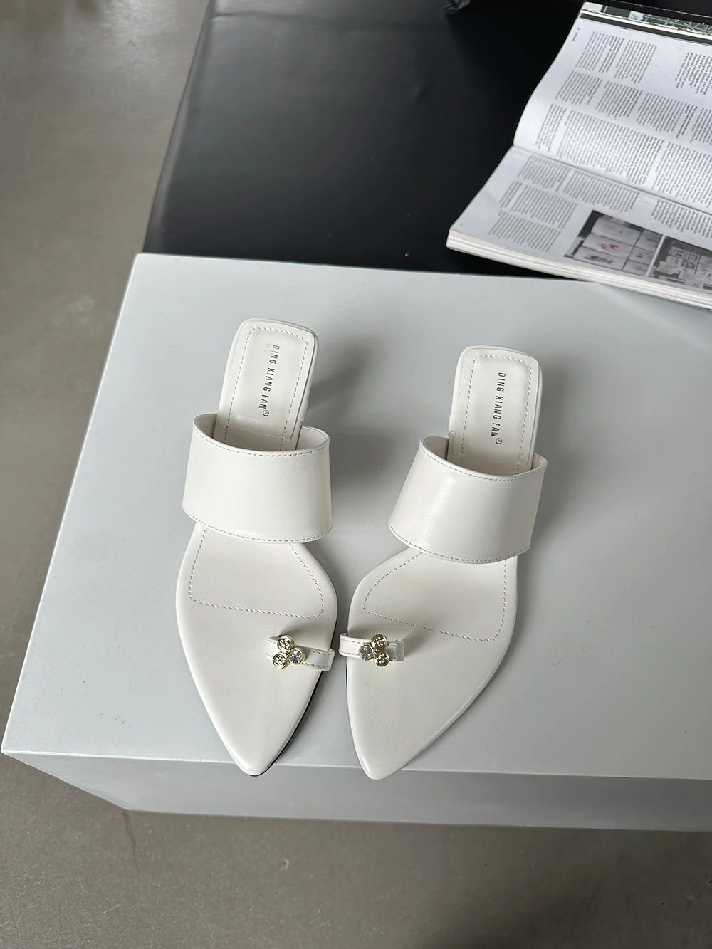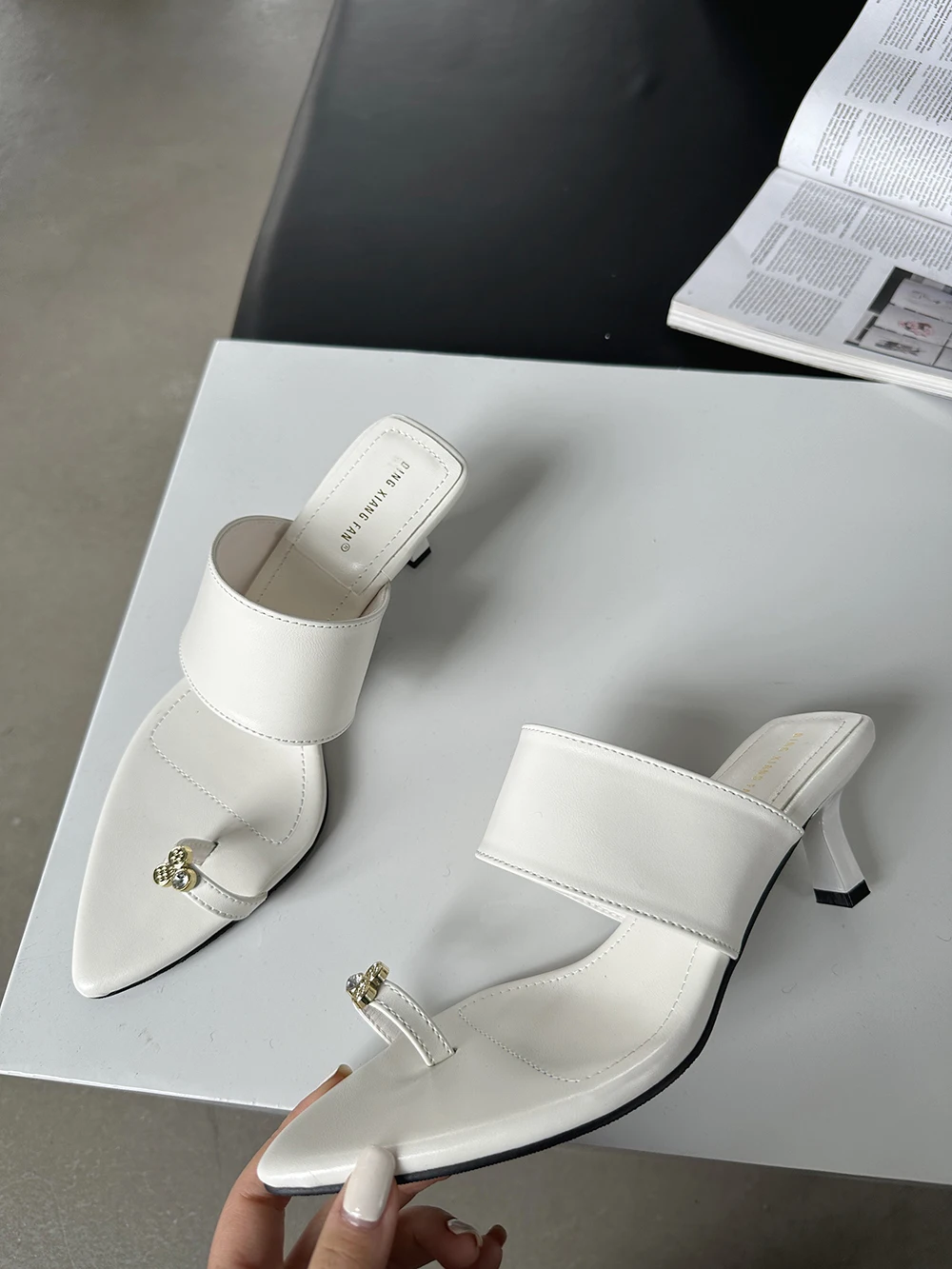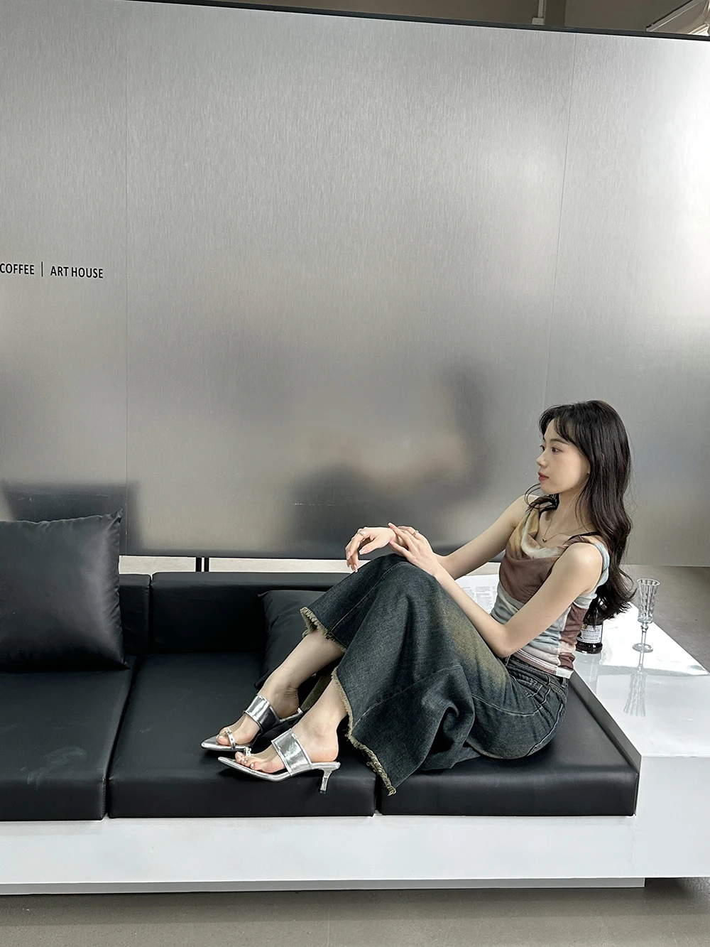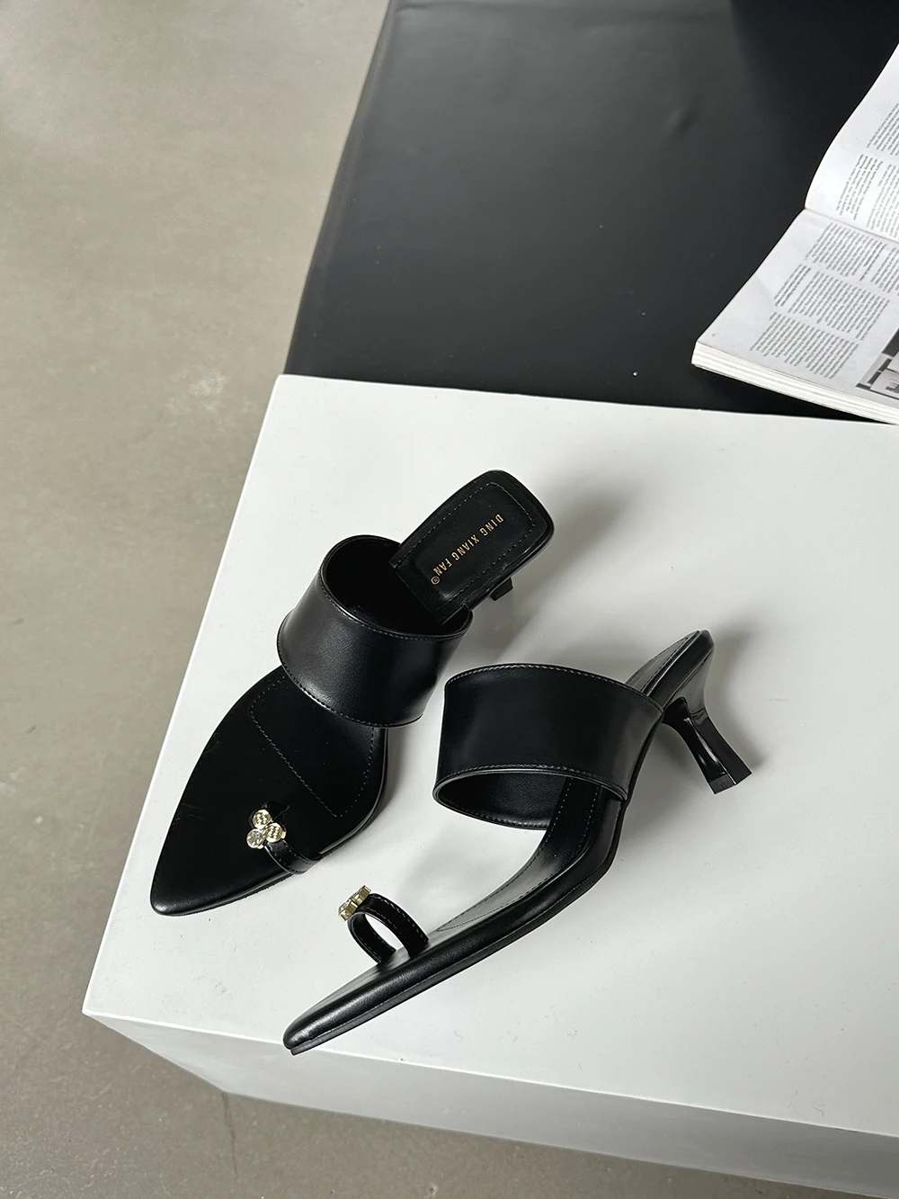 LBSFY - Fashion Women Slides Slipper Clip Toe Outside Mules Thin High Heels Black Gold Silver White Summer Dress Party Pumps Size 35-40