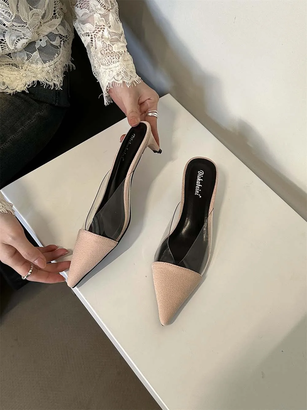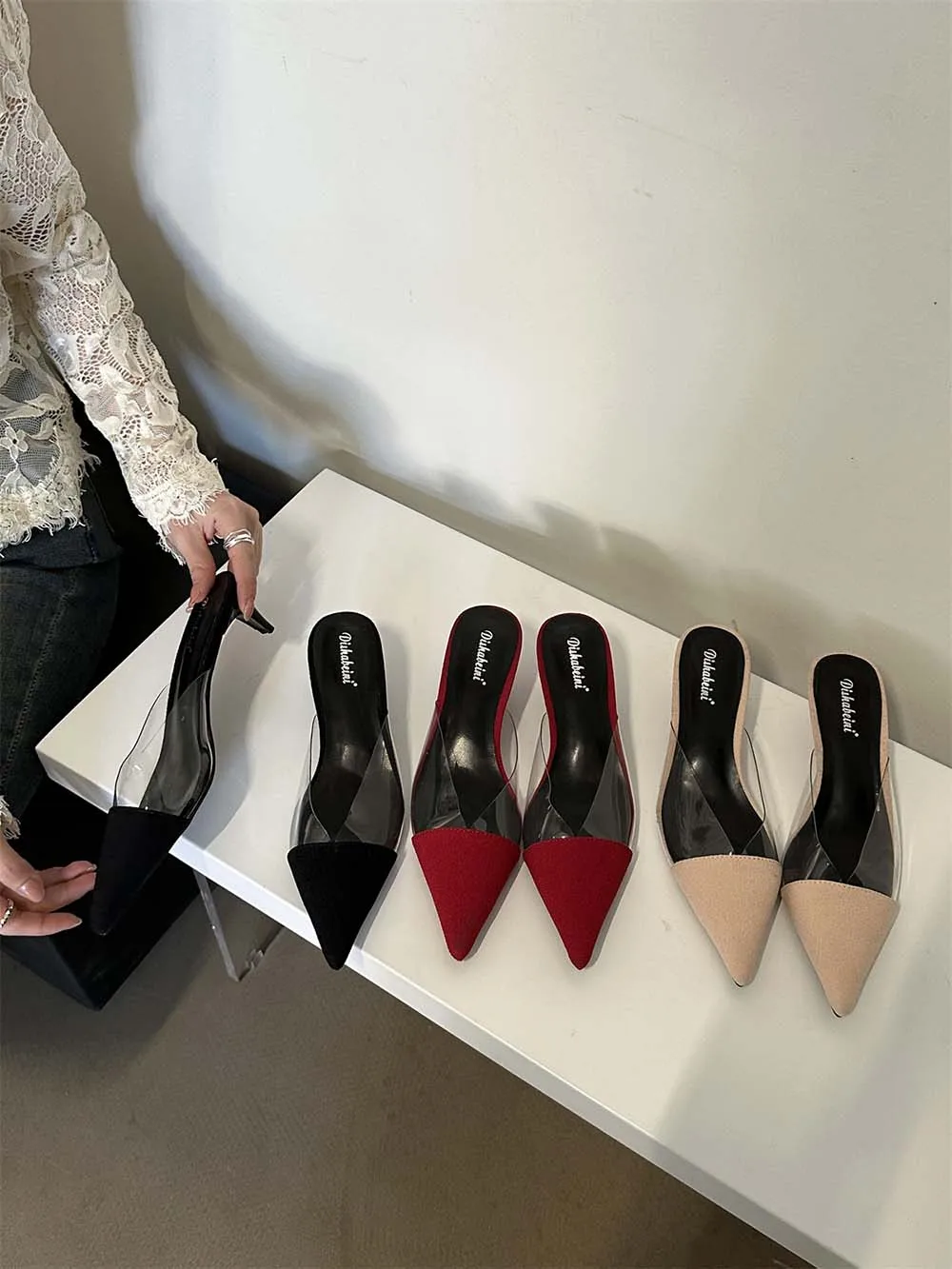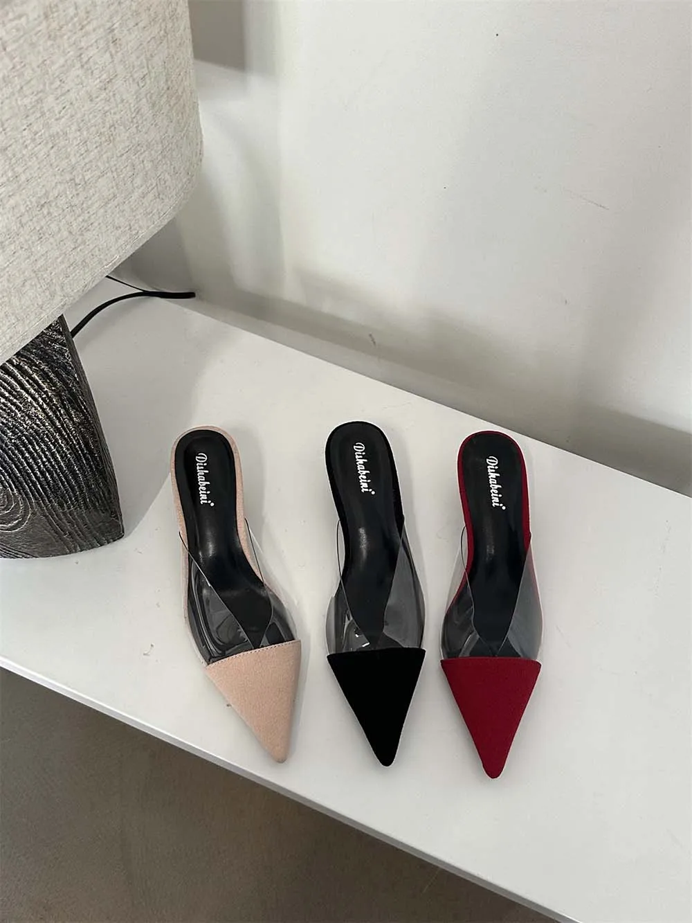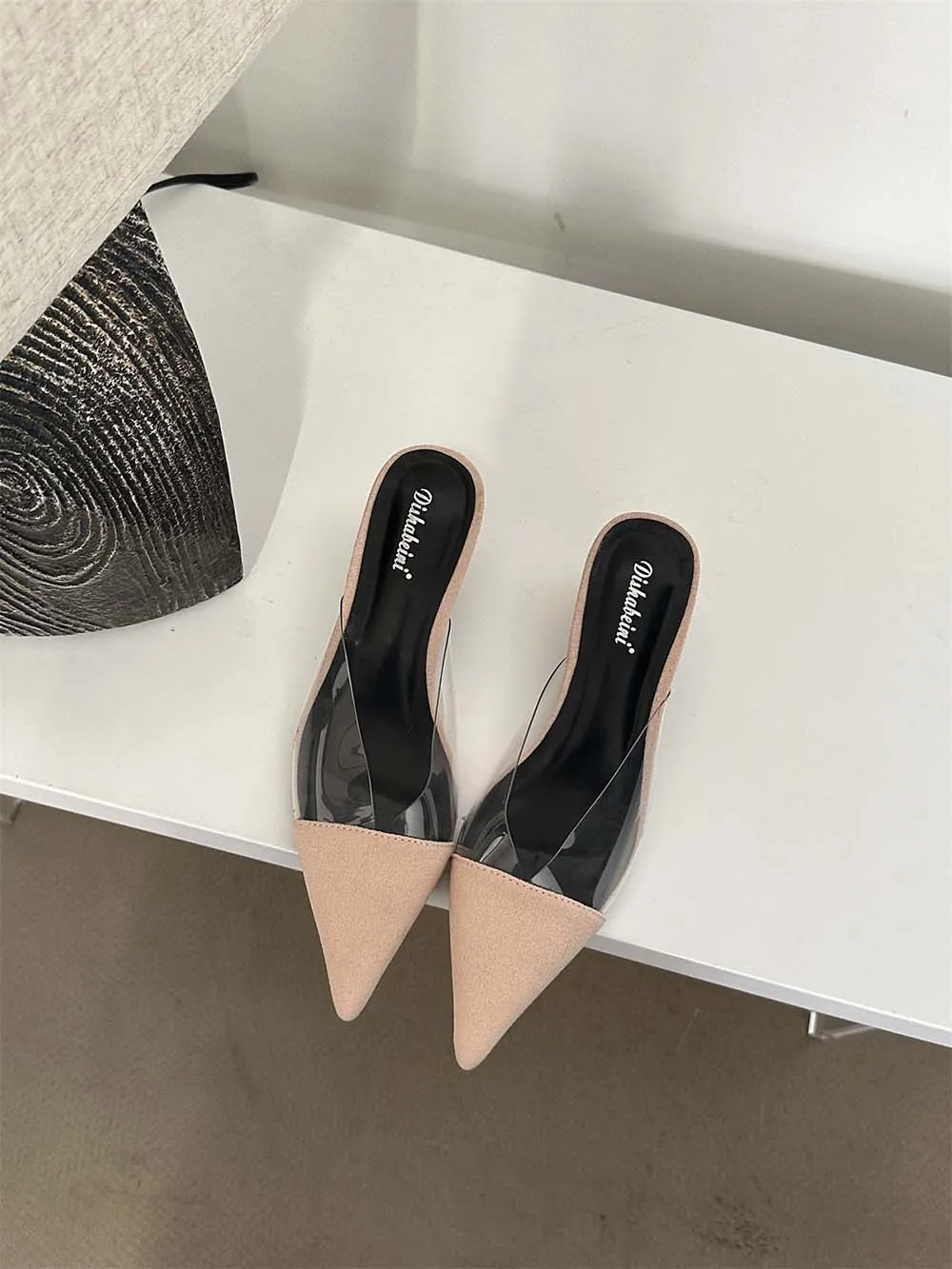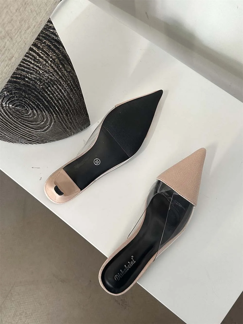 LBSFY - Fashion Women Slides Slippers Mules Shoes Pointed Toe Casual Mules Shoes Thin Low Heels Office Party Pumps Dress Shoes Woman 39