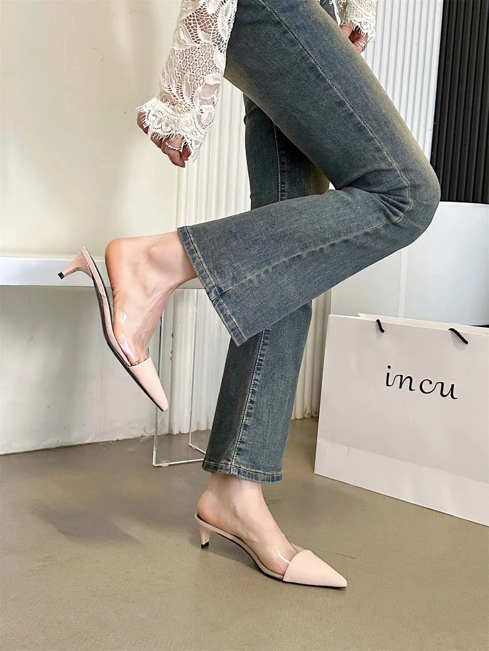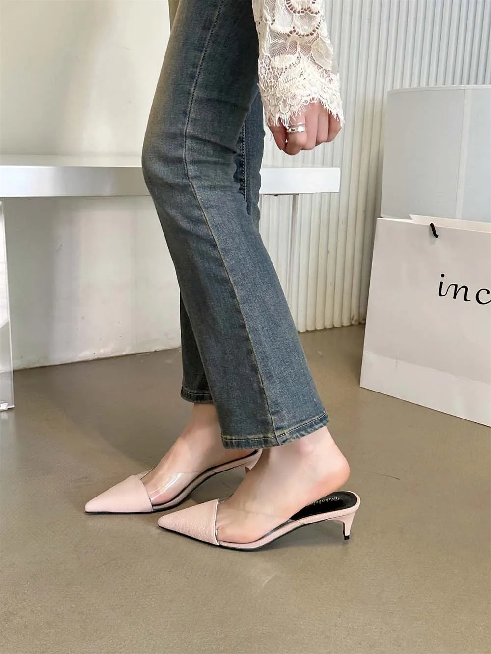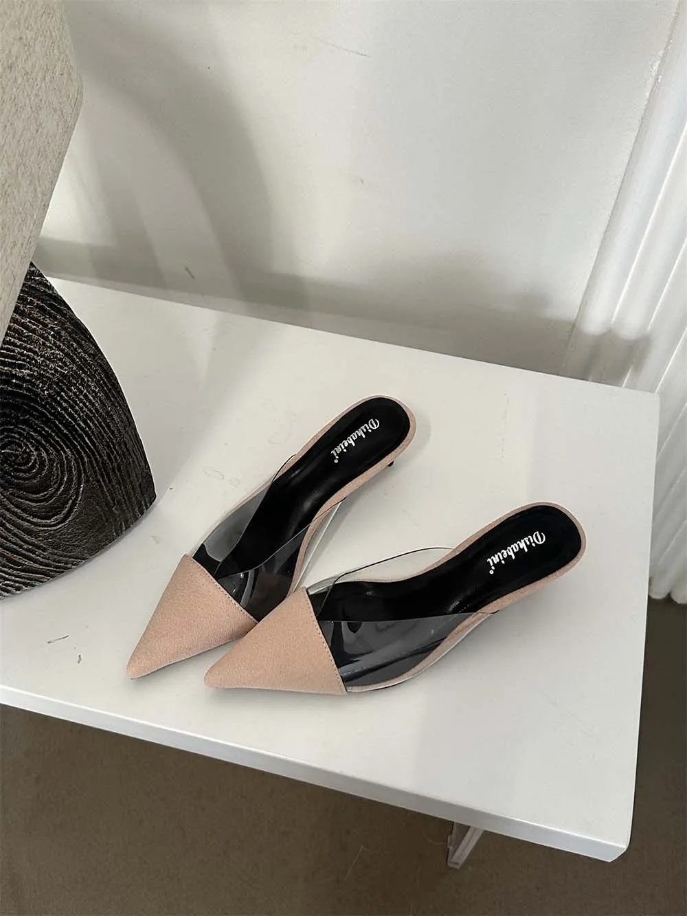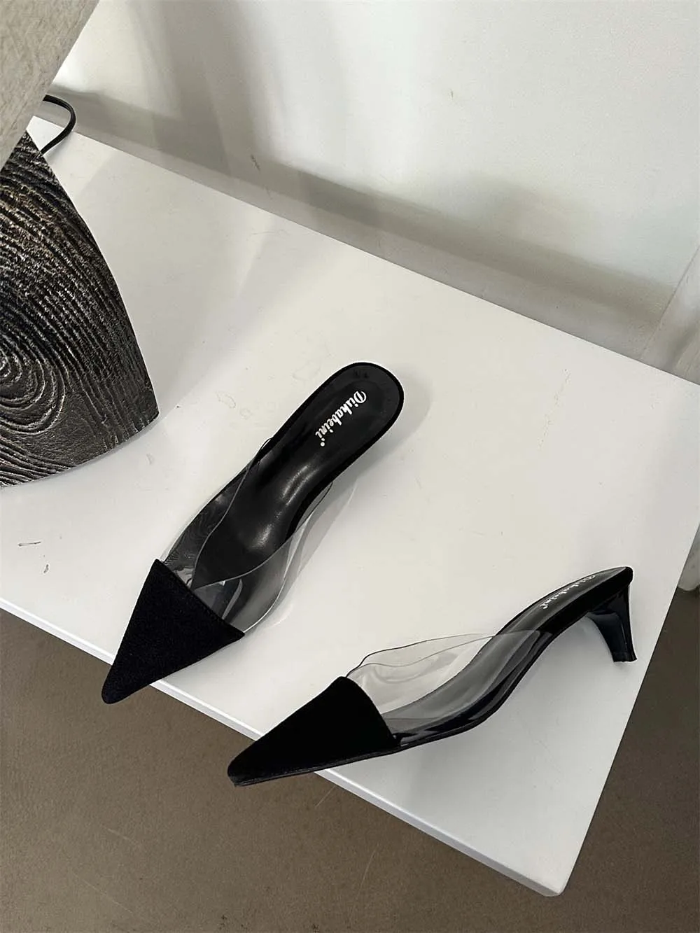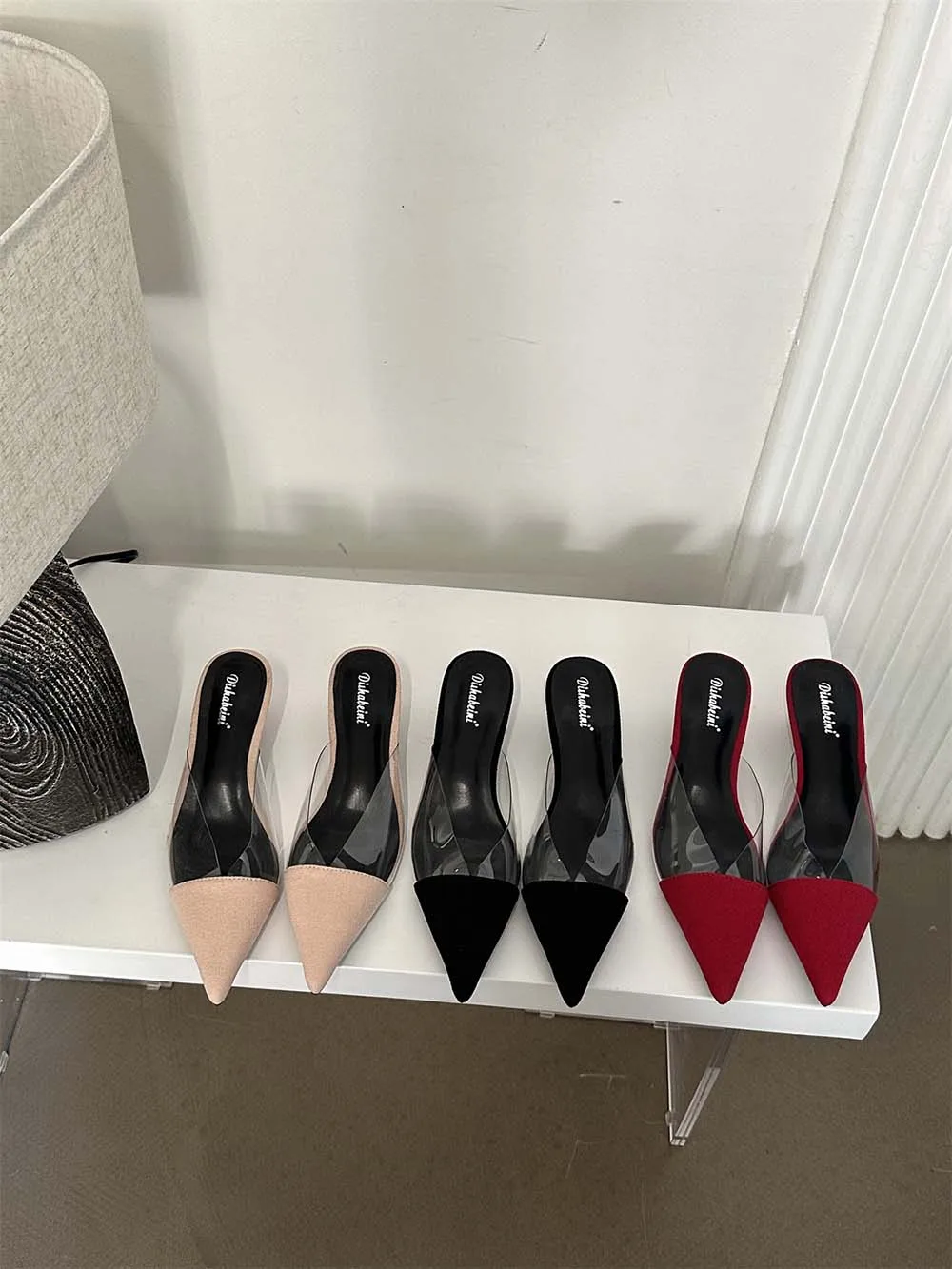 LBSFY - Fashion Women Slides Slippers Mules Shoes Pointed Toe Casual Mules Shoes Thin Low Heels Office Party Pumps Dress Shoes Woman 39