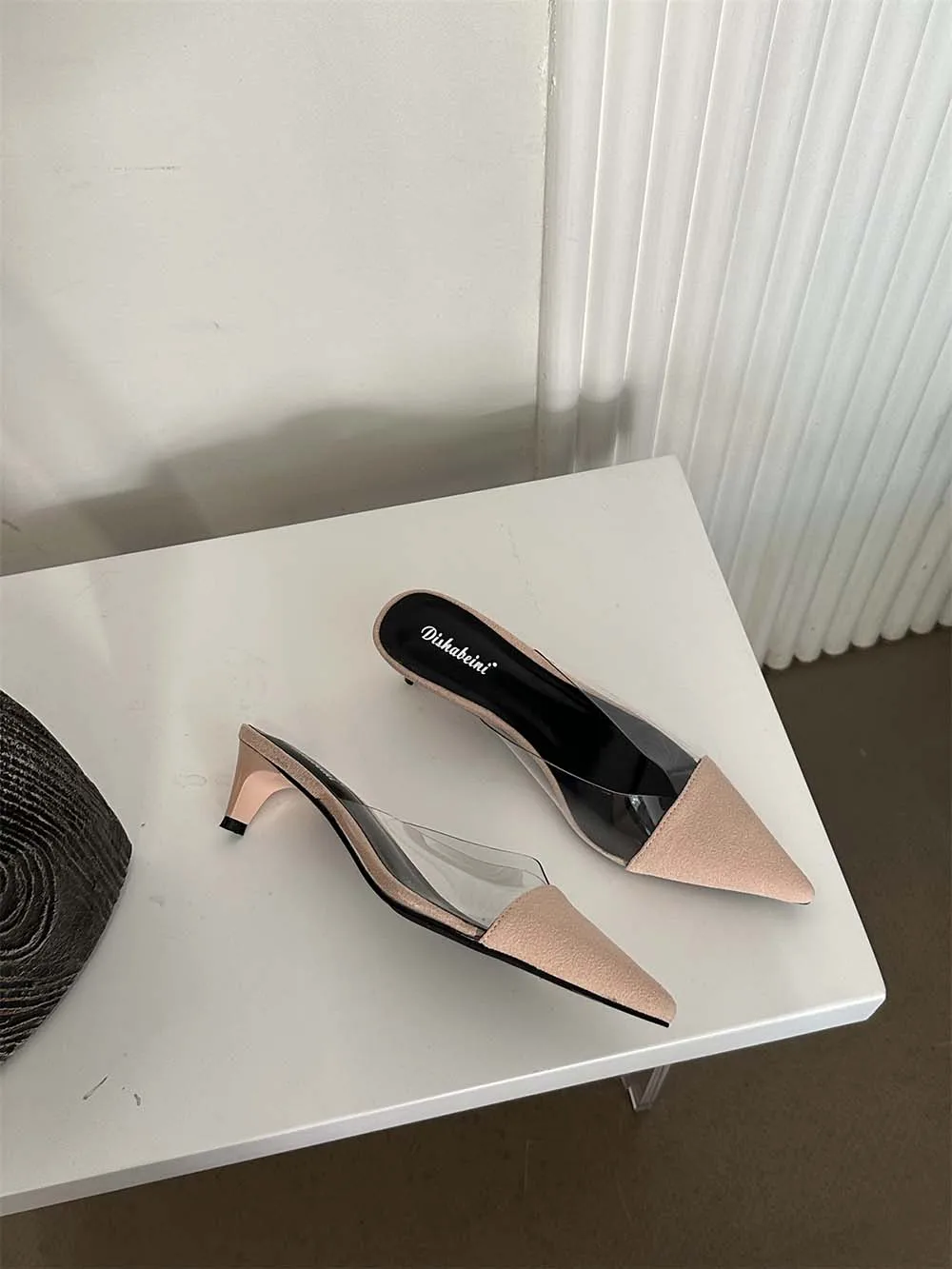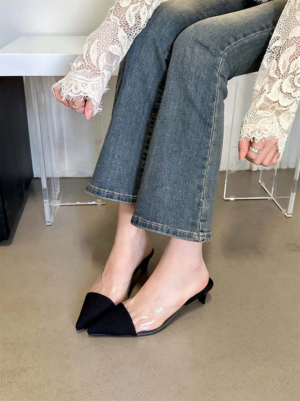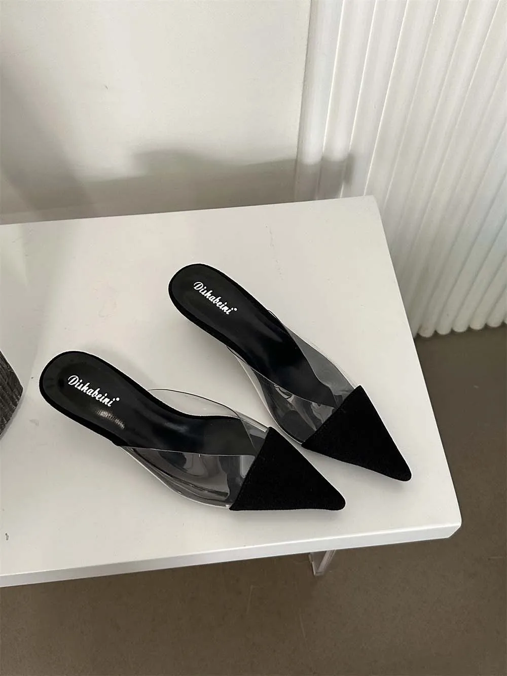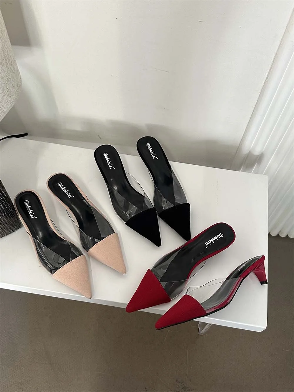 LBSFY - Fashion Women Slides Slippers Mules Shoes Pointed Toe Casual Mules Shoes Thin Low Heels Office Party Pumps Dress Shoes Woman 39