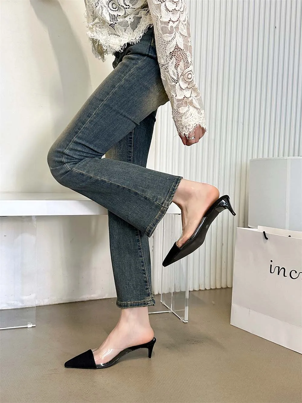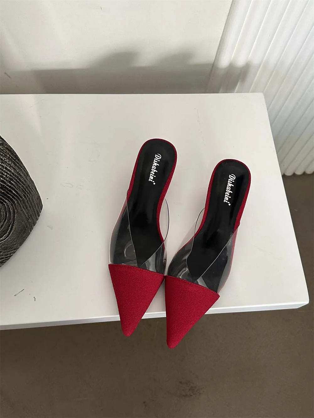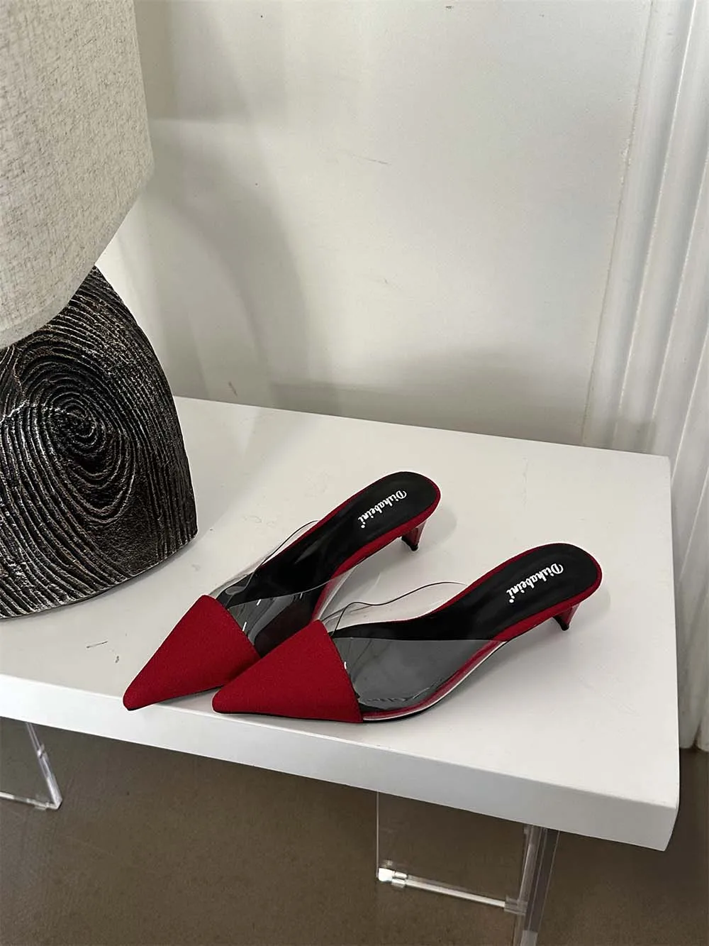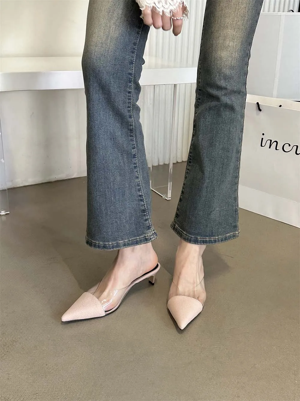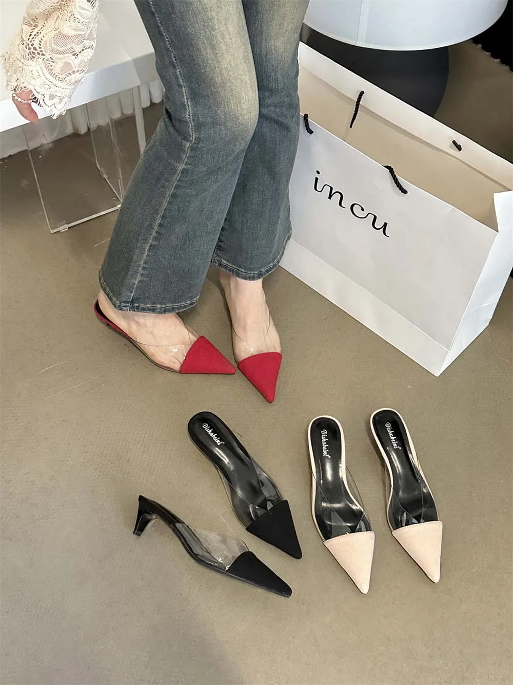 LBSFY - Fashion Women Slides Slippers Mules Shoes Pointed Toe Casual Mules Shoes Thin Low Heels Office Party Pumps Dress Shoes Woman 39