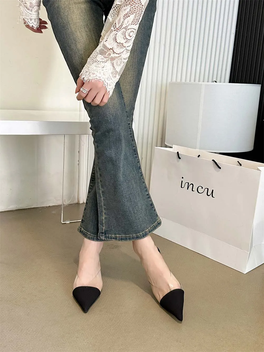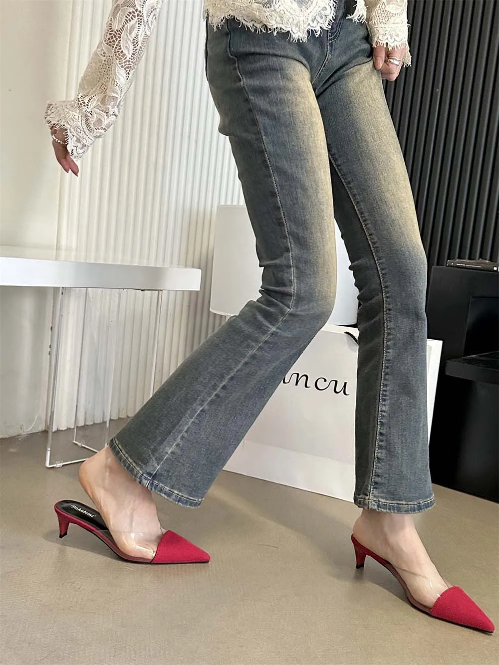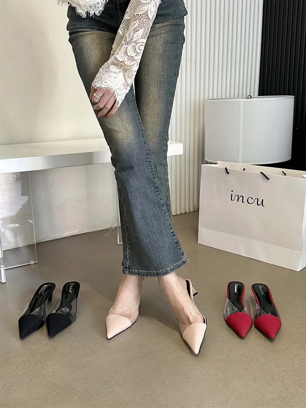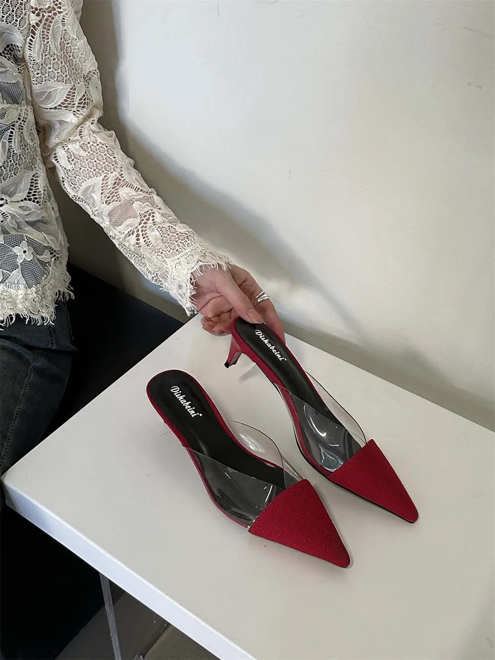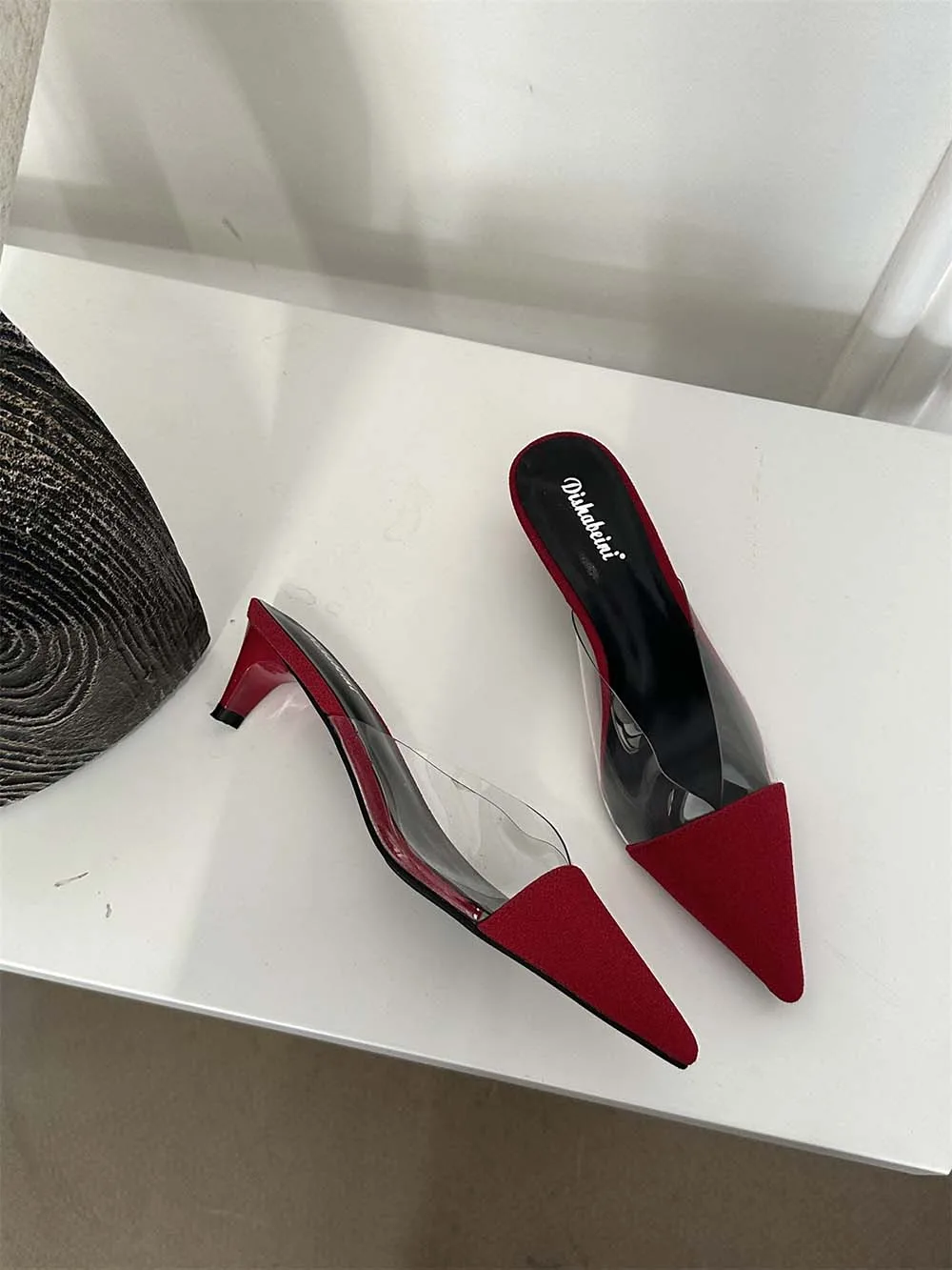 LBSFY - Fashion Women Slides Slippers Mules Shoes Pointed Toe Casual Mules Shoes Thin Low Heels Office Party Pumps Dress Shoes Woman 39