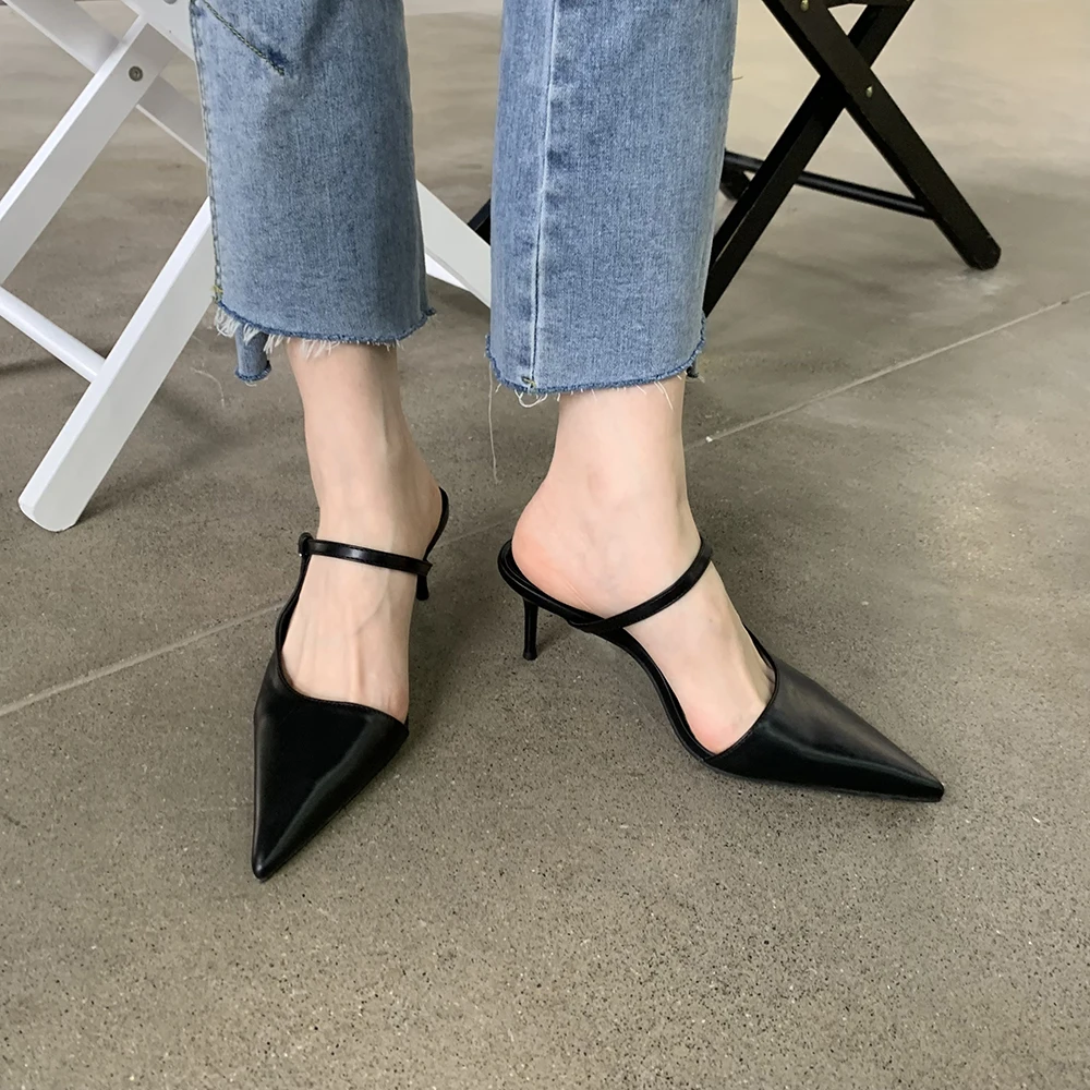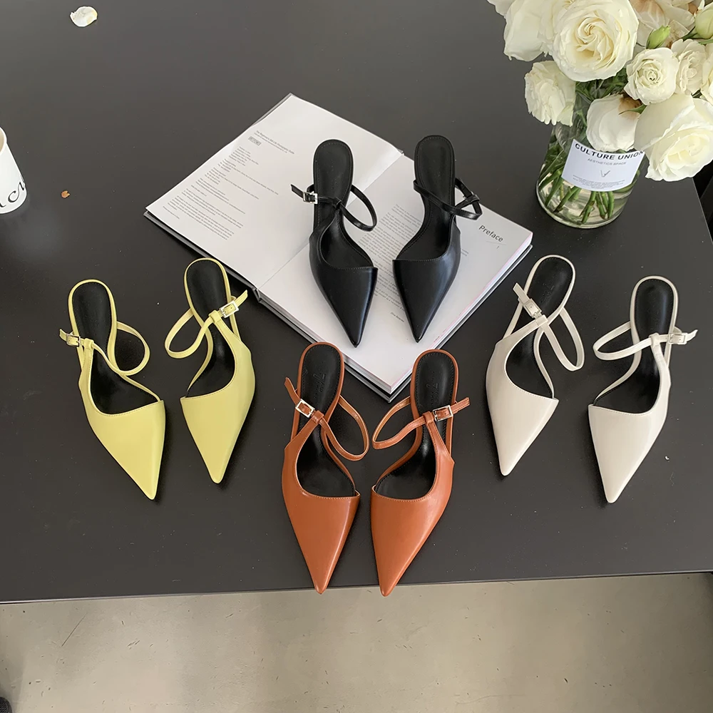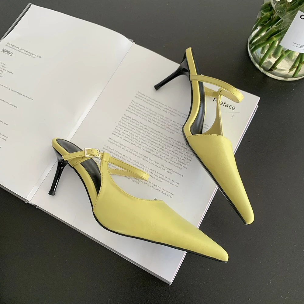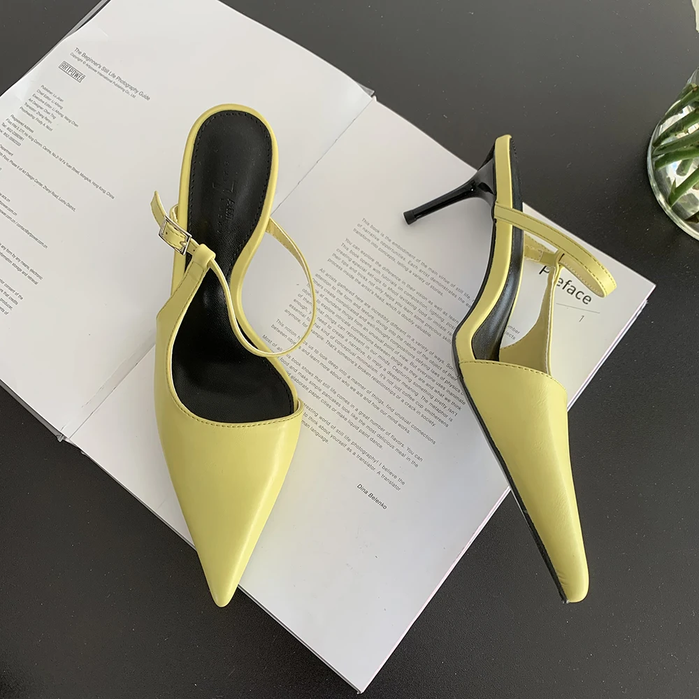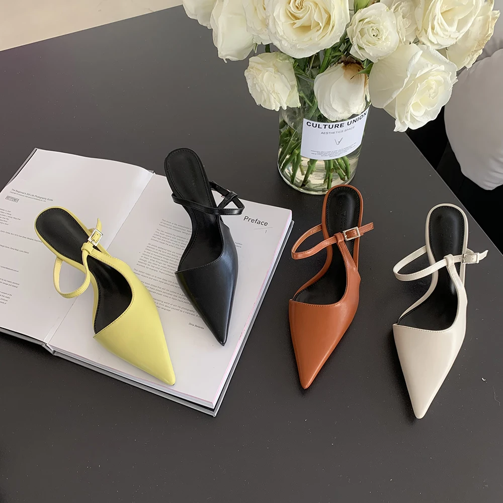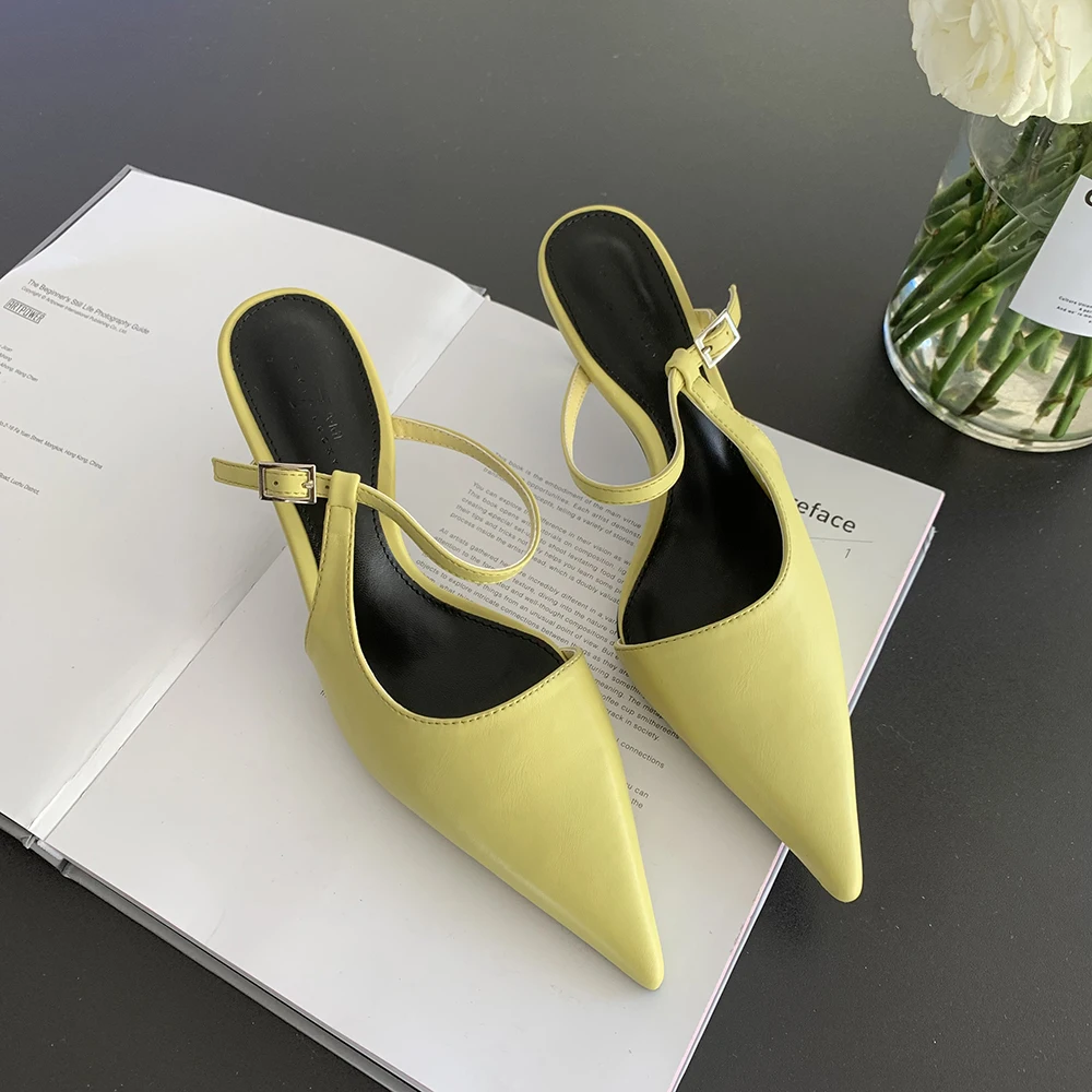 LBSFY - Fashion Women Slides Slippers Pointed Toe Black/White/Brown/Yellow Sexy Dress Shoes Thin High Heels Slip On Party Pumps Size 39