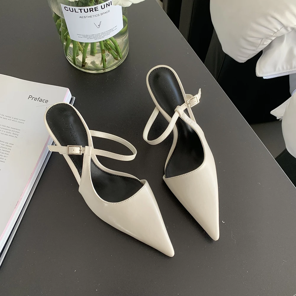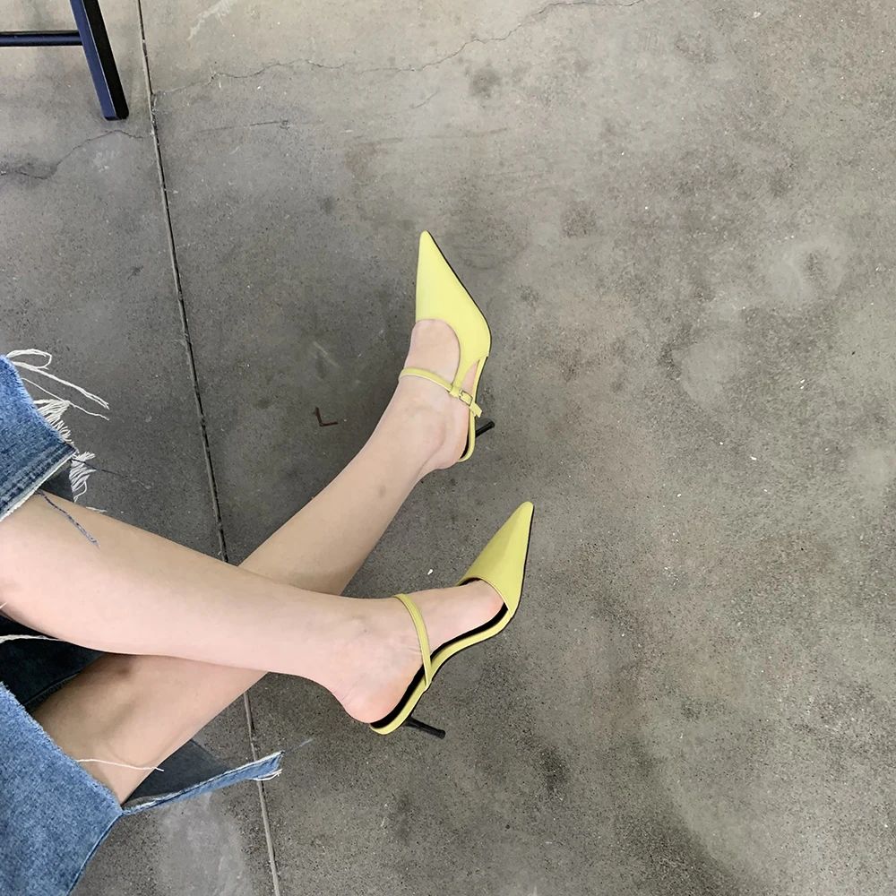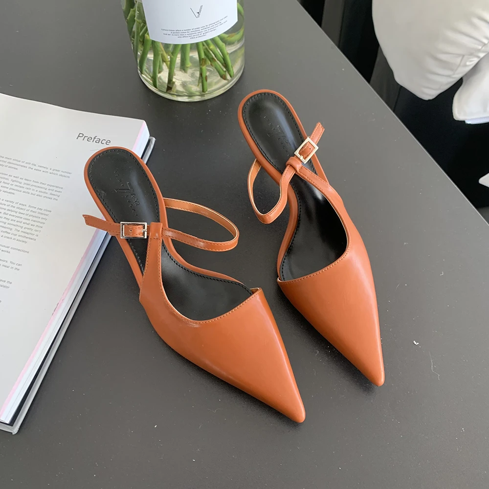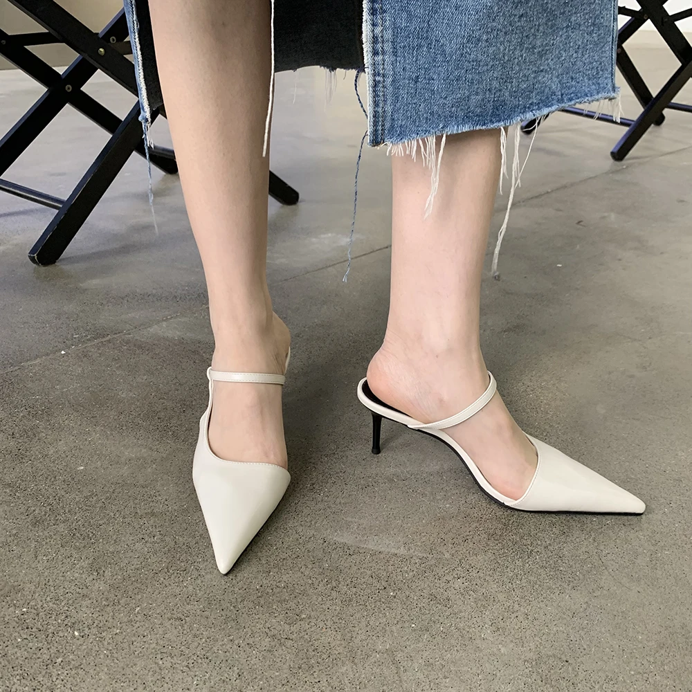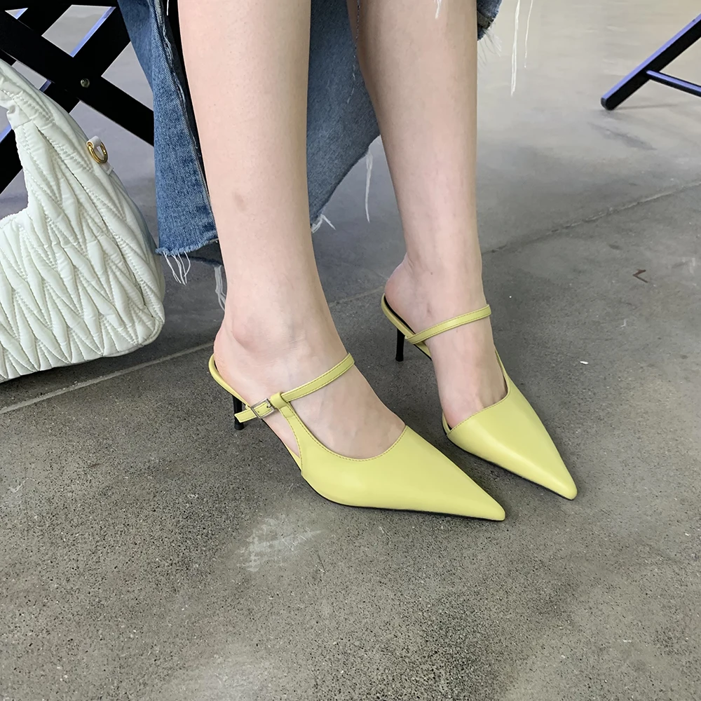 LBSFY - Fashion Women Slides Slippers Pointed Toe Black/White/Brown/Yellow Sexy Dress Shoes Thin High Heels Slip On Party Pumps Size 39