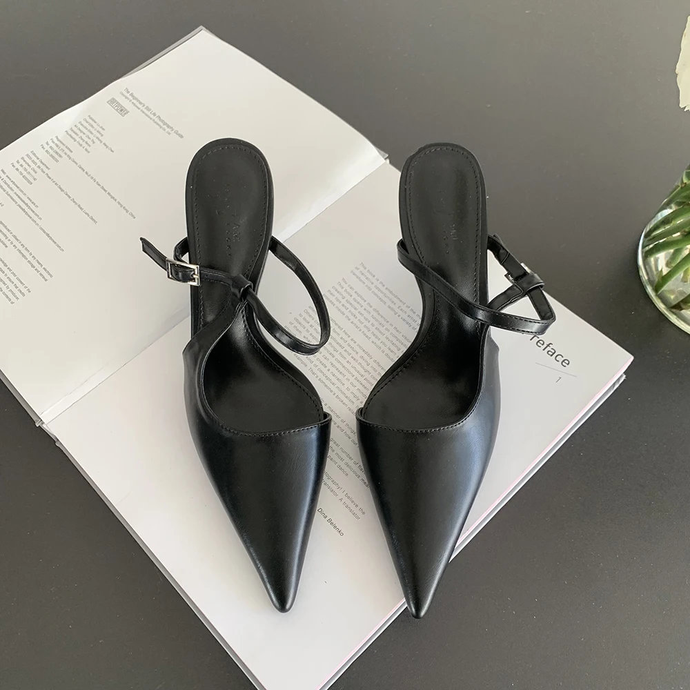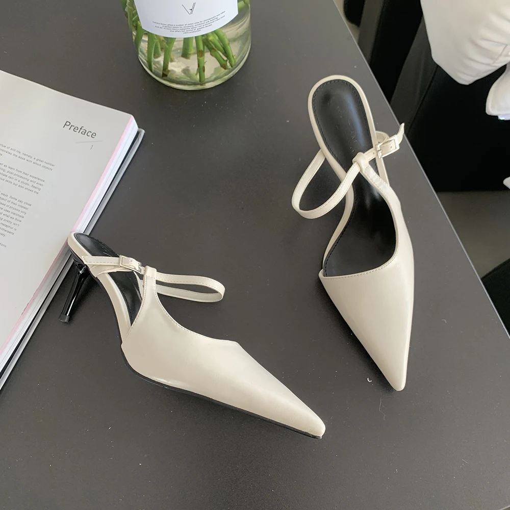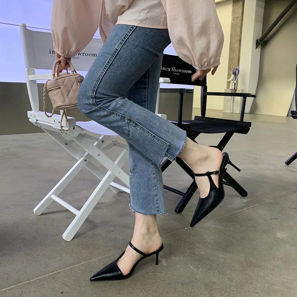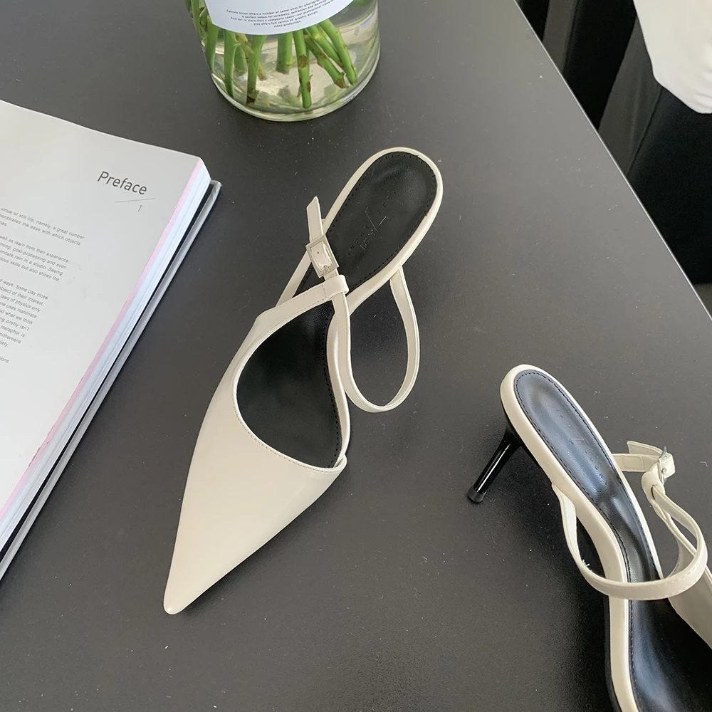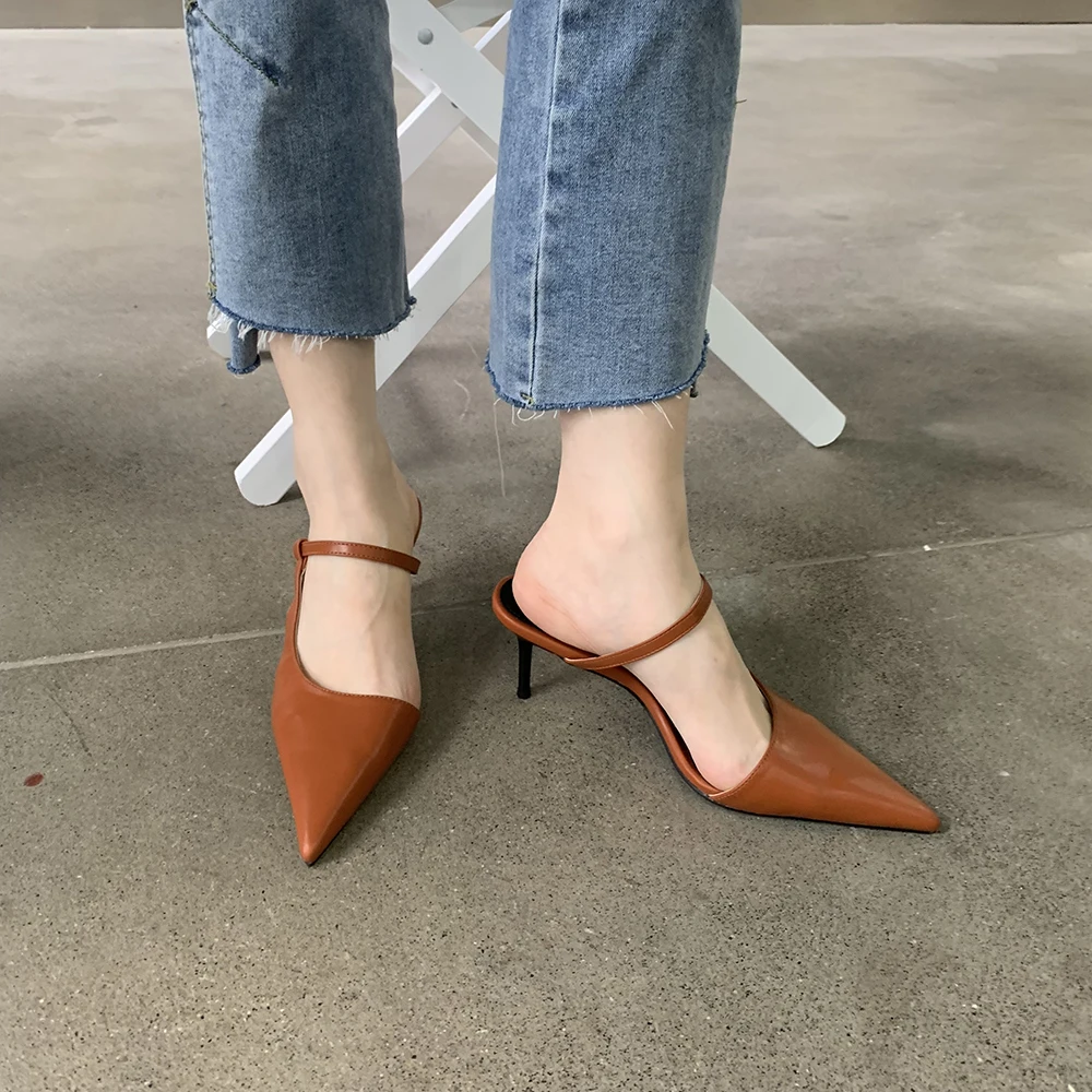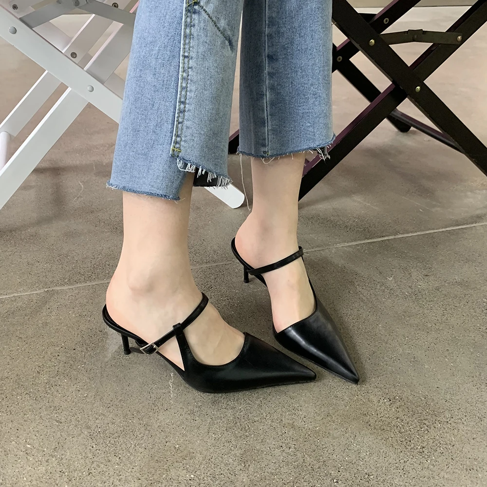 LBSFY - Fashion Women Slides Slippers Pointed Toe Black/White/Brown/Yellow Sexy Dress Shoes Thin High Heels Slip On Party Pumps Size 39