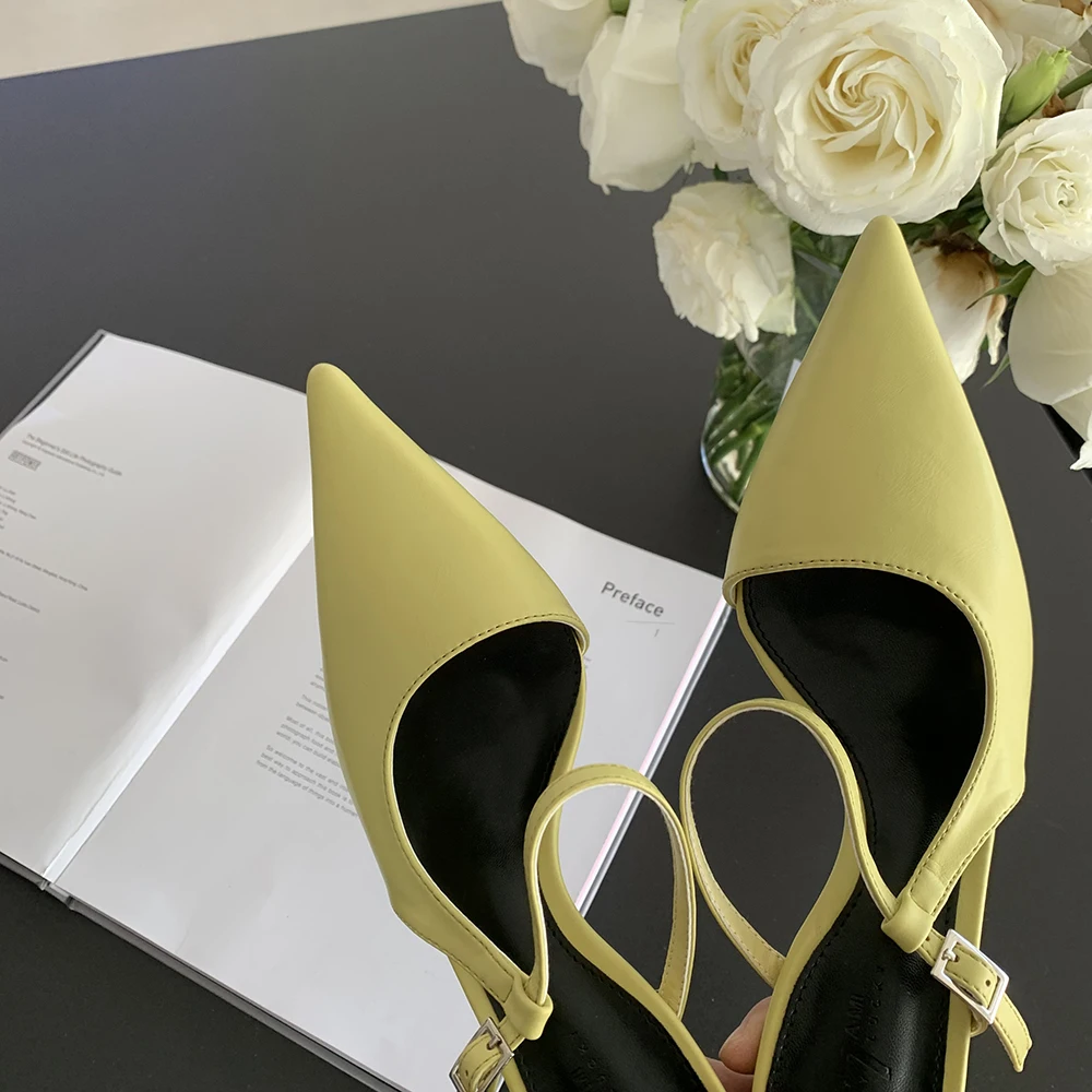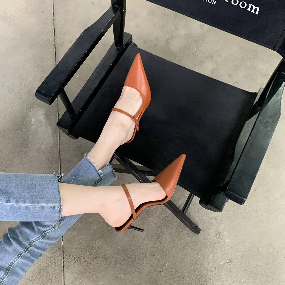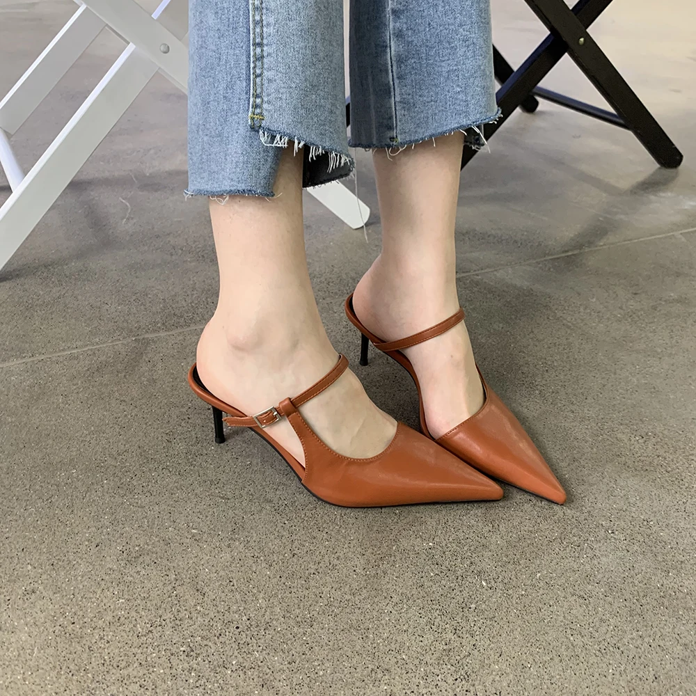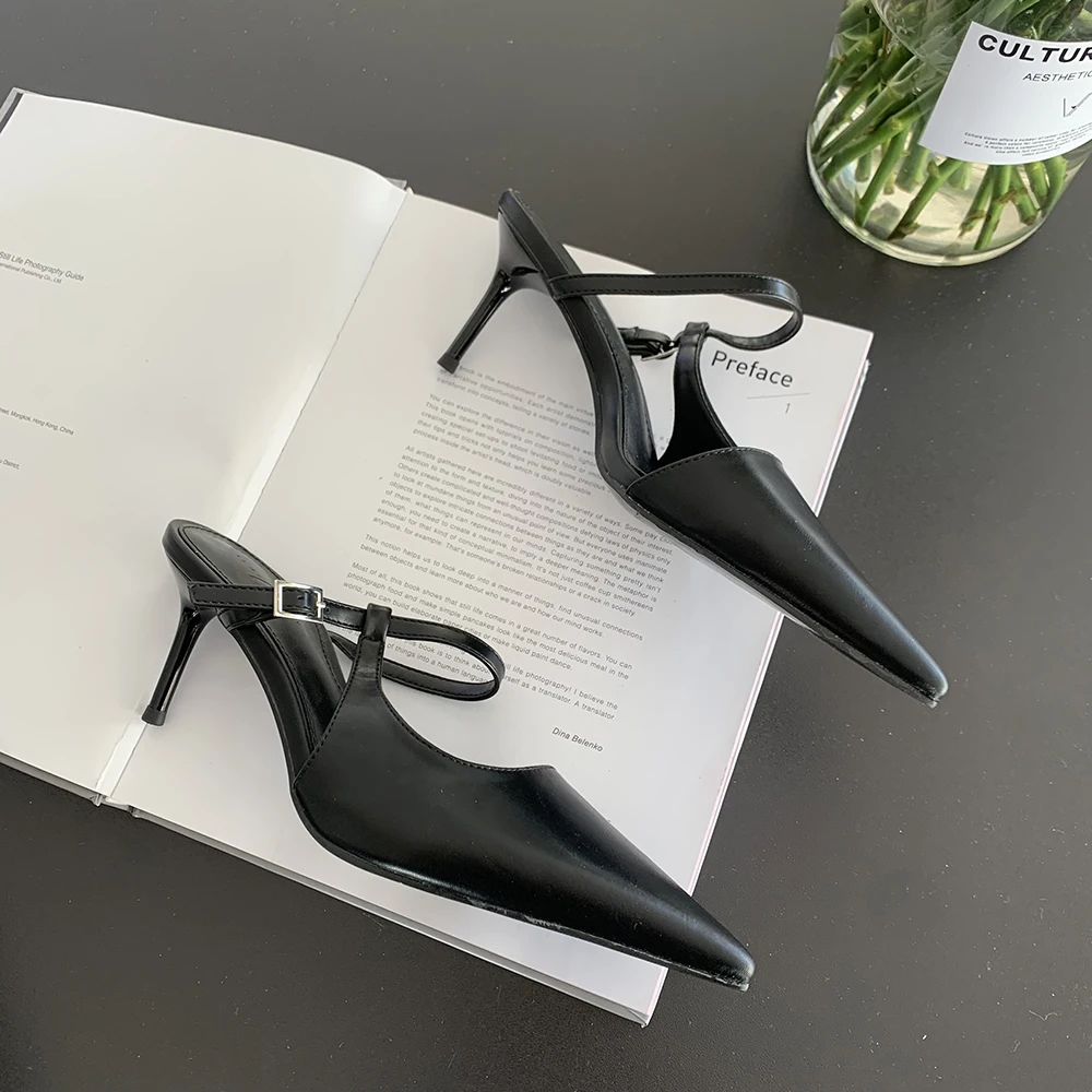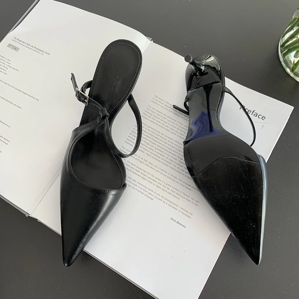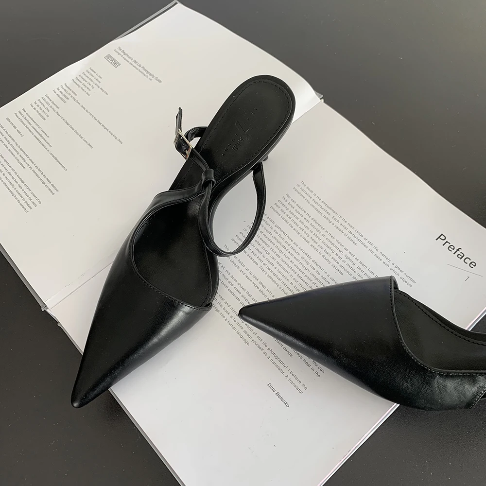LBSFY - Fashion Women Slides Slippers Pointed Toe Black/White/Brown/Yellow Sexy Dress Shoes Thin High Heels Slip On Party Pumps Size 39