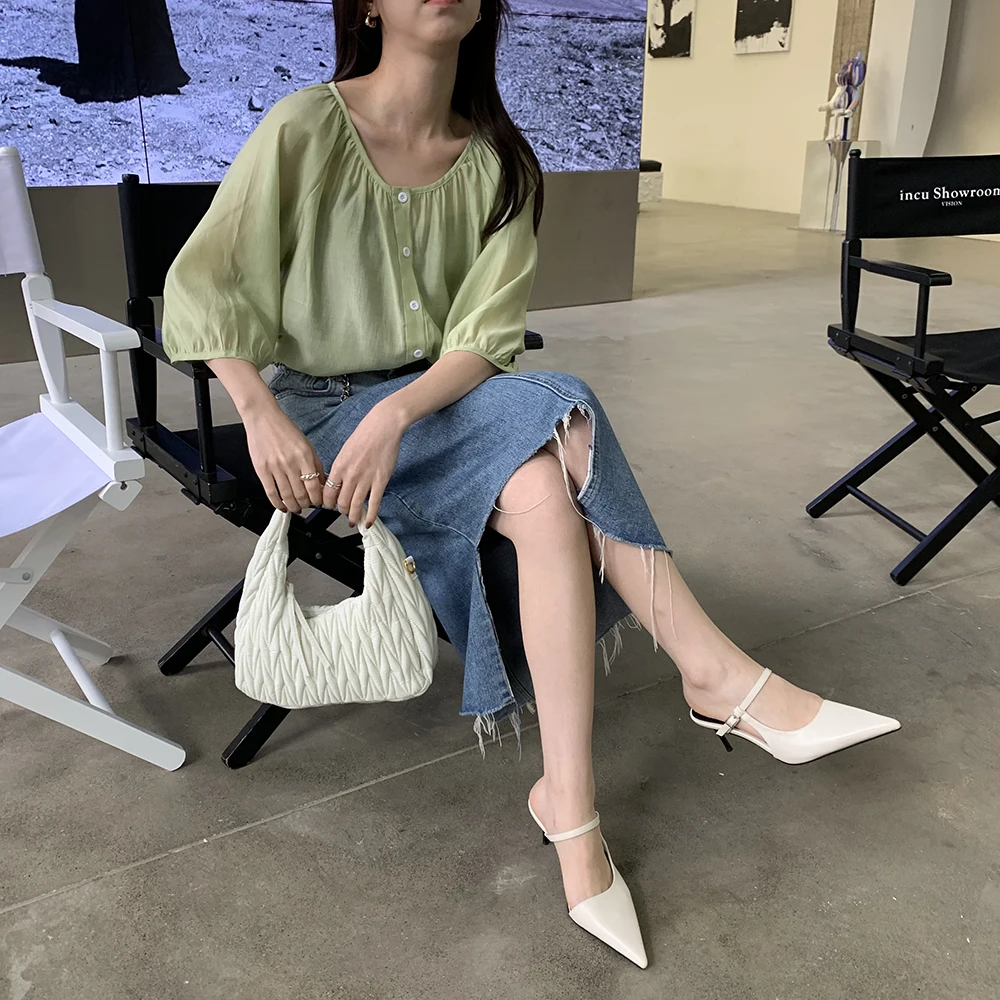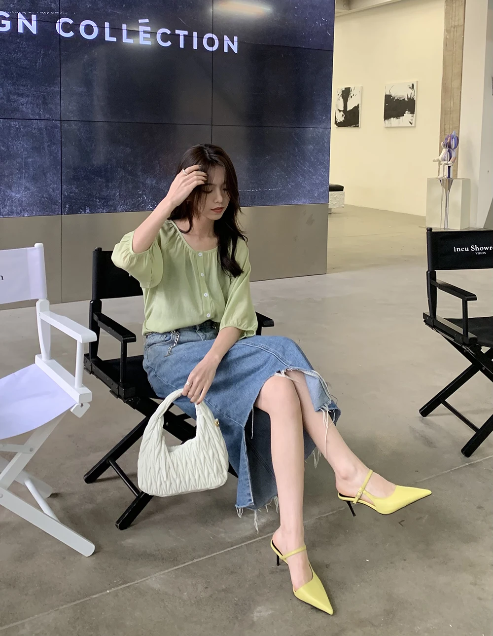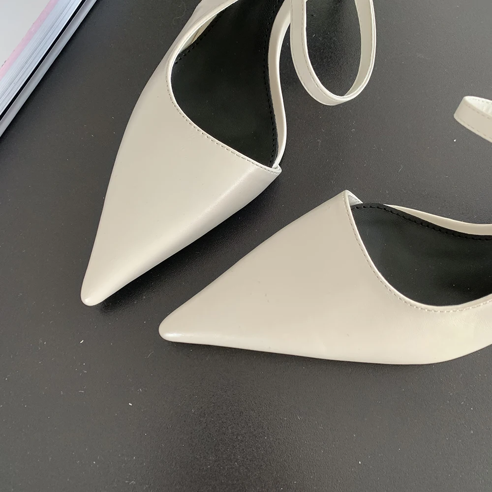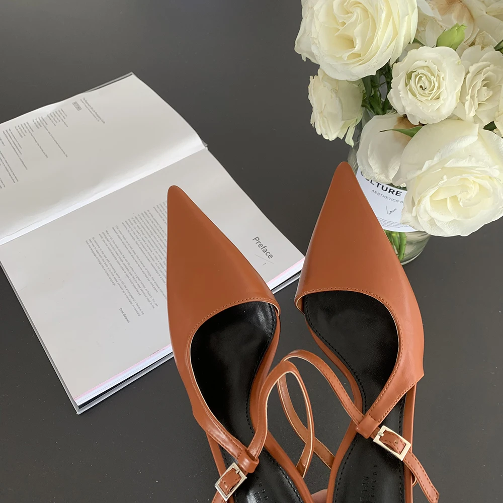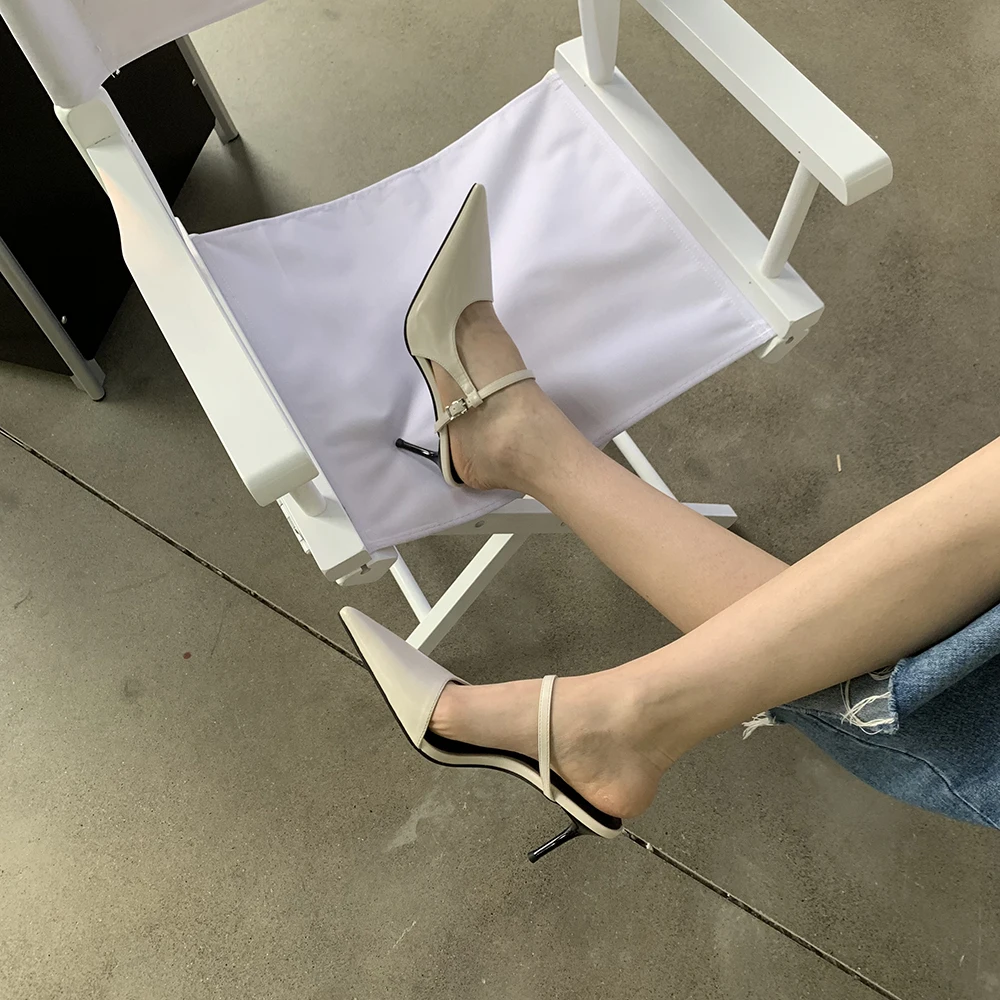 LBSFY - Fashion Women Slides Slippers Pointed Toe Black/White/Brown/Yellow Sexy Dress Shoes Thin High Heels Slip On Party Pumps Size 39
