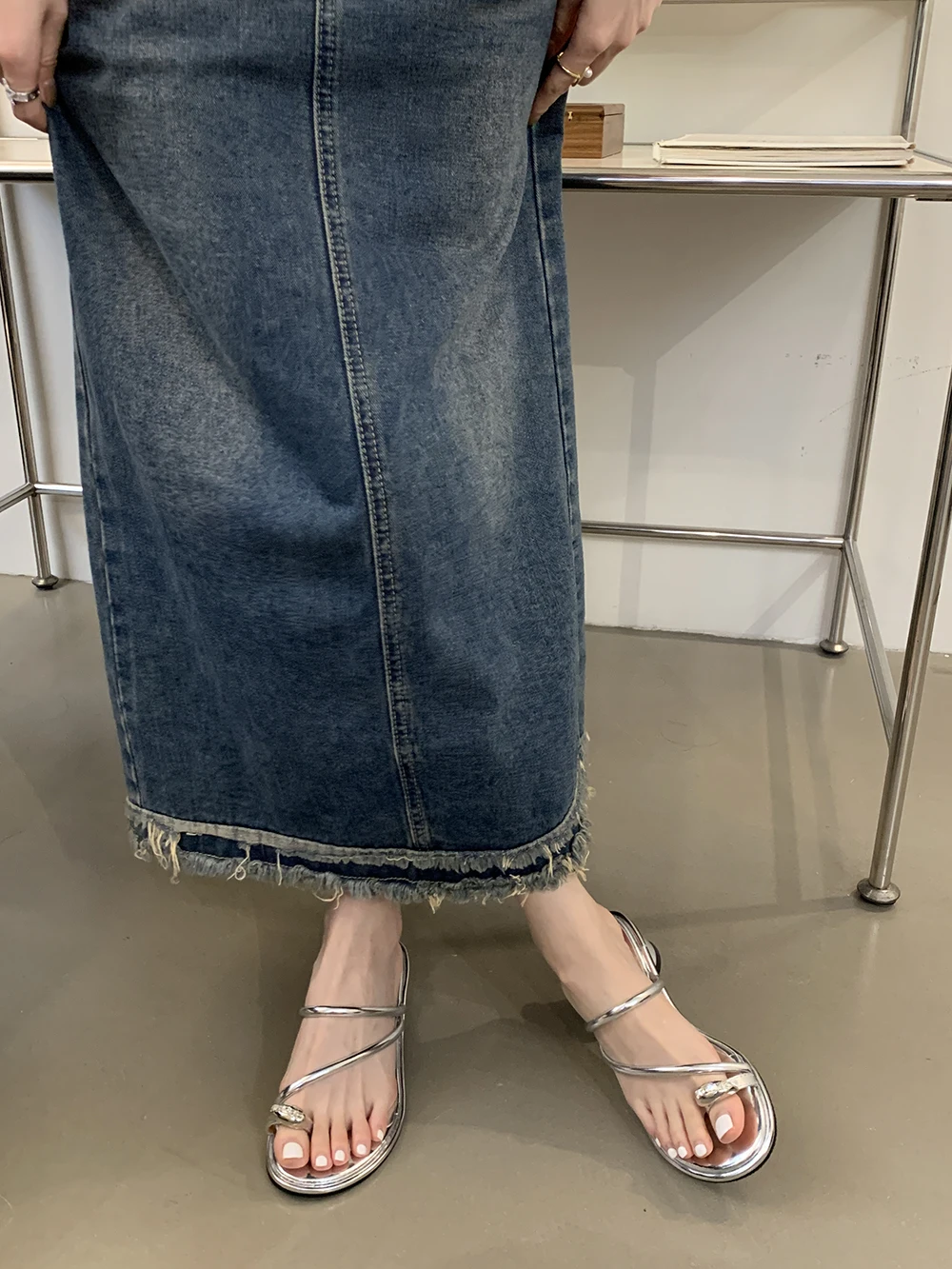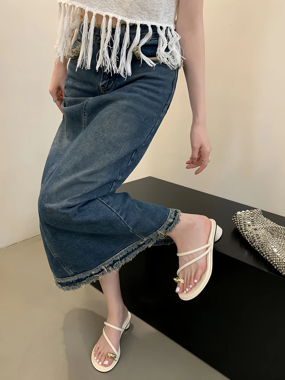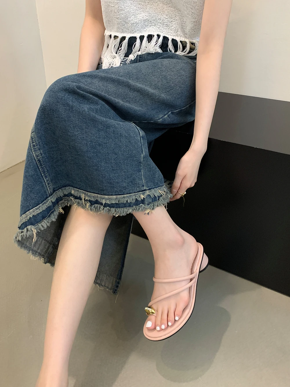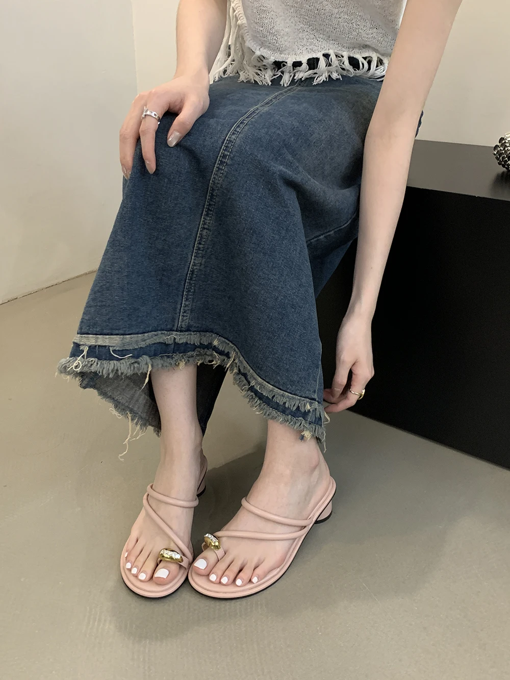 LBSFY - Fashion Women Slides Slippers Silver Pink White Narrow Band Summer Thick Mid Heels Slip On Party Pumps Dress Shoes Woman Size 39