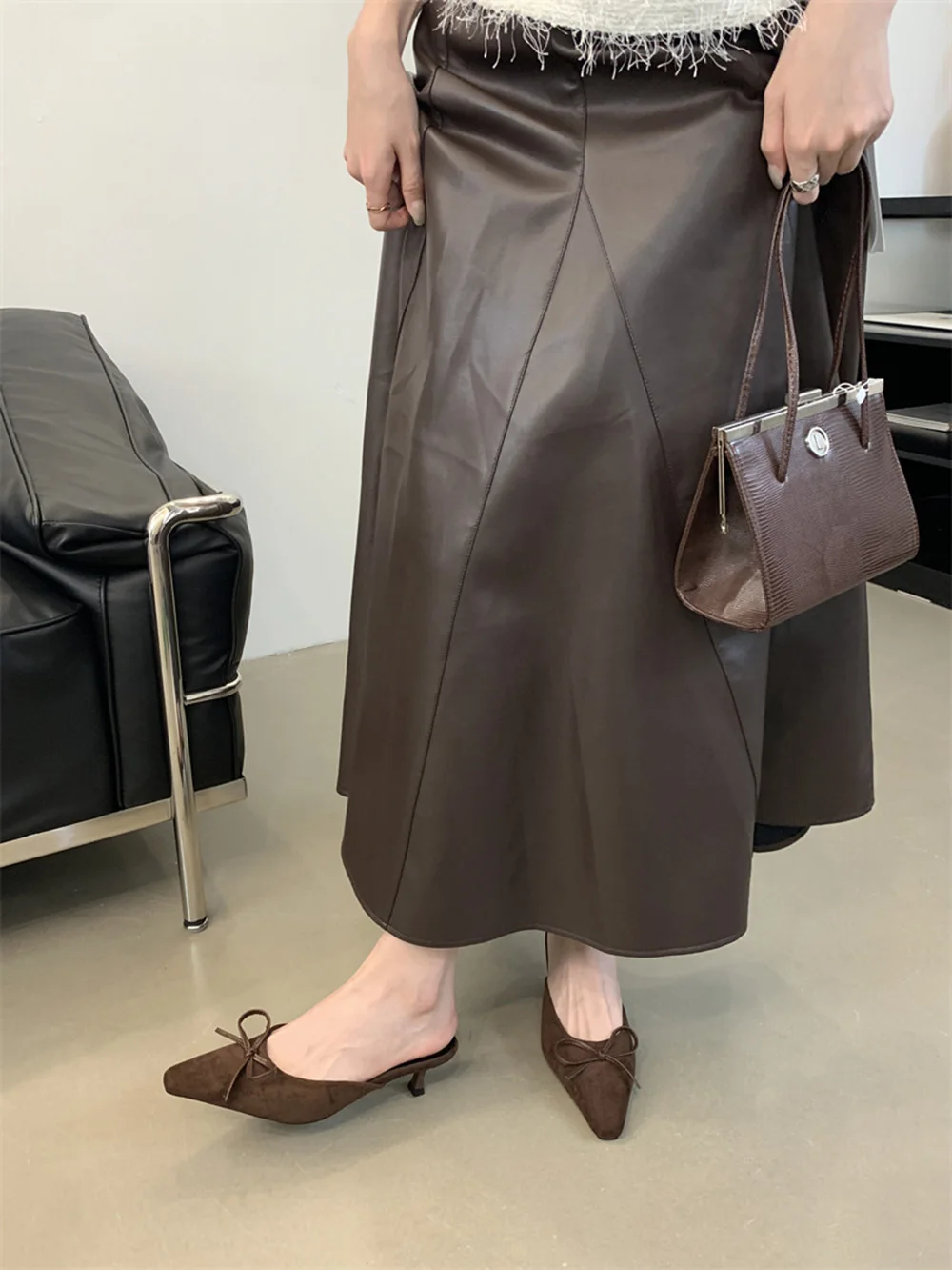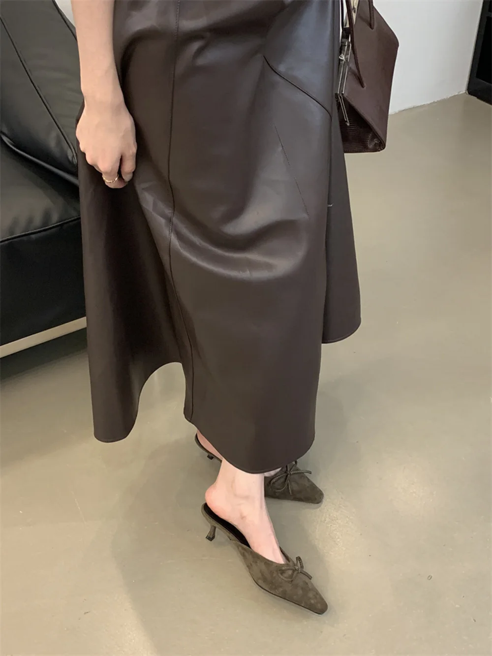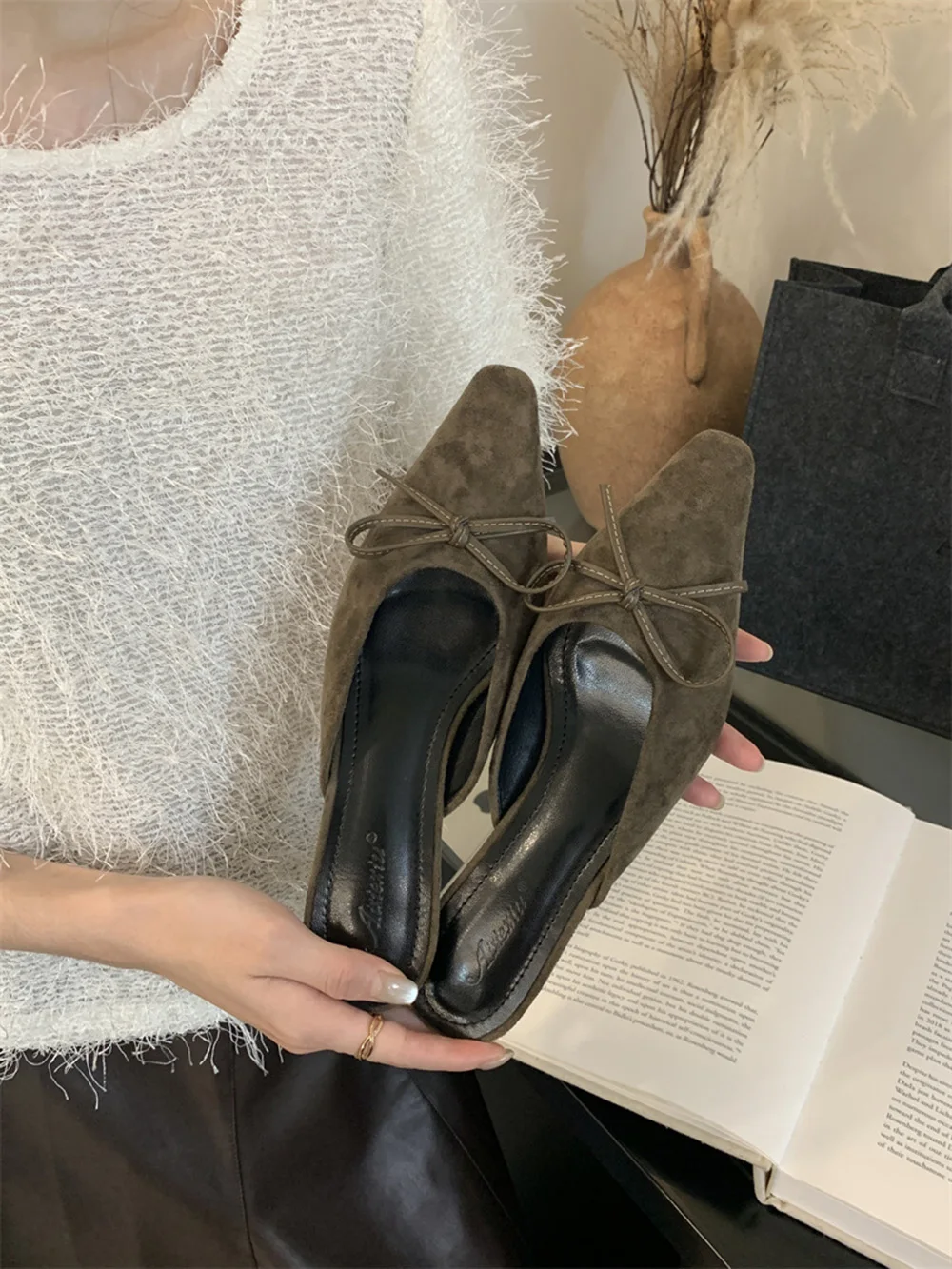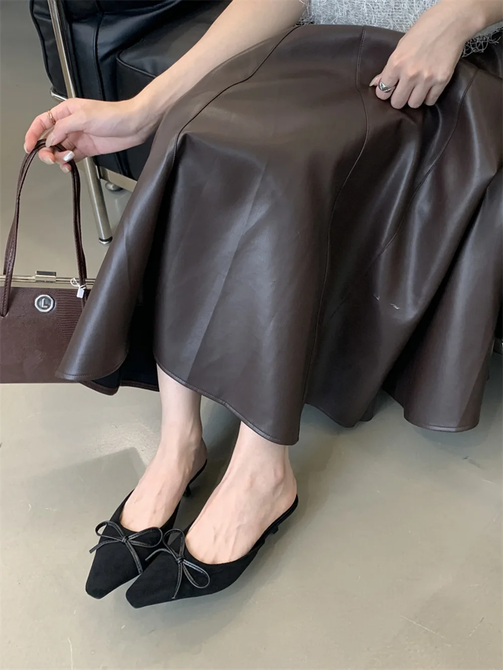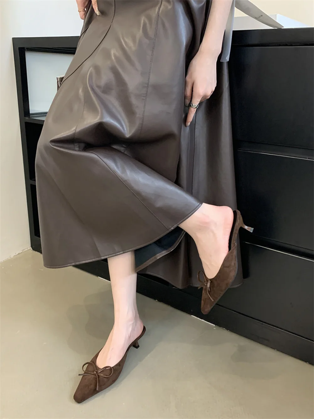 LBSFY - Fashion Women Slippers Pointed Toe Black Brown Khaki Thin Mid Heels Bow Design Shallow Slip On Party Outside Mules Shoes 35-39