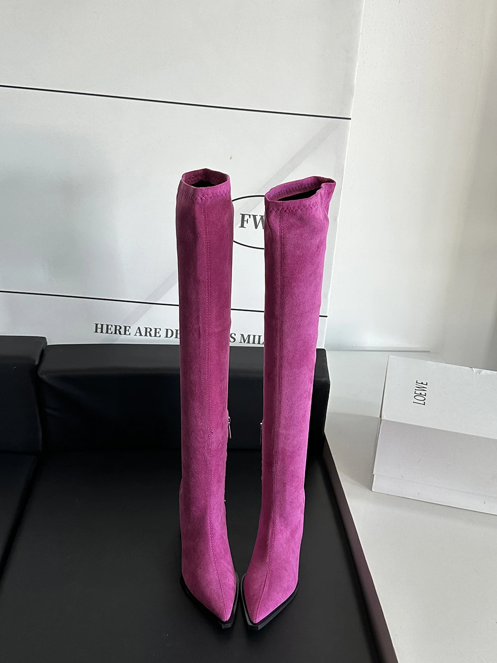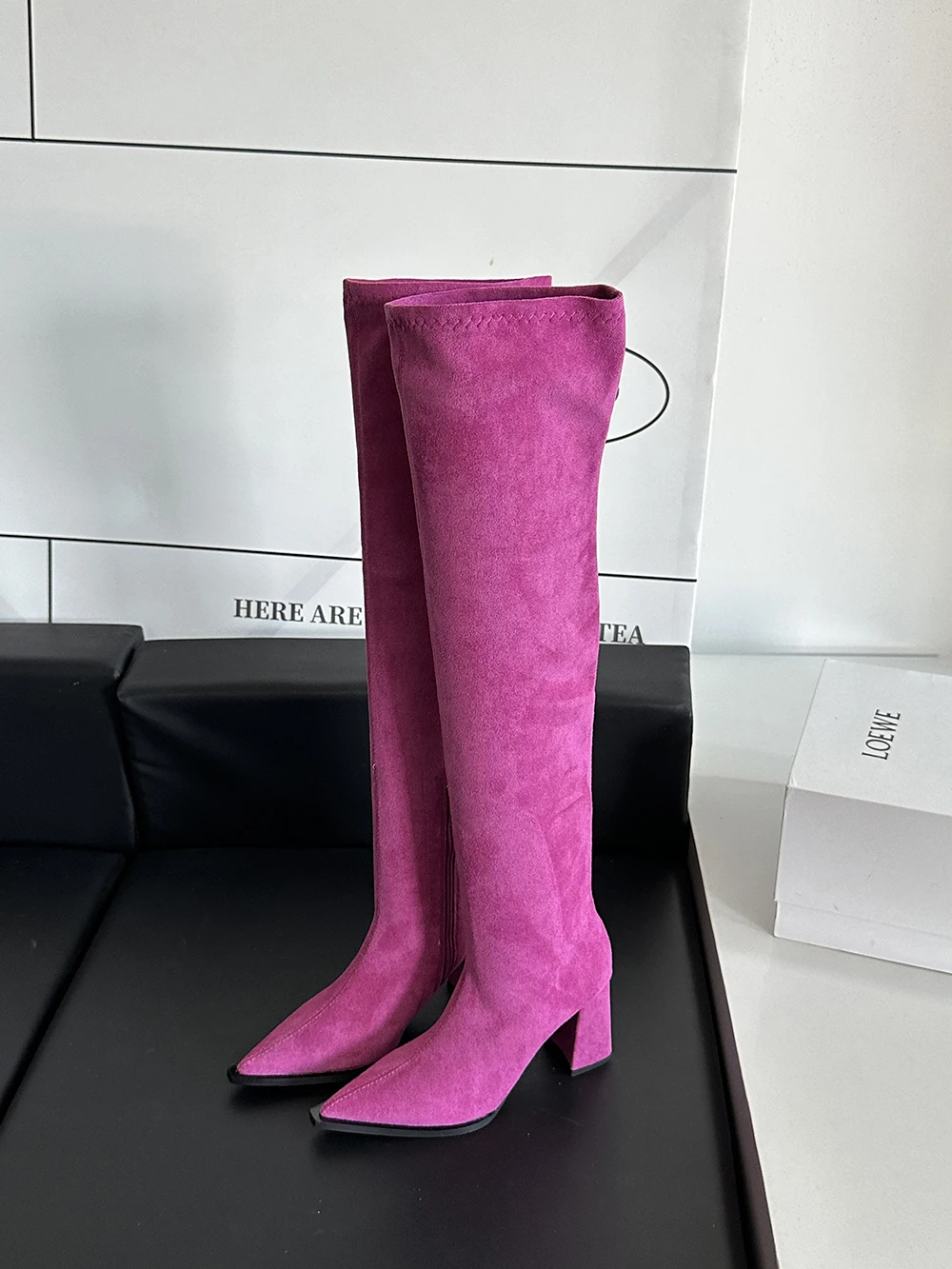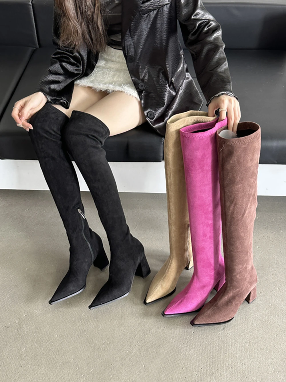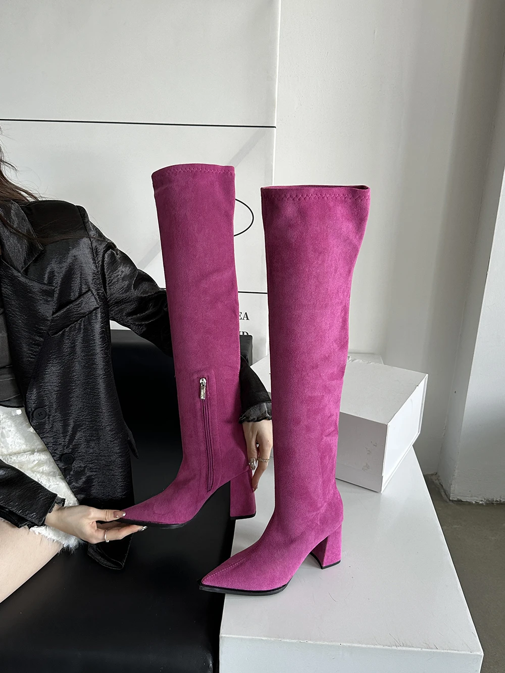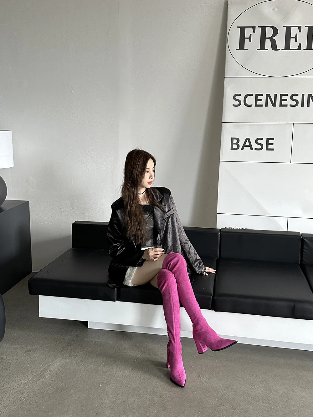 LBSFY - Fashion Women Sock Stretch Boots Over The Knee Booties High Heels Sexy Autumn Spring Slip On Dress Shoes Woman Size 35-40 Rose