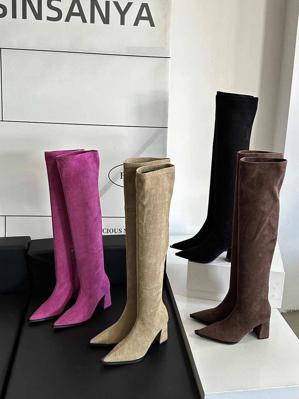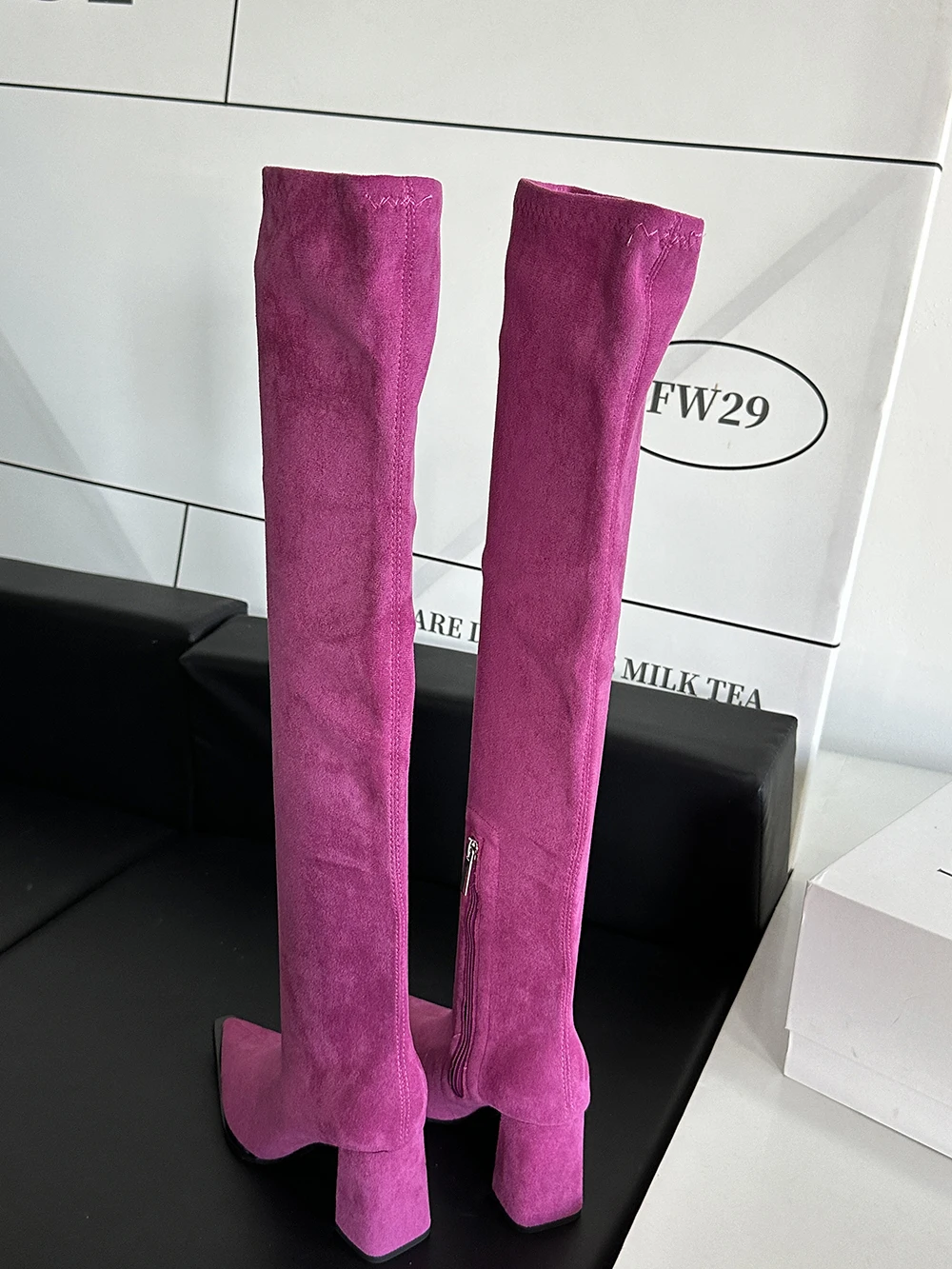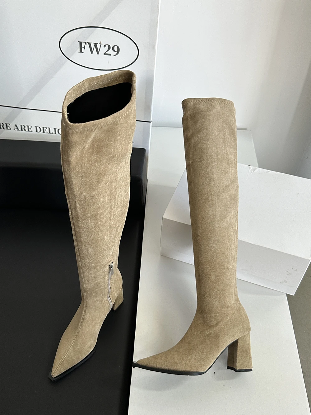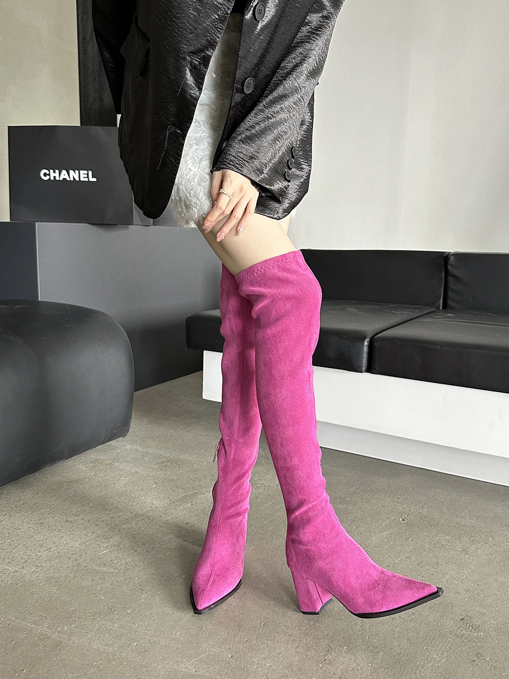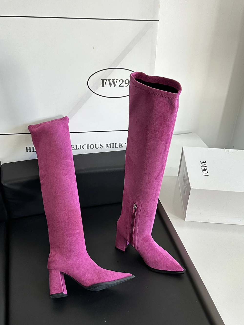 LBSFY - Fashion Women Sock Stretch Boots Over The Knee Booties High Heels Sexy Autumn Spring Slip On Dress Shoes Woman Size 35-40 Rose