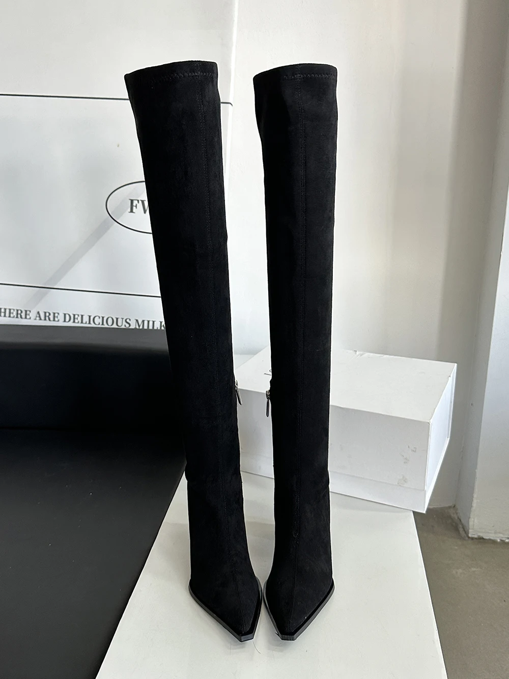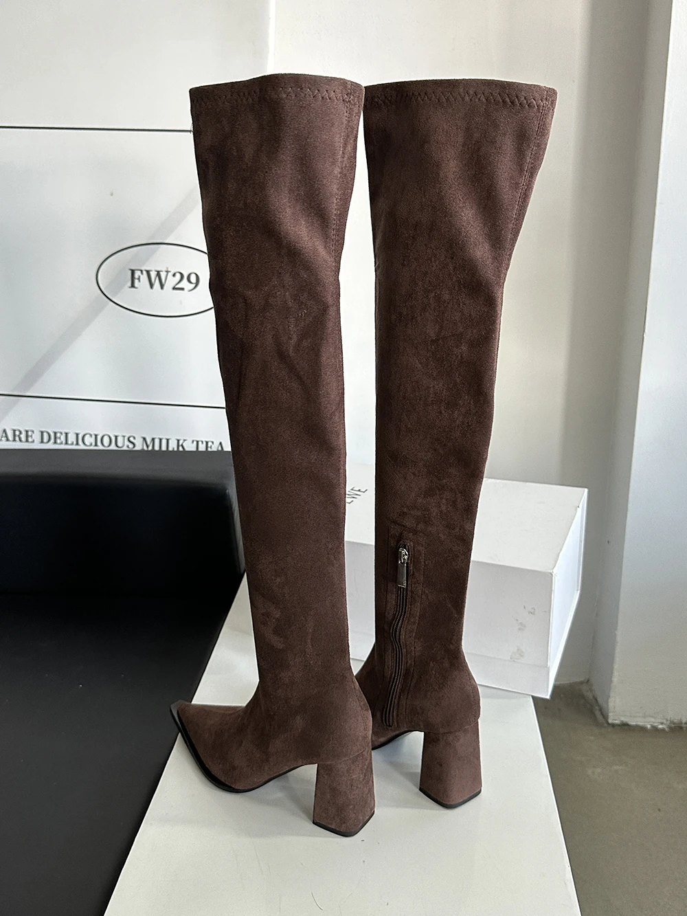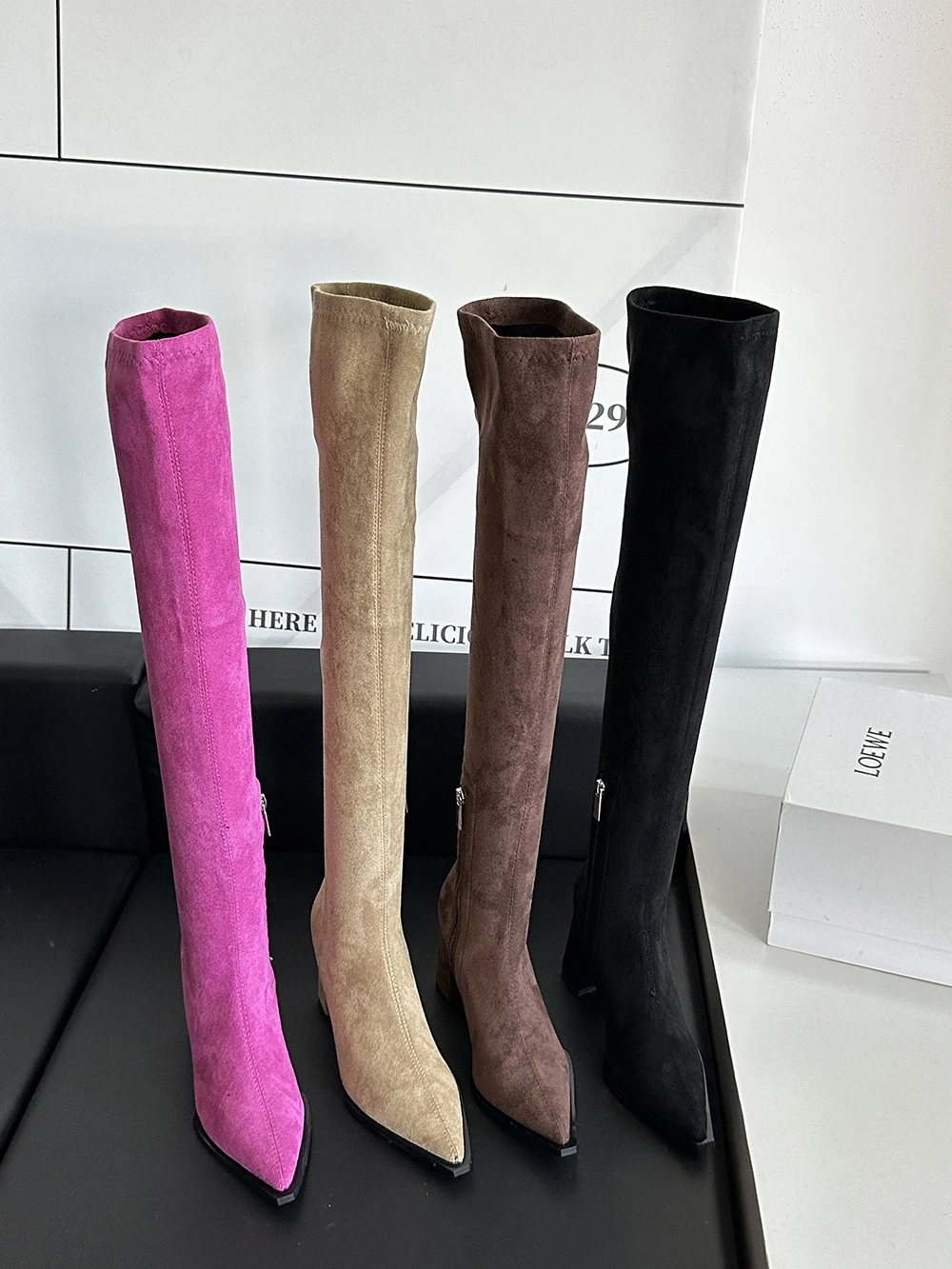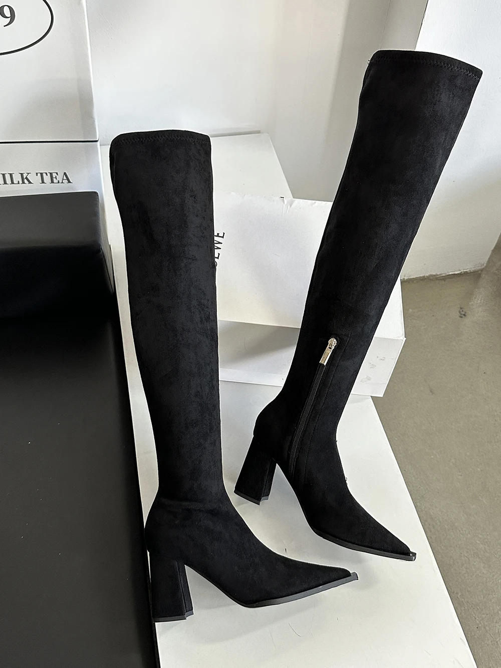 LBSFY - Fashion Women Sock Stretch Boots Over The Knee Booties High Heels Sexy Autumn Spring Slip On Dress Shoes Woman Size 35-40 Rose