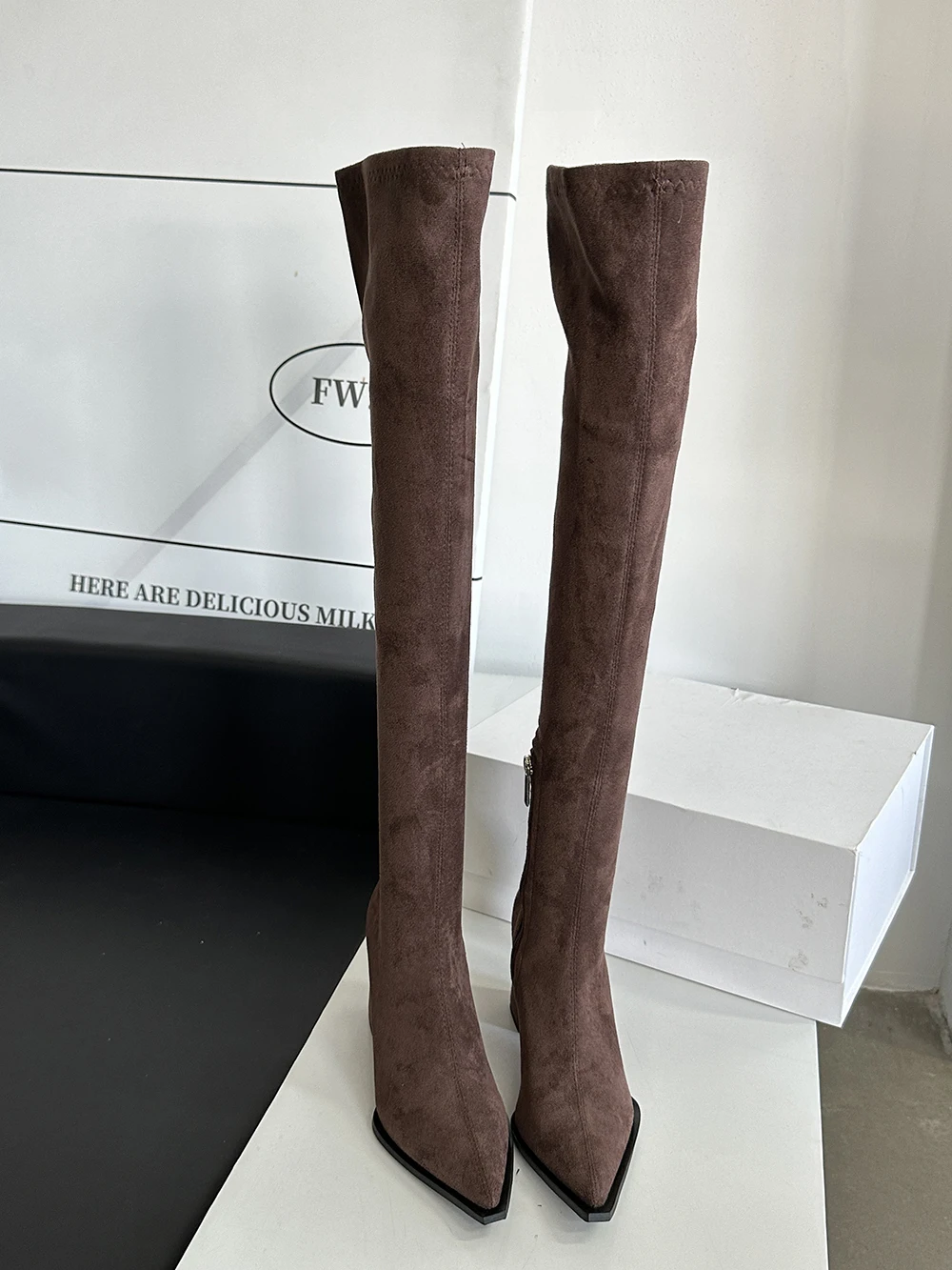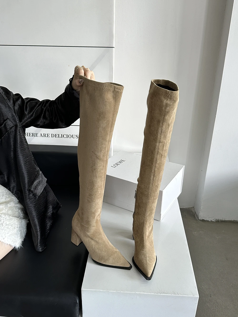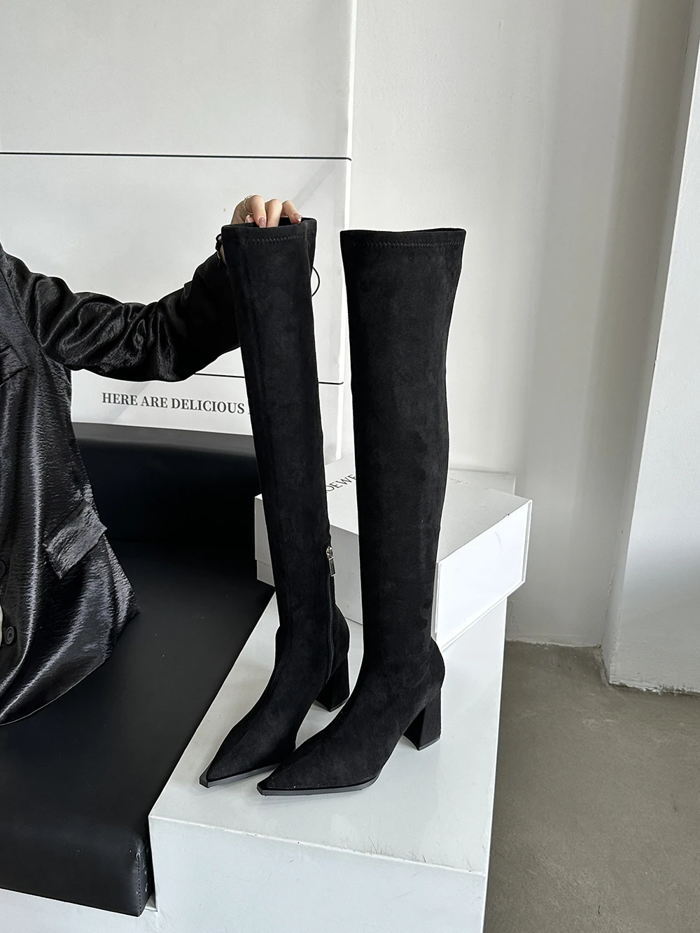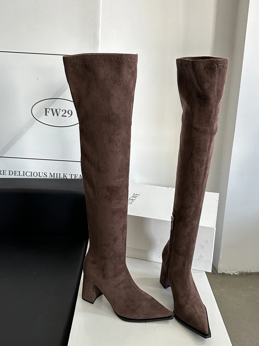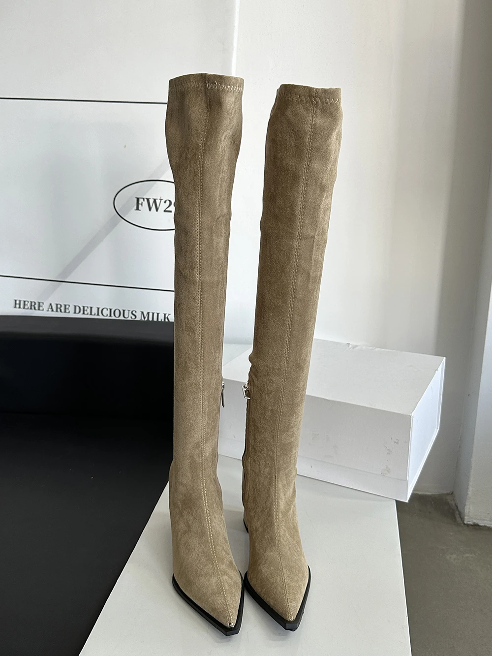 LBSFY - Fashion Women Sock Stretch Boots Over The Knee Booties High Heels Sexy Autumn Spring Slip On Dress Shoes Woman Size 35-40 Rose