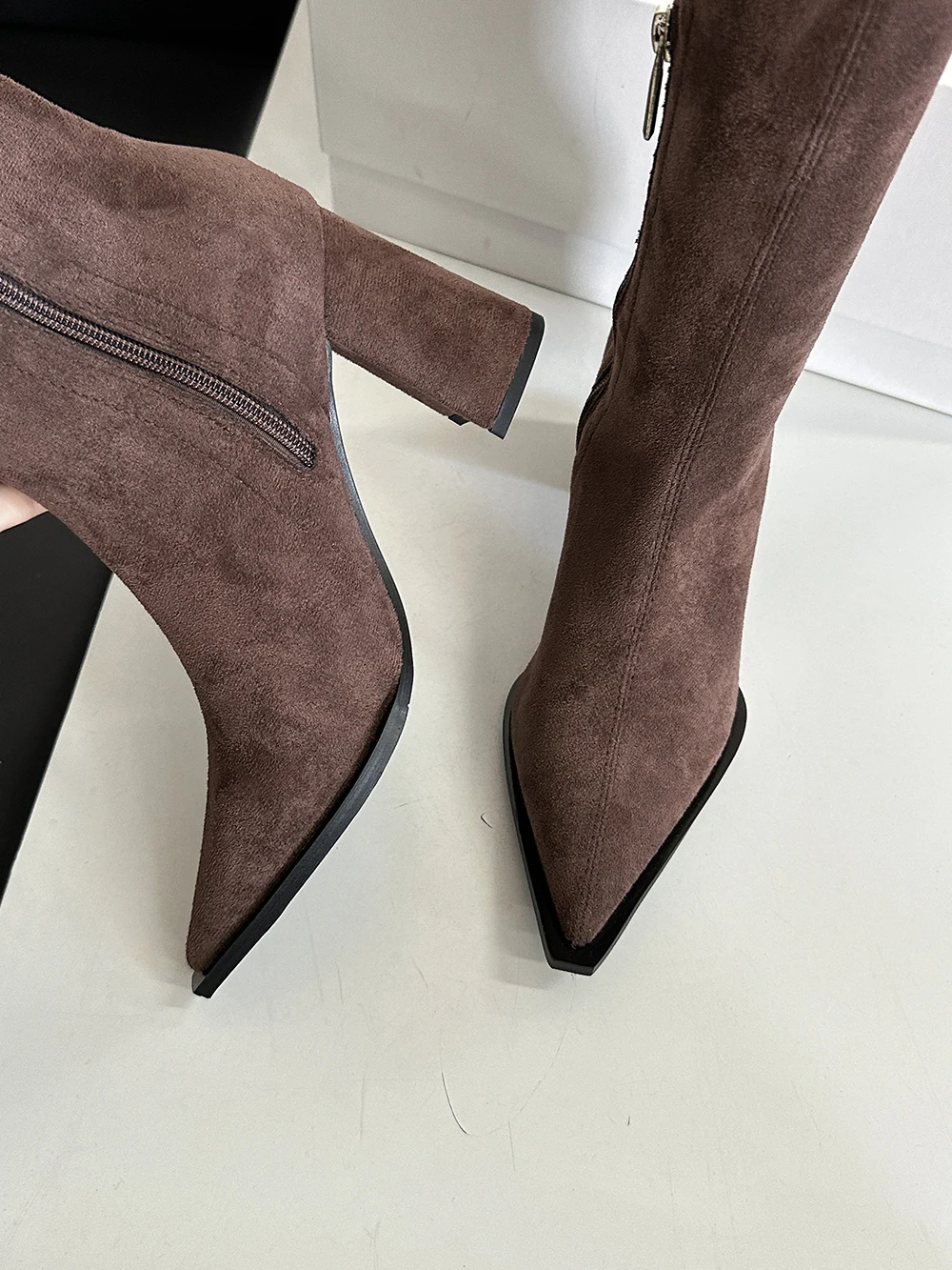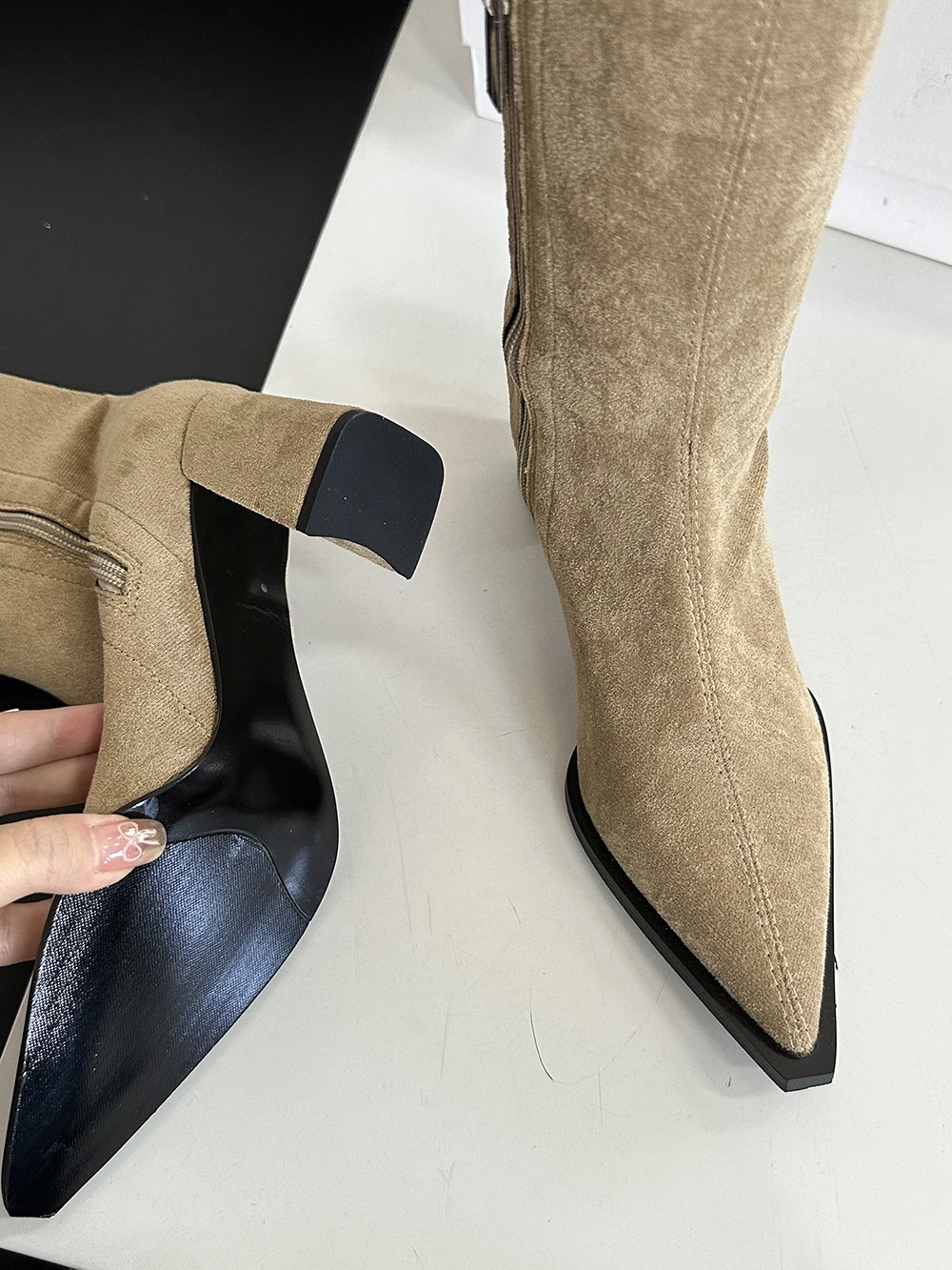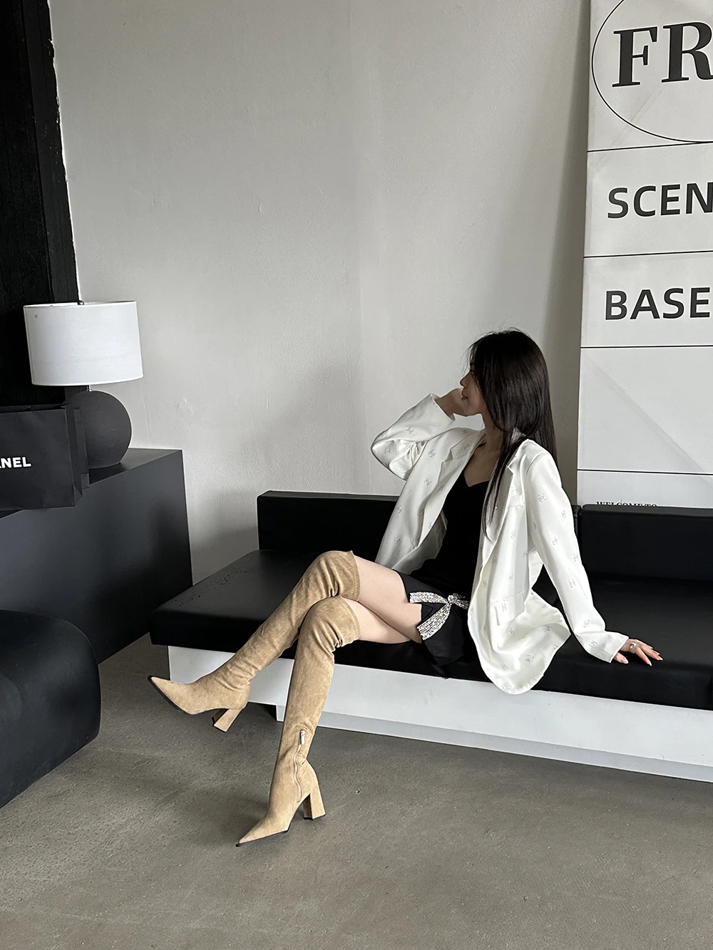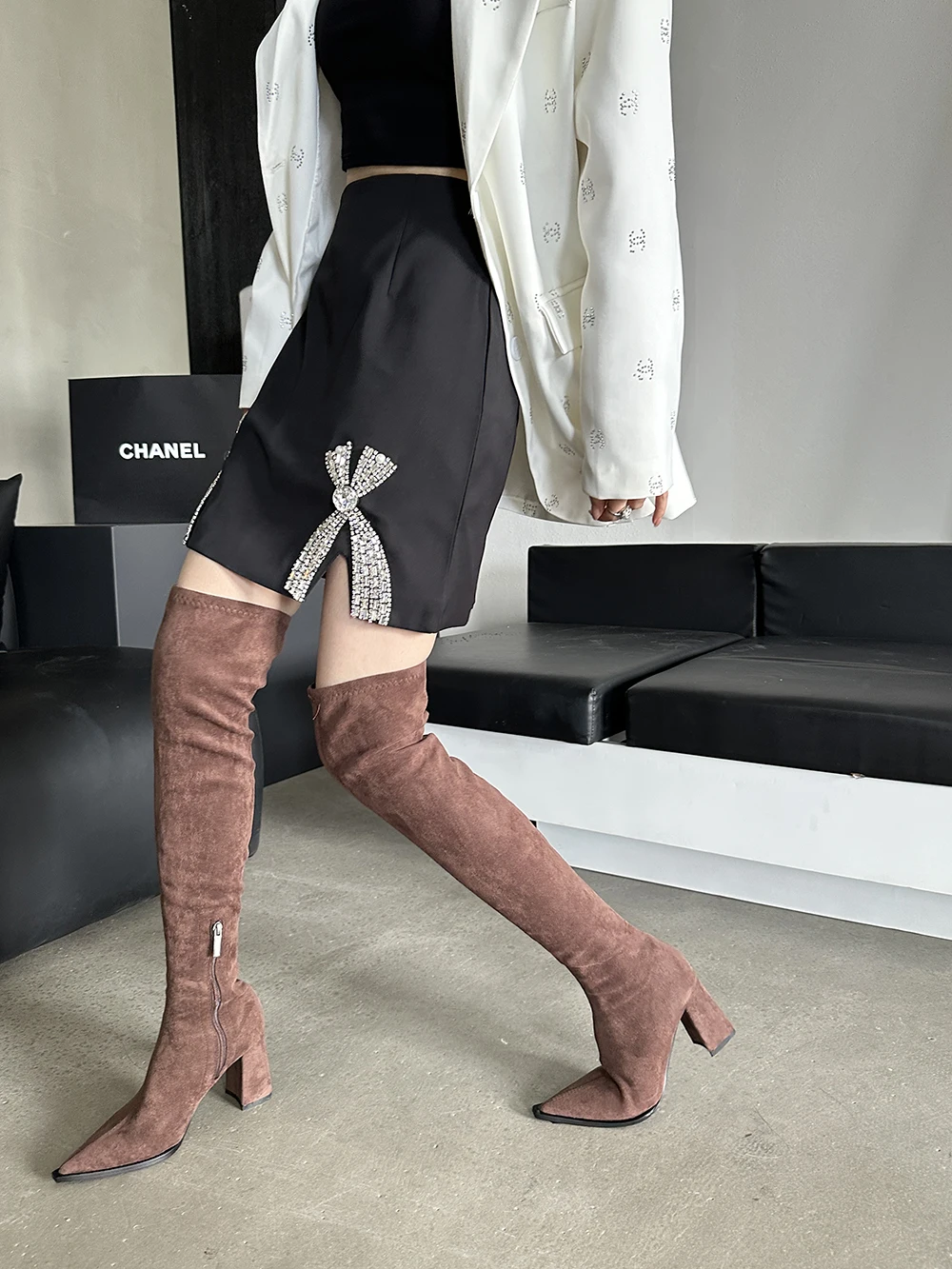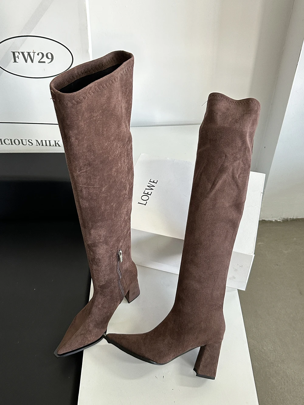 LBSFY - Fashion Women Sock Stretch Boots Over The Knee Booties High Heels Sexy Autumn Spring Slip On Dress Shoes Woman Size 35-40 Rose