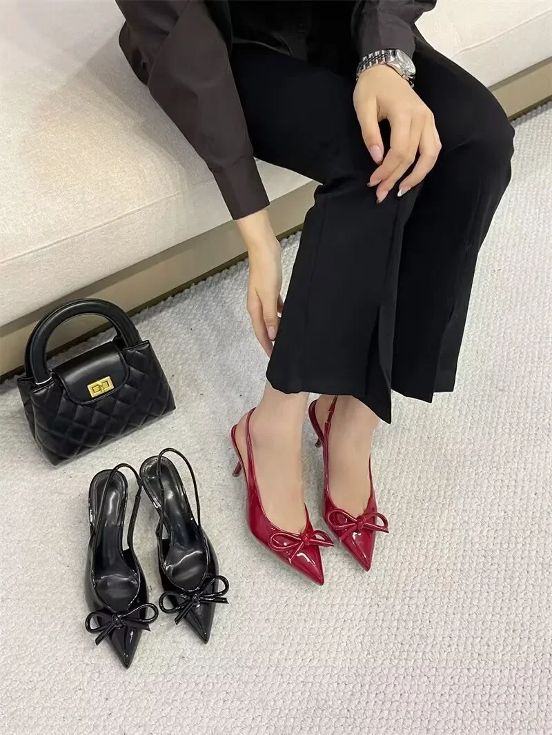 LBSFY -Fashion Women's High Heels Sandals Red Sexy Butterfly Decoration Ankle Strap Women's Pointed Wedding Party Ball Women's Shoes
