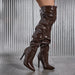 LBSFY -Fashion Women's Pointed-toe Leather Fashion High-heeled Boot Knee-length Boots Over Knee Boots Brown Fashion Personality Boots