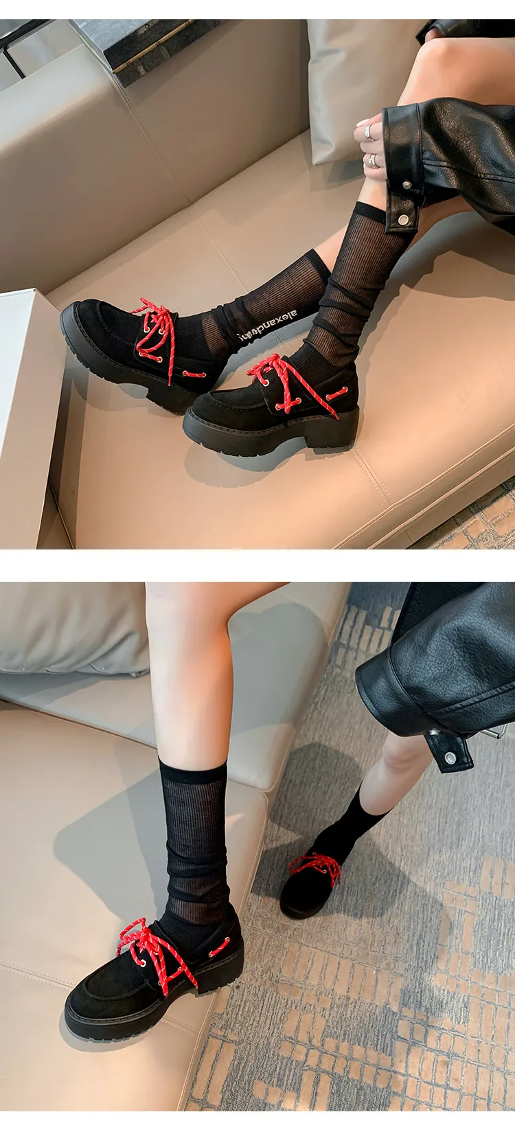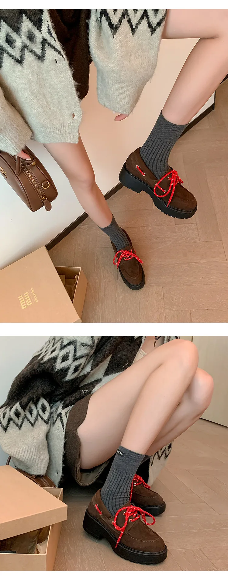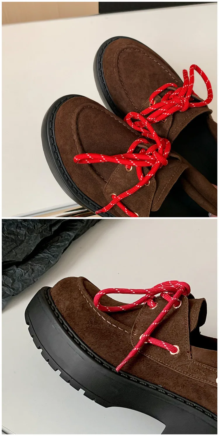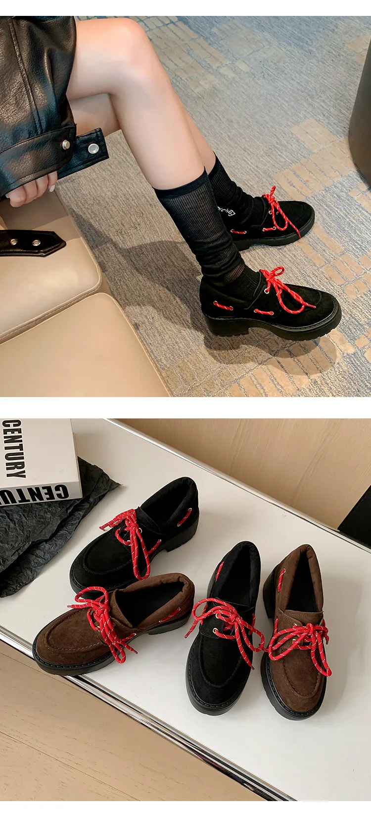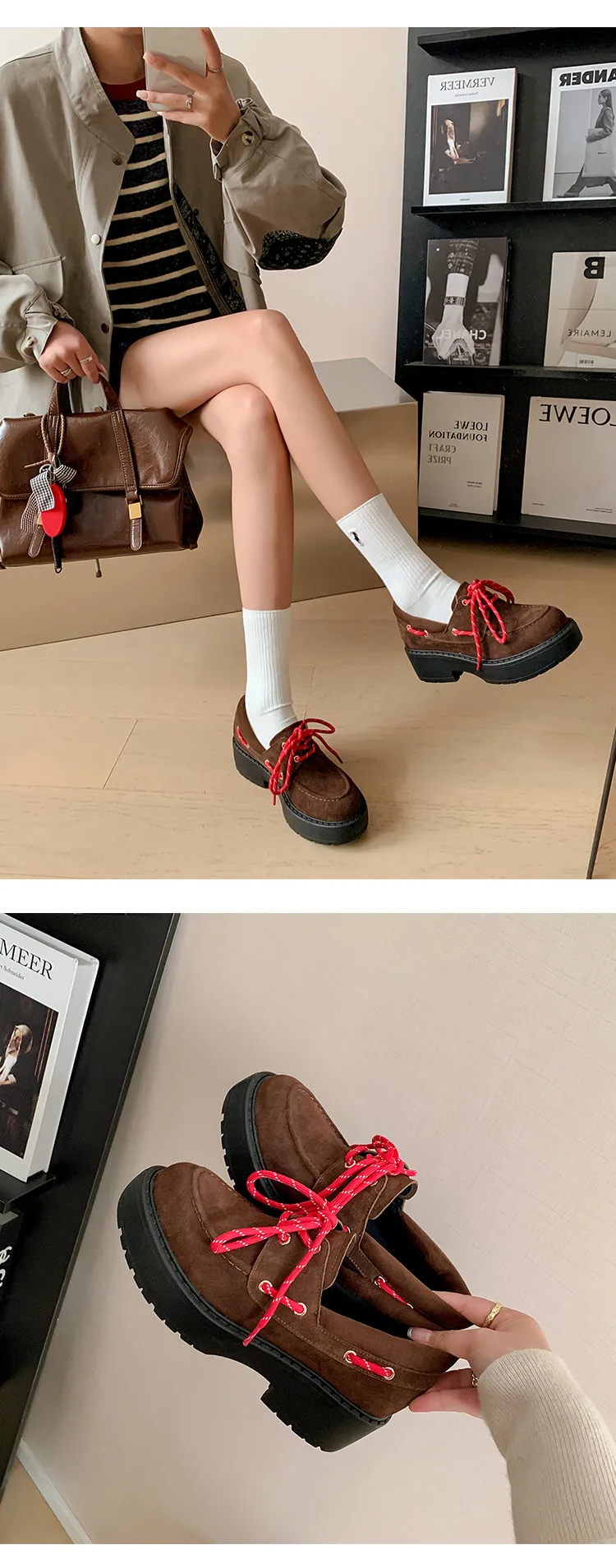 LBSFY - Fashion Women's Shoes New High-Quality Suede Shoes Round Toe Lace Up Thick Soled Shoes Daily Modern Casual Shoes Women