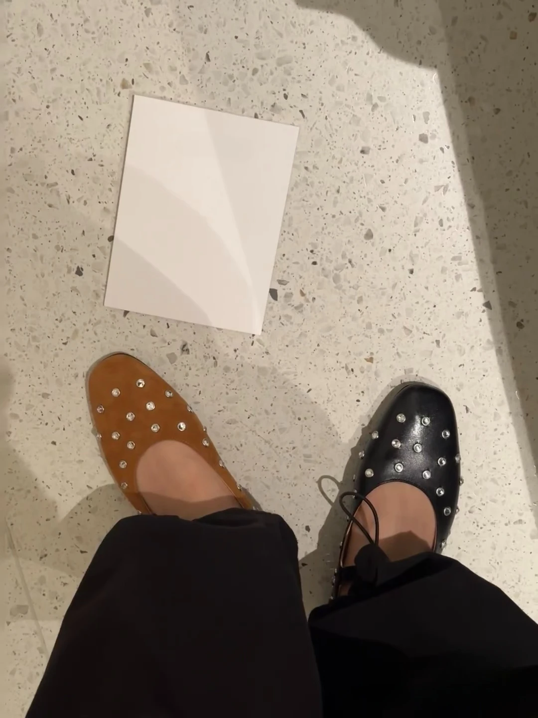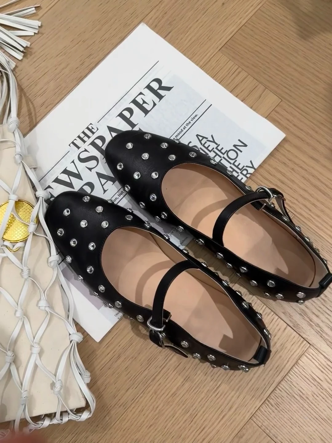 LBSFY - Fashionable Diamond Studded Women's Mary Jane Ballet Shoes 2025 Spring Shoes Casual Soft Leather Comfortable Flat Ballet Shoes