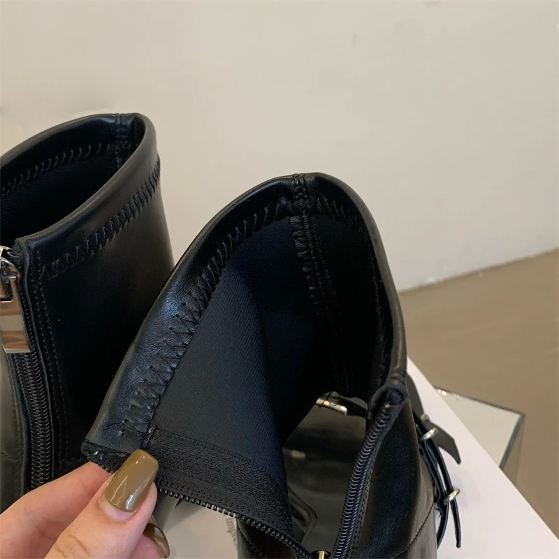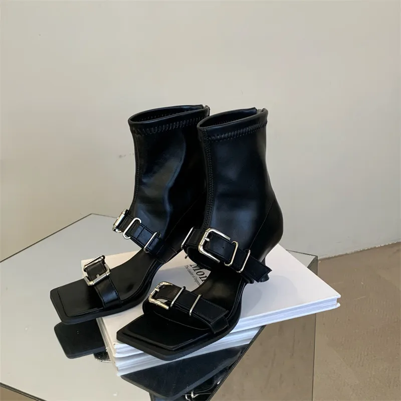 LBSFY - Female Ankle Boots Square Toe Ladies Footwear High Heels Fashion Pumps Casual Chelsea Shoes Women Modern Booties Mujer
