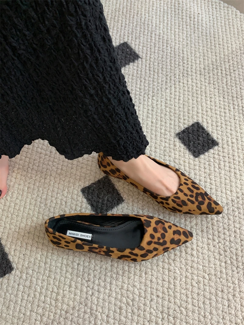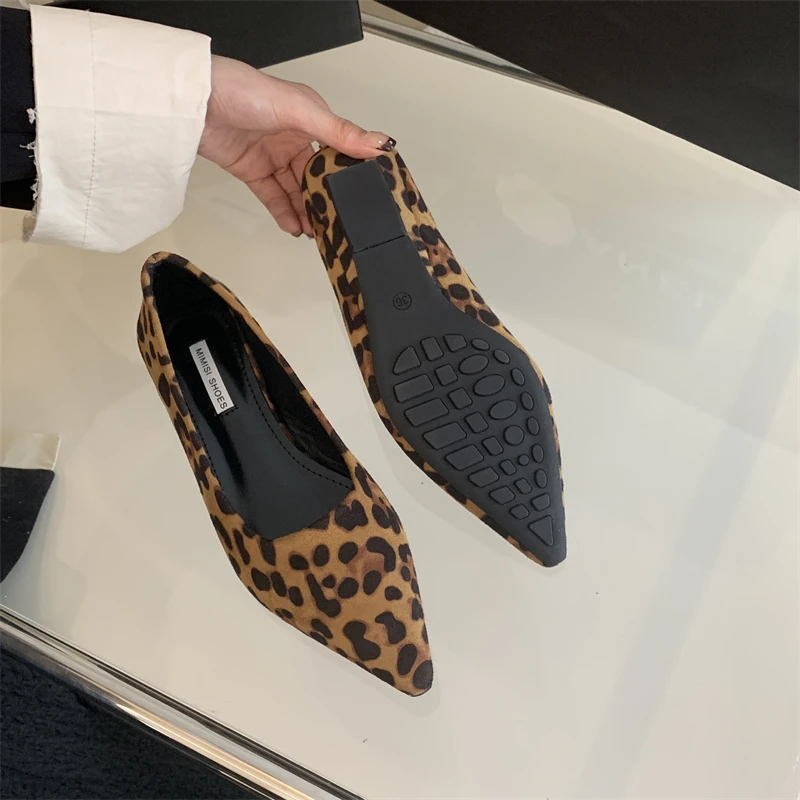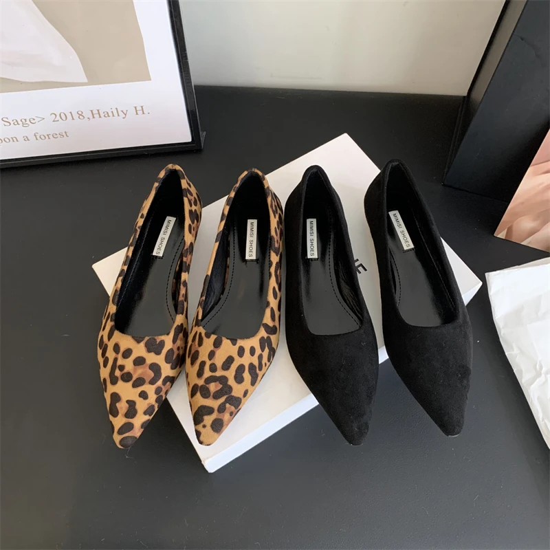 LBSFY -Female Shallow Flats Shoes Women Slip On Casual Loafer Flat Pointed Toe Ballerina Brand Leopard Pattern Autumn Mujer